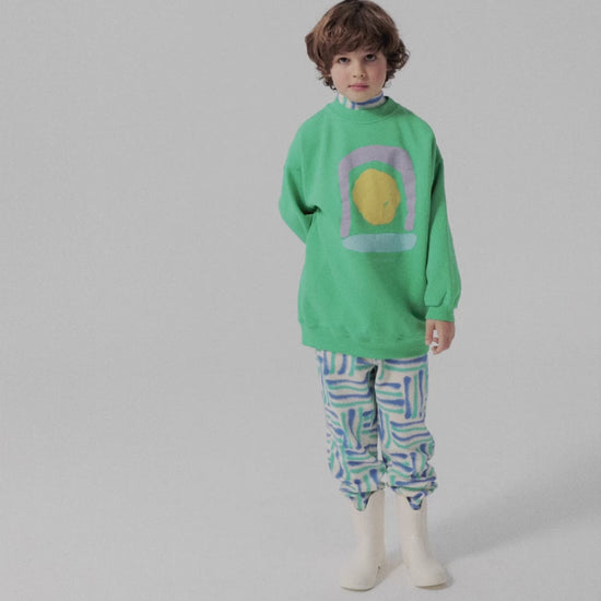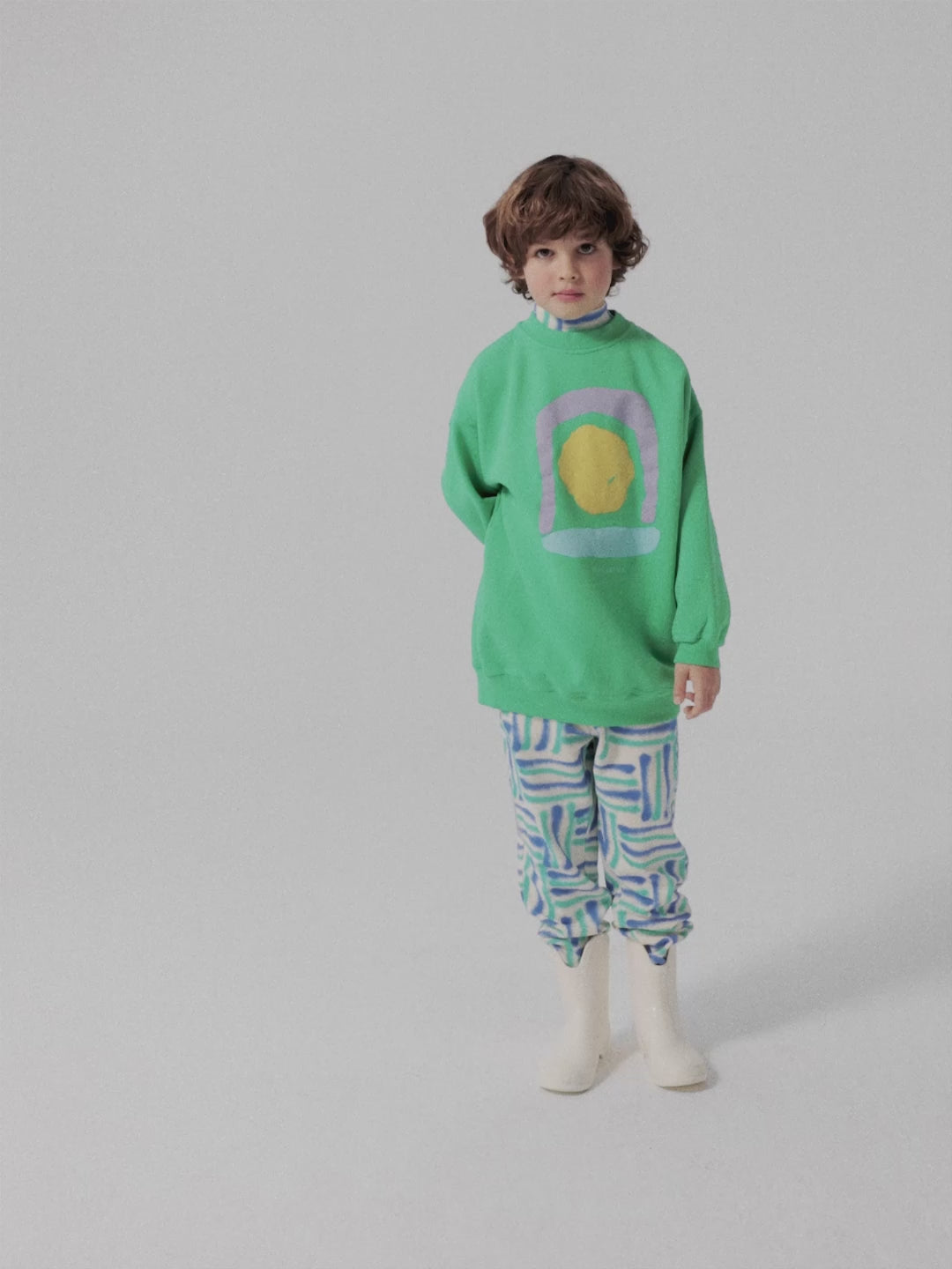 Aerosol Sweatshirt is made of 98% organic cotton and 2% elastane fleece. This oversized sweatshirt features an artistic print on the front and it is designed with round neck, dropped shoulders and rib at cuffs, bottom and neckline. Made in Spain.