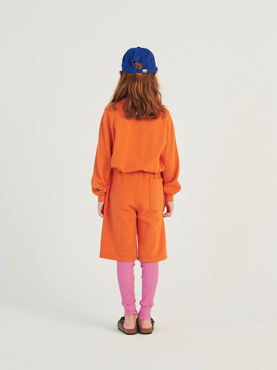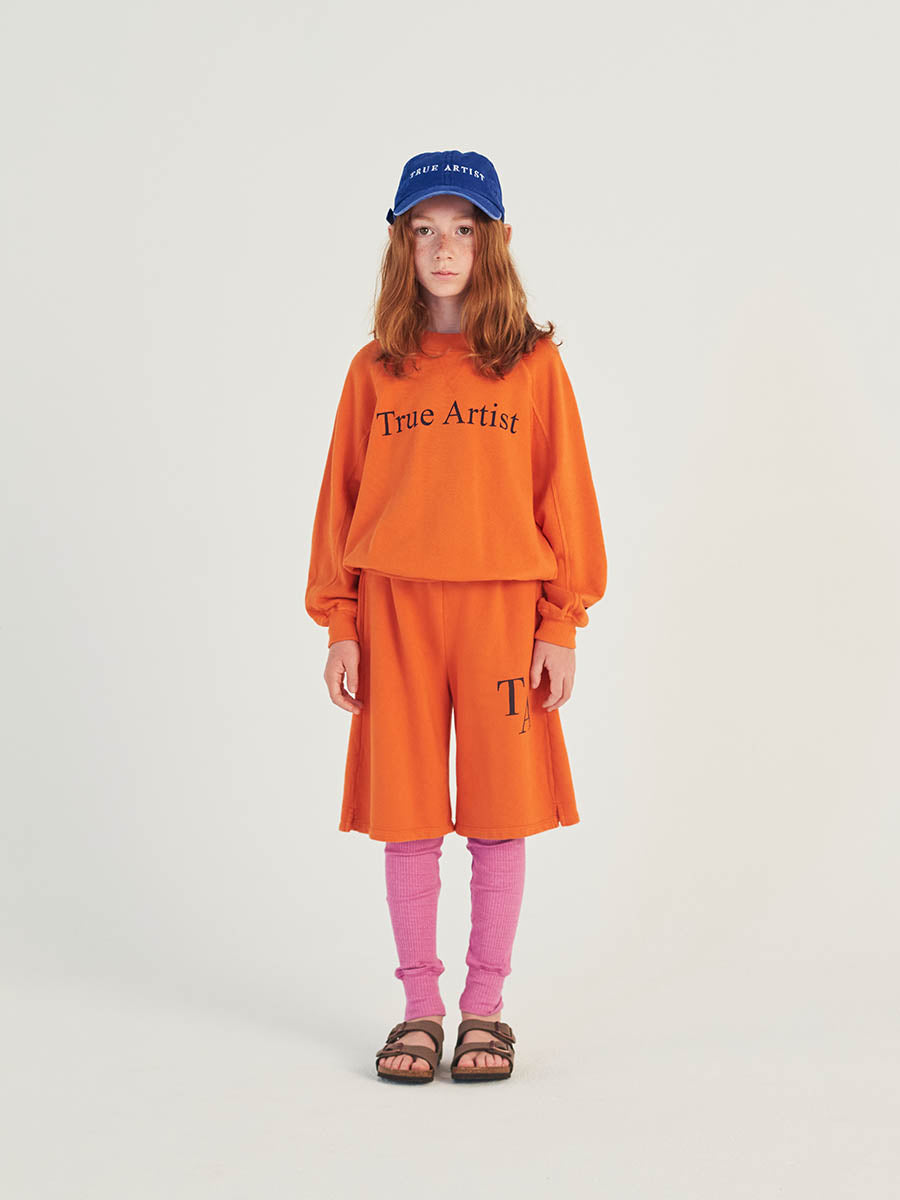 Shorts nº01 in Celosia Orange are made of 100% organic cotton fleece and have our TA logo printed on the front. They are designed with adjustable waistband, side pockets and side slits. They have a baggy fit. Made in Spain.
