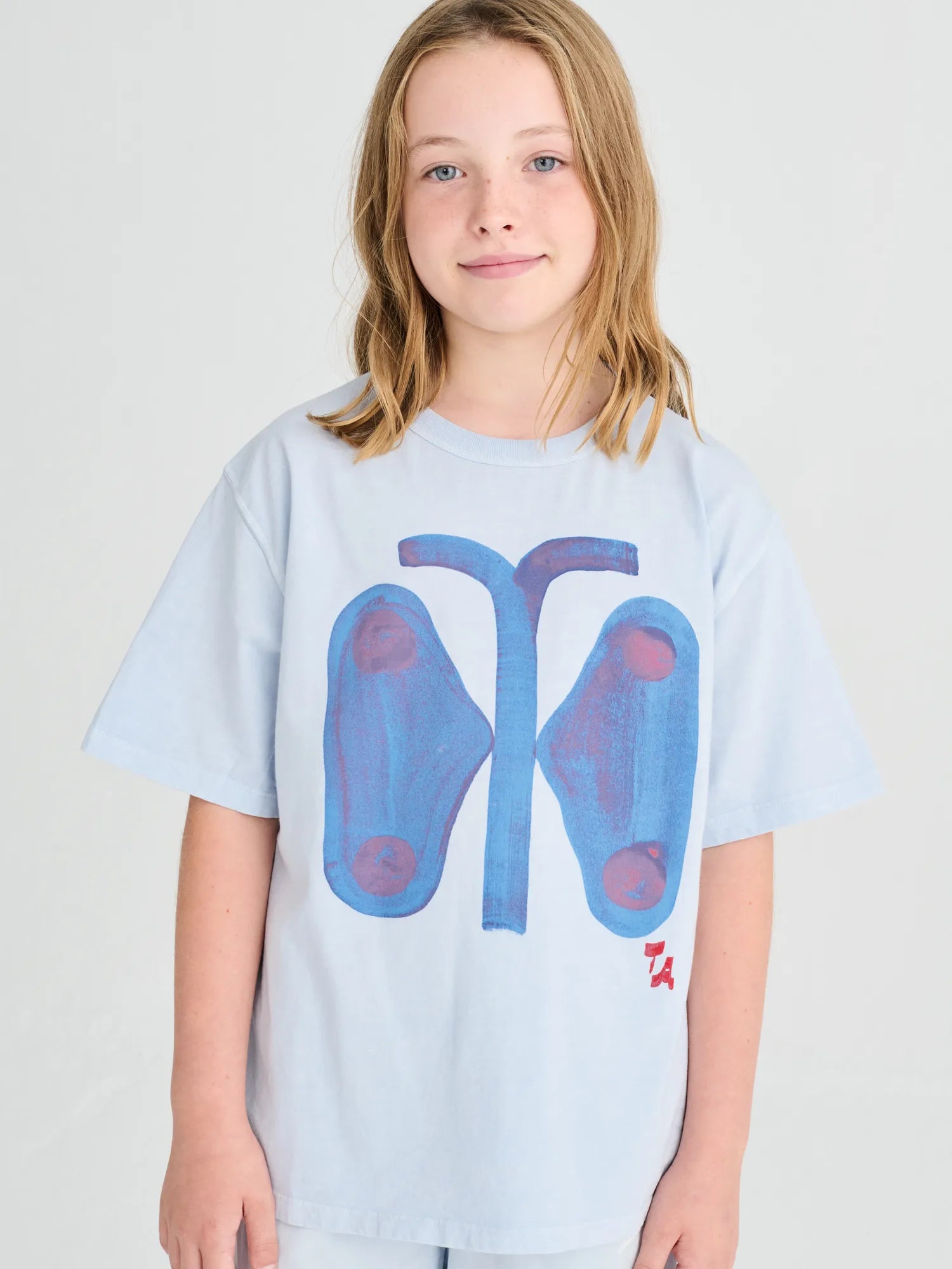 Butterfly Strokes T-shirt is made of 100% organic cotton and it features a striking butterfly print, captured in a blend of blue hues. This short sleeve t-shirt is designed with round neck and dropped shoulders. It has a relaxed fit. Made in Spain.