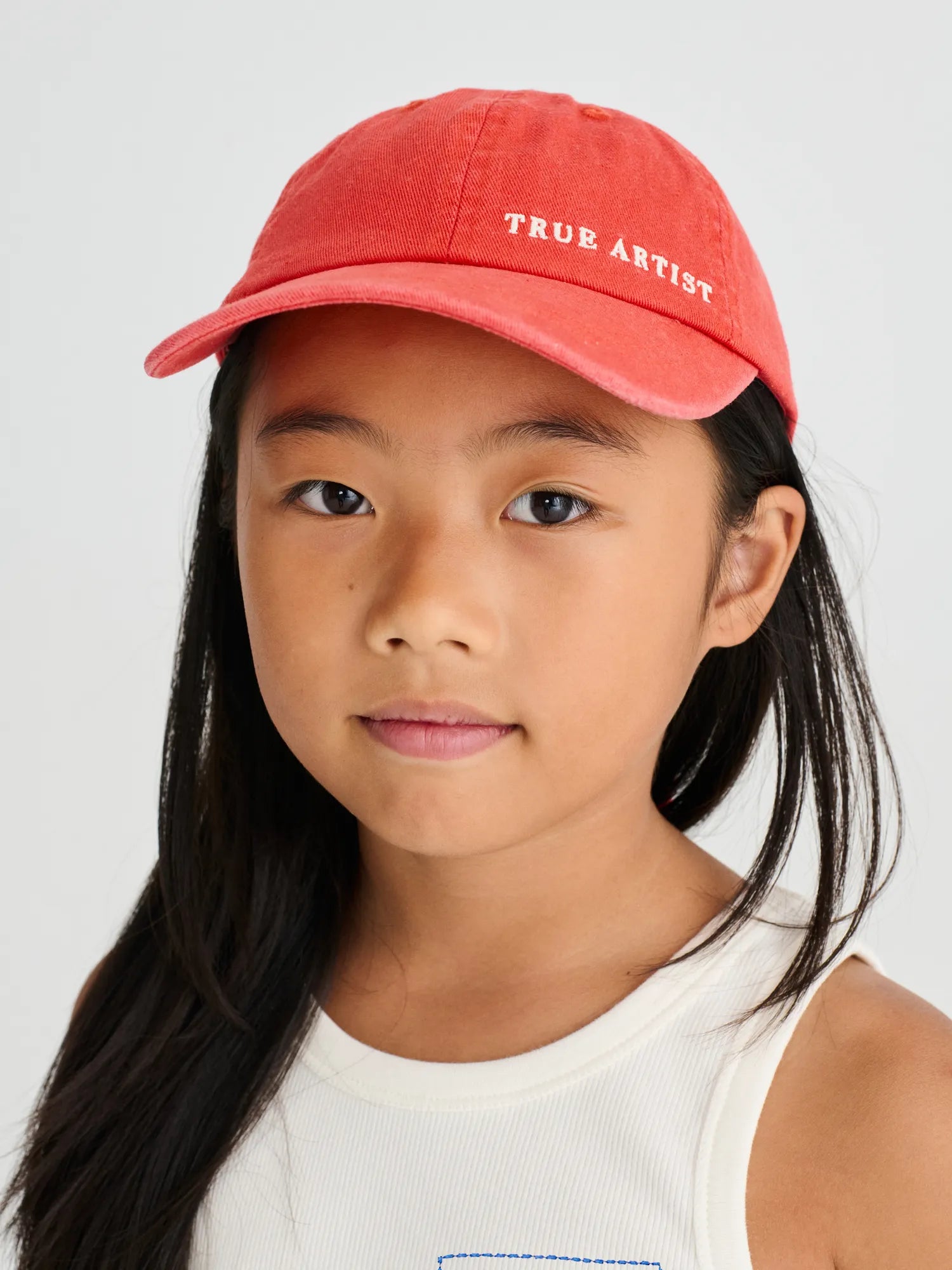 Cap nº04 in Mandarin Red is made of 100% recycled cotton. This cap features our TRUE ARTIST logo embroidered on the front and a knot detail at the back. Made in China.