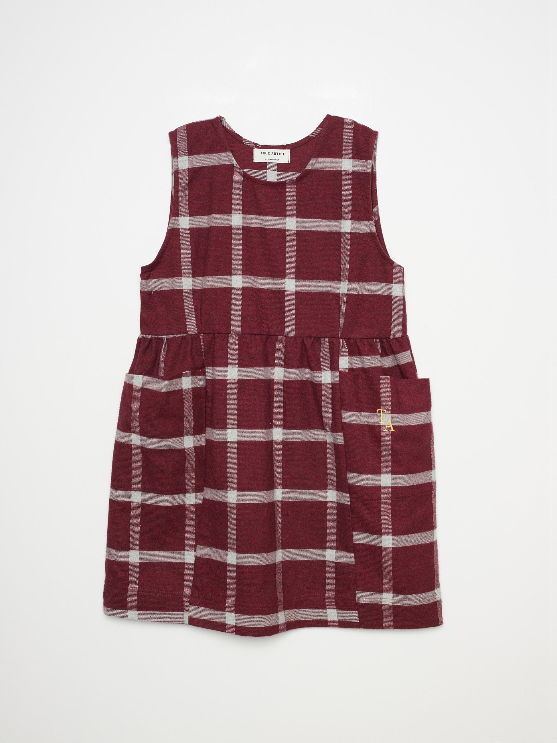 Our David Dress is a timeless piece that blends comfort and rustic charm. This sleeveless dress is made of 100% yarn dyed BCI cotton featuring a classic check. It is designed with round collar, patch pockets and has our TA logo embroidered in a warm yellow color. It has a loose fit and its length goes under the knees. Made in Spain.