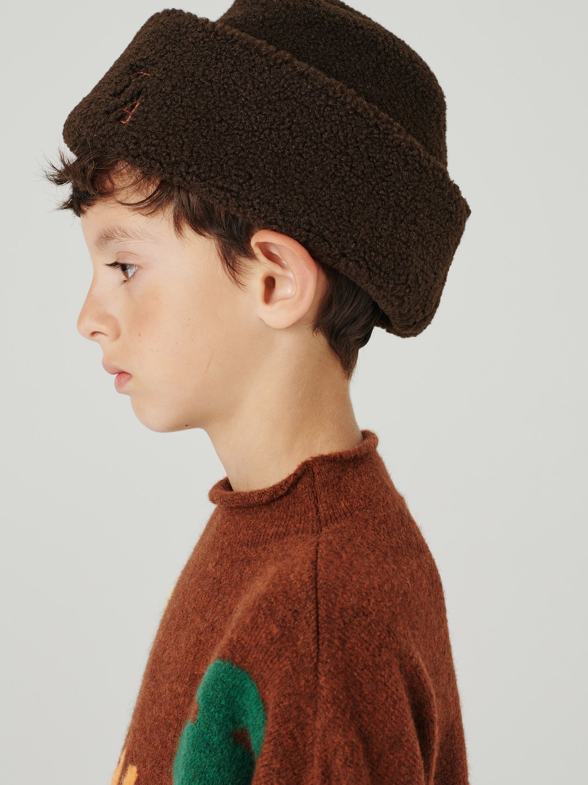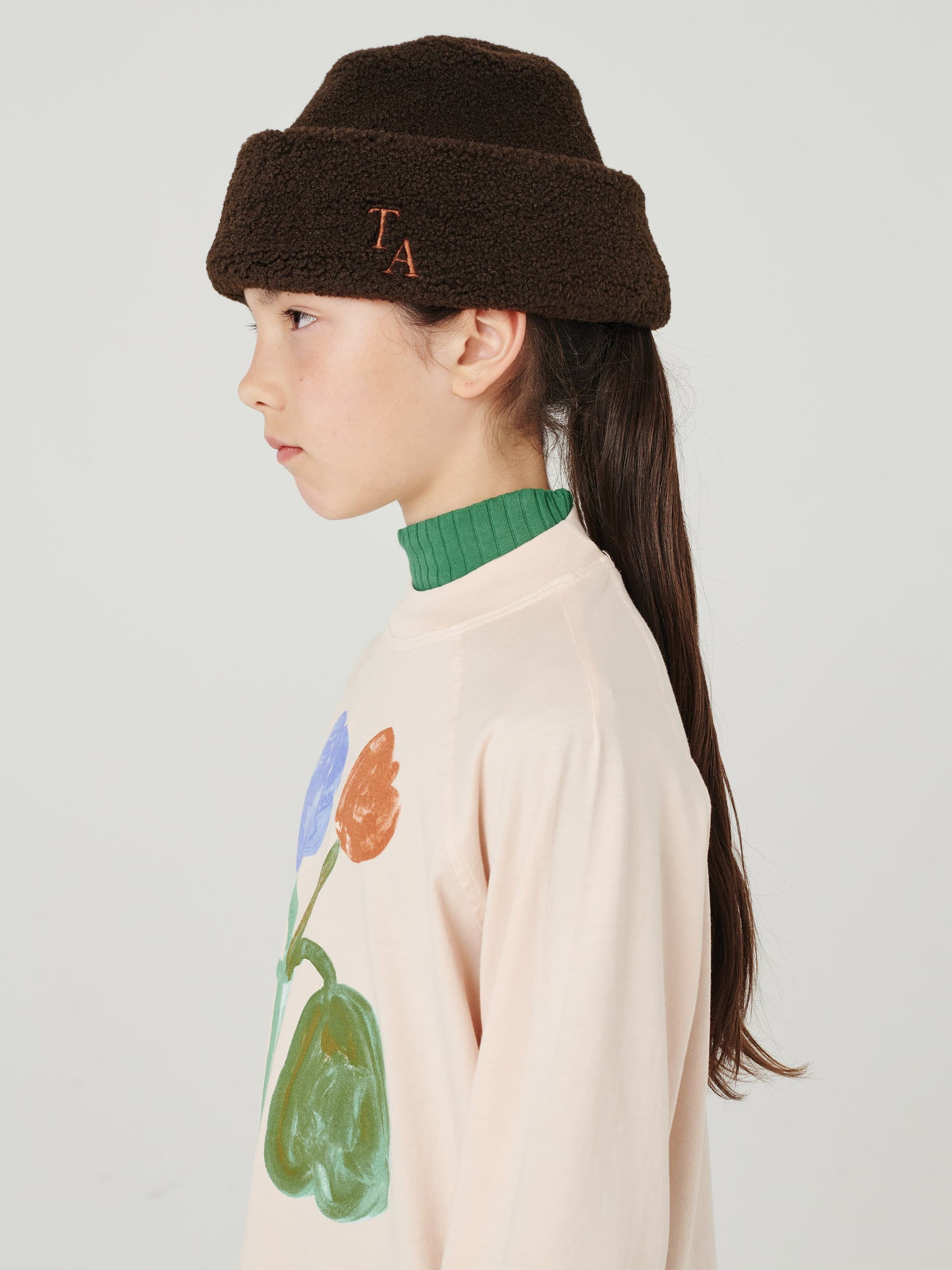 Beanie nº02 in Desert Sand is made of 50% wool 50% acrylic. This knitted hat has a small embroidery with our bird logo on the front. Made in Spain.