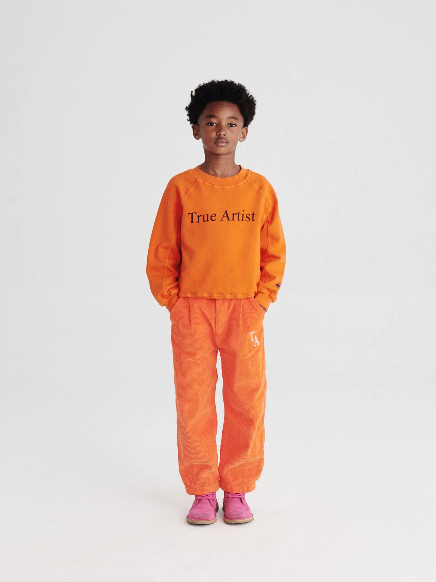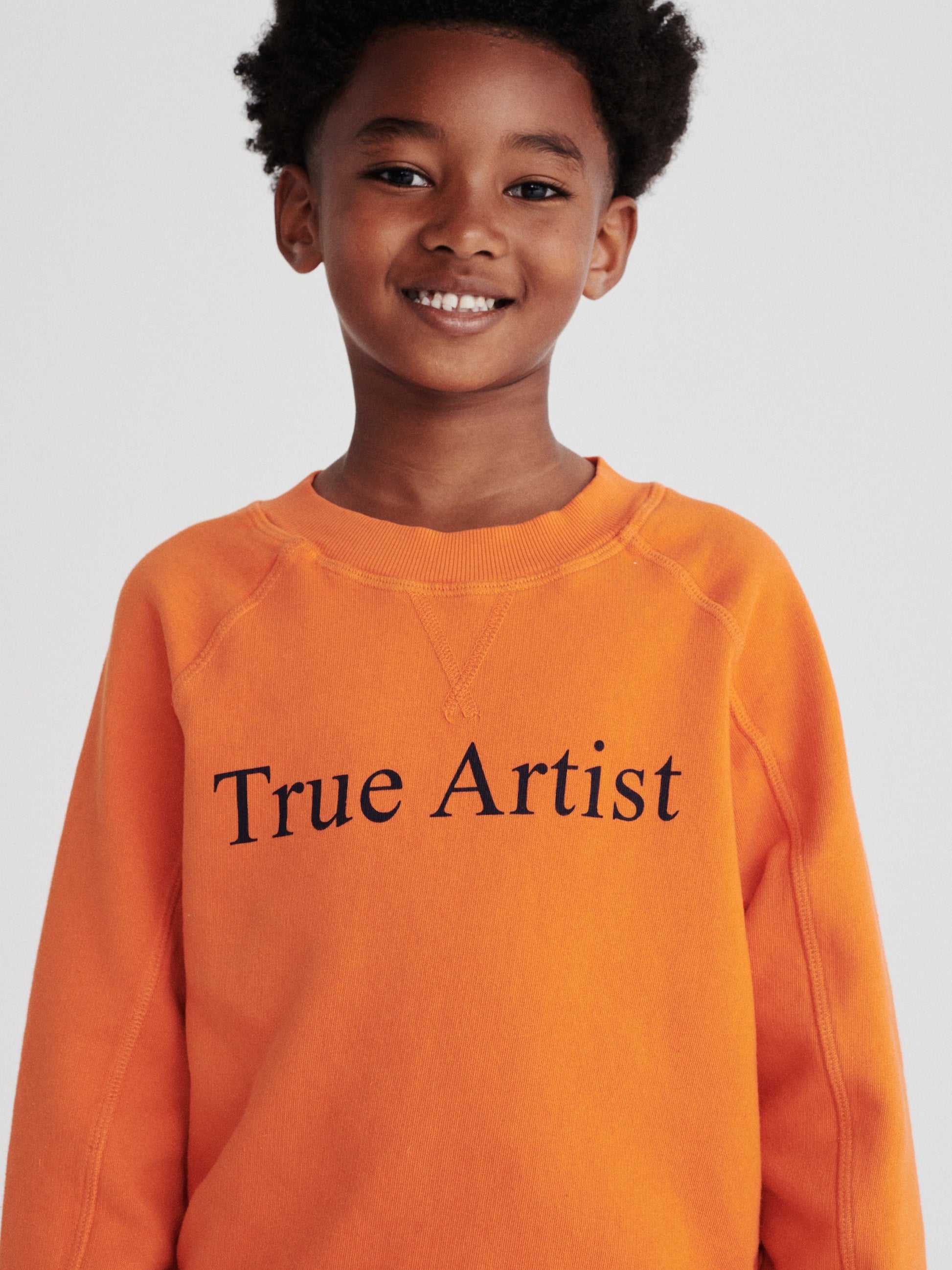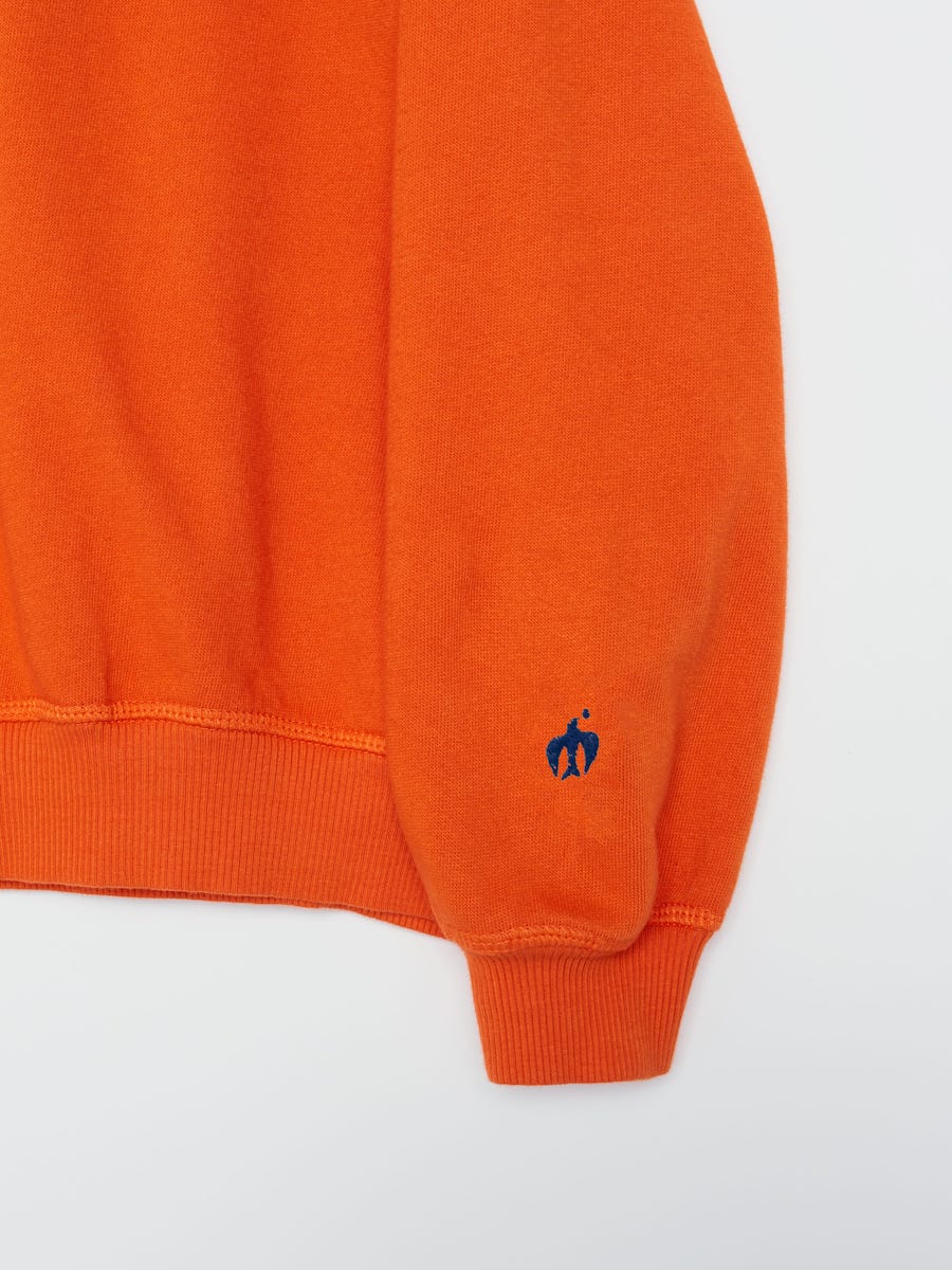 Sweatshirt nº01 in Celosia Orange is made of 100% organic cotton fleece and has our logo printed on the front. It is designed with ranglan sleeves, ribbed at cuffs and bottom, and has our bird logo embroidered on the sleeve. It has a loose fit. Made in Spain.