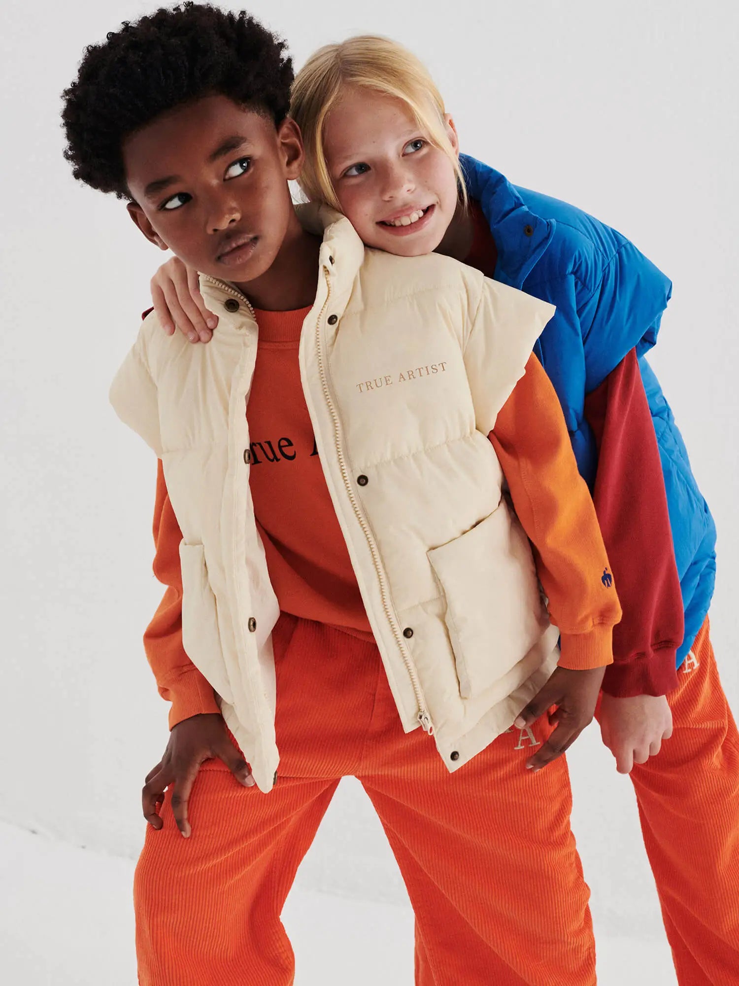 Padded Vest nº04 in Oatmeal is made of 100% polyamide. This vest features our TRUE ARTIST print on the chest and is designed with front zipper fastening and patch pockets at the front. Its filling is made of 100% polyester. It has a relaxed fit. Made in China.