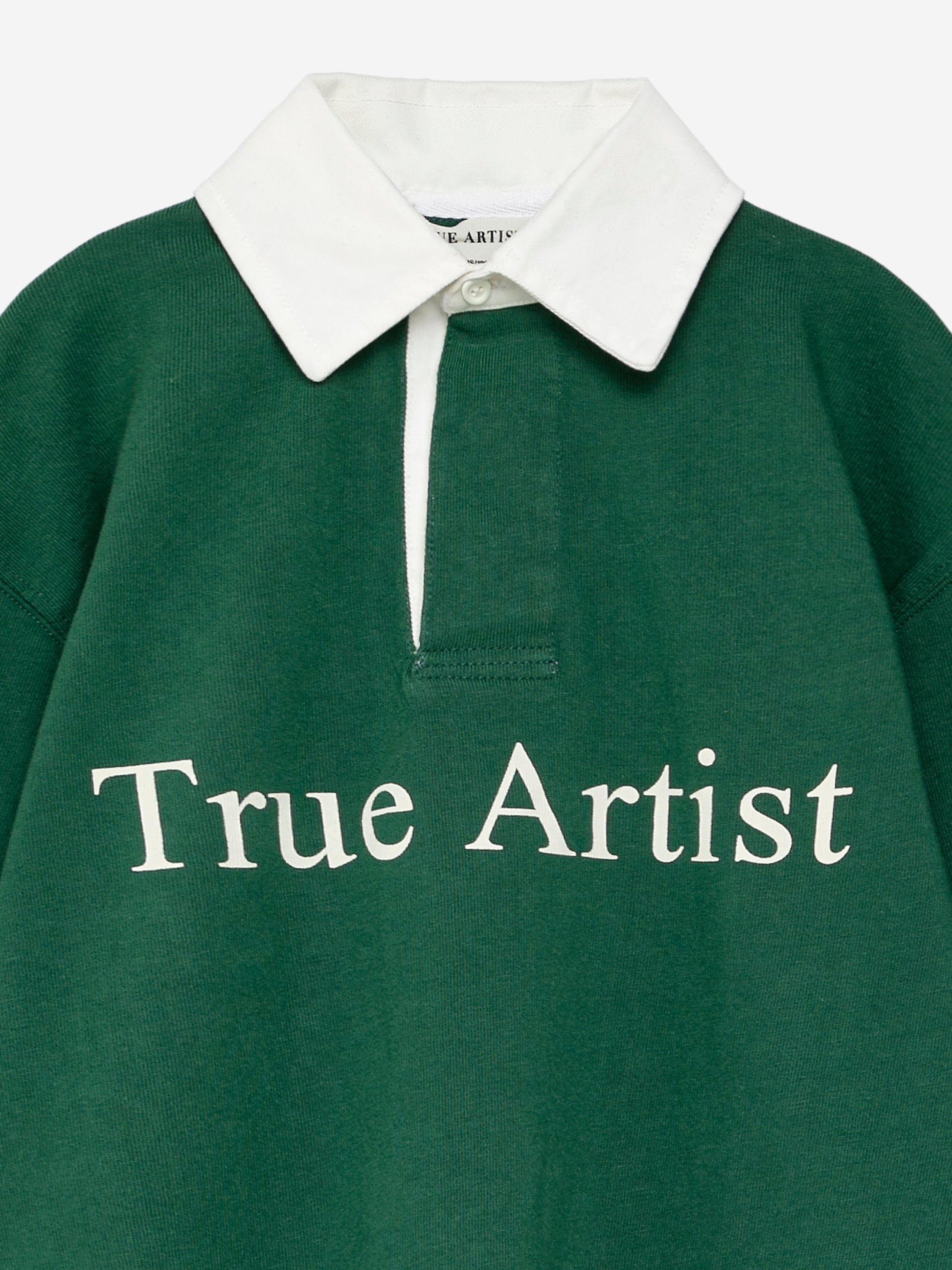 Polo T-shirt nº01 in Forest green is made of 100% high density Cotton fabric. This classic polo t-shirt features our True Artist logo printed on the front and it is designed with spread woven collar with buttons and contrast color elastic cuffs. It has a relaxed fit. Made in Portugal.