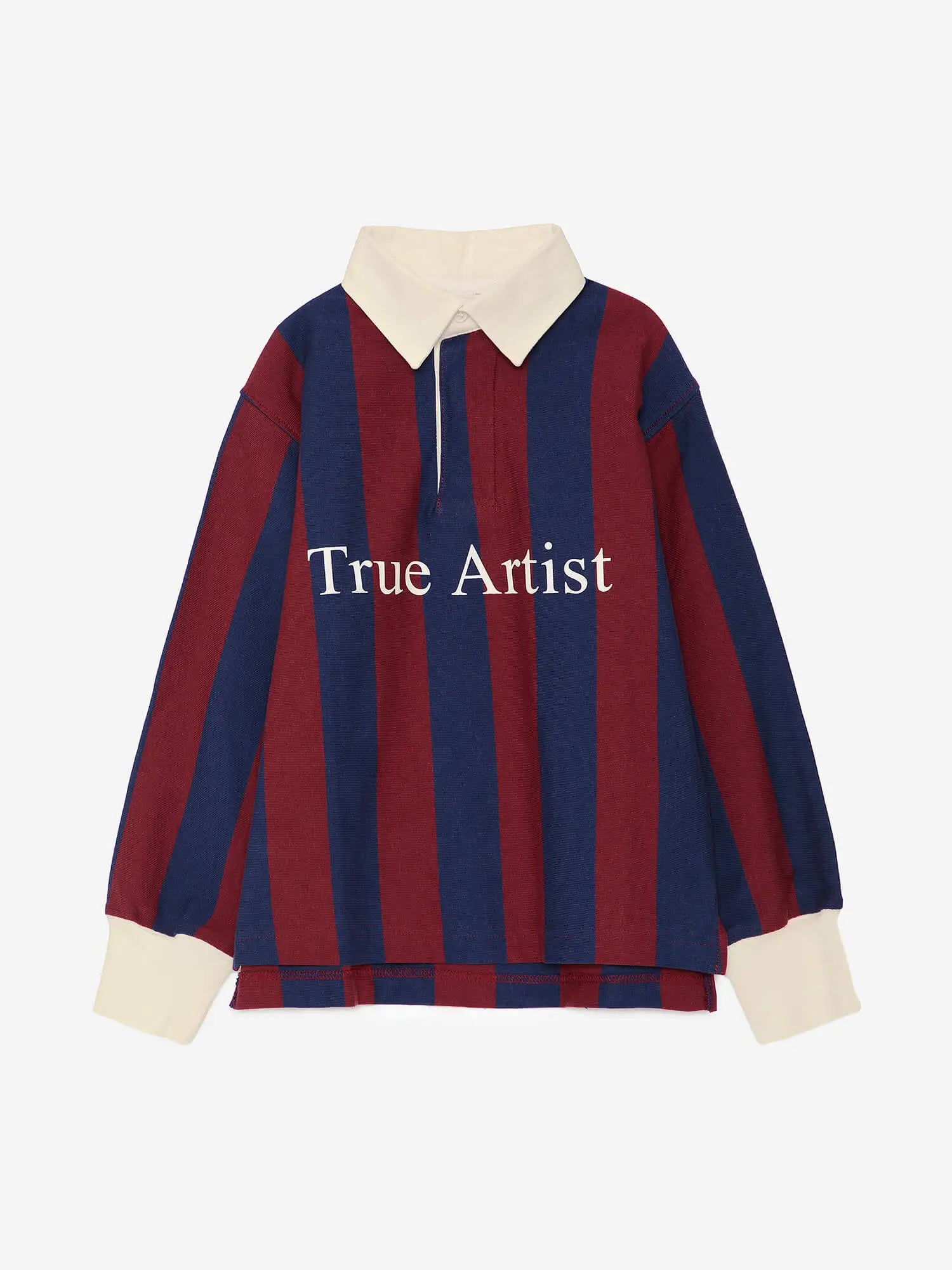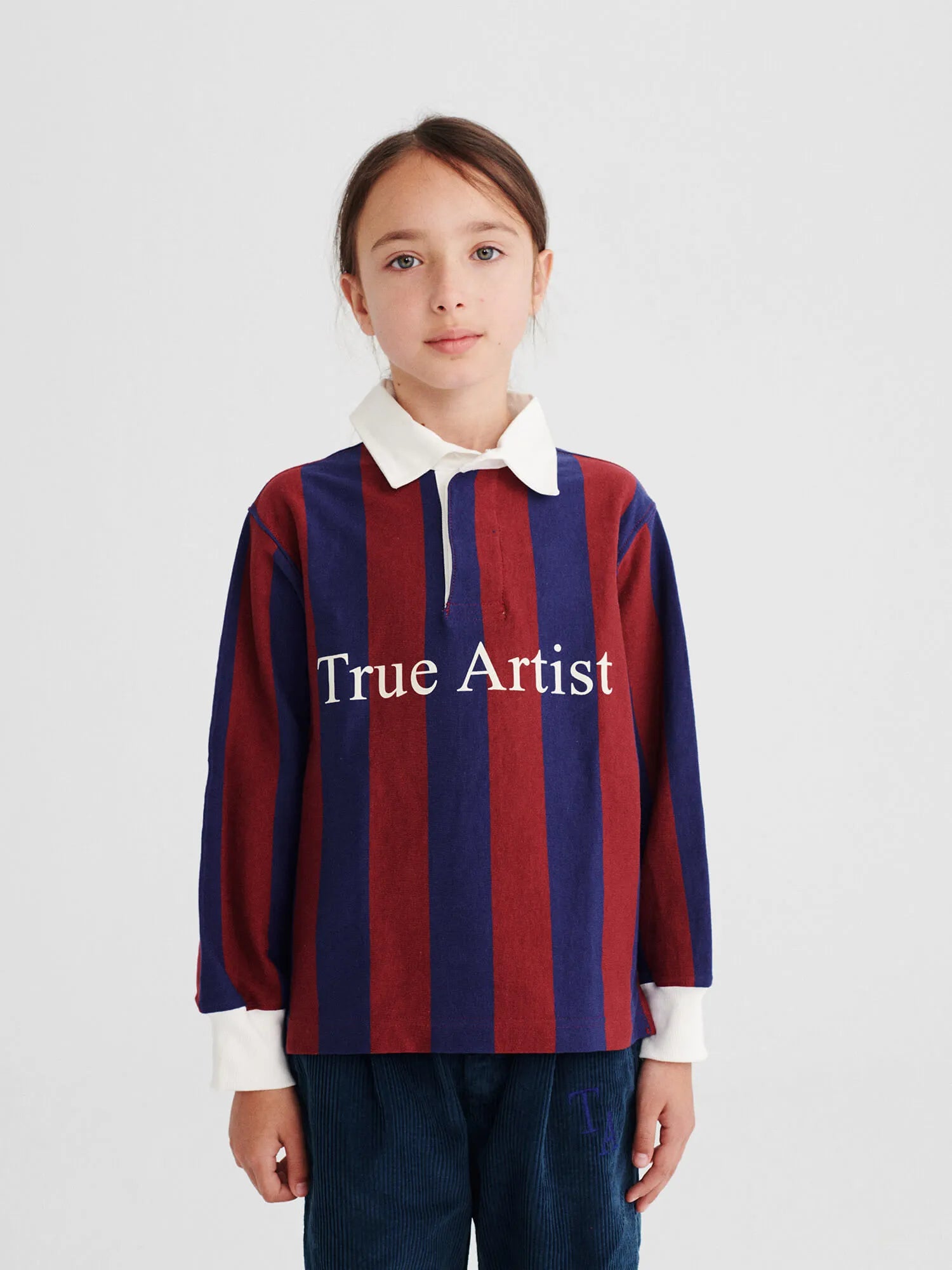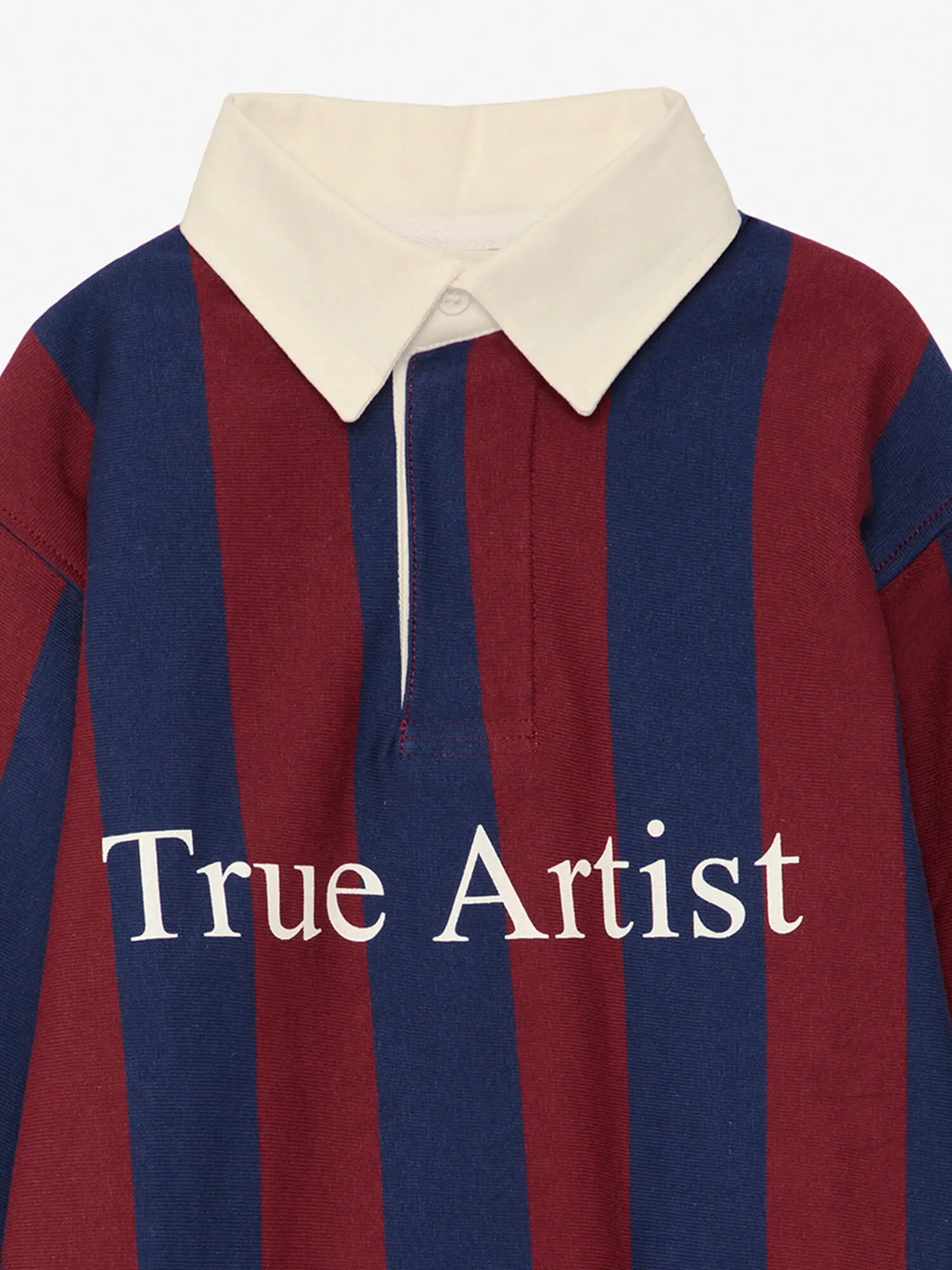 Polo T-shirt nº01 in Lapis Blue is made of 100% Cotton yarn dyed fabric. This classic polo t-shirt features our True Artist logo printed on the front and it is designed with spread woven collar with buttons and contrast color elastic cuffs. It has a relaxed fit. Made in Portugal.
