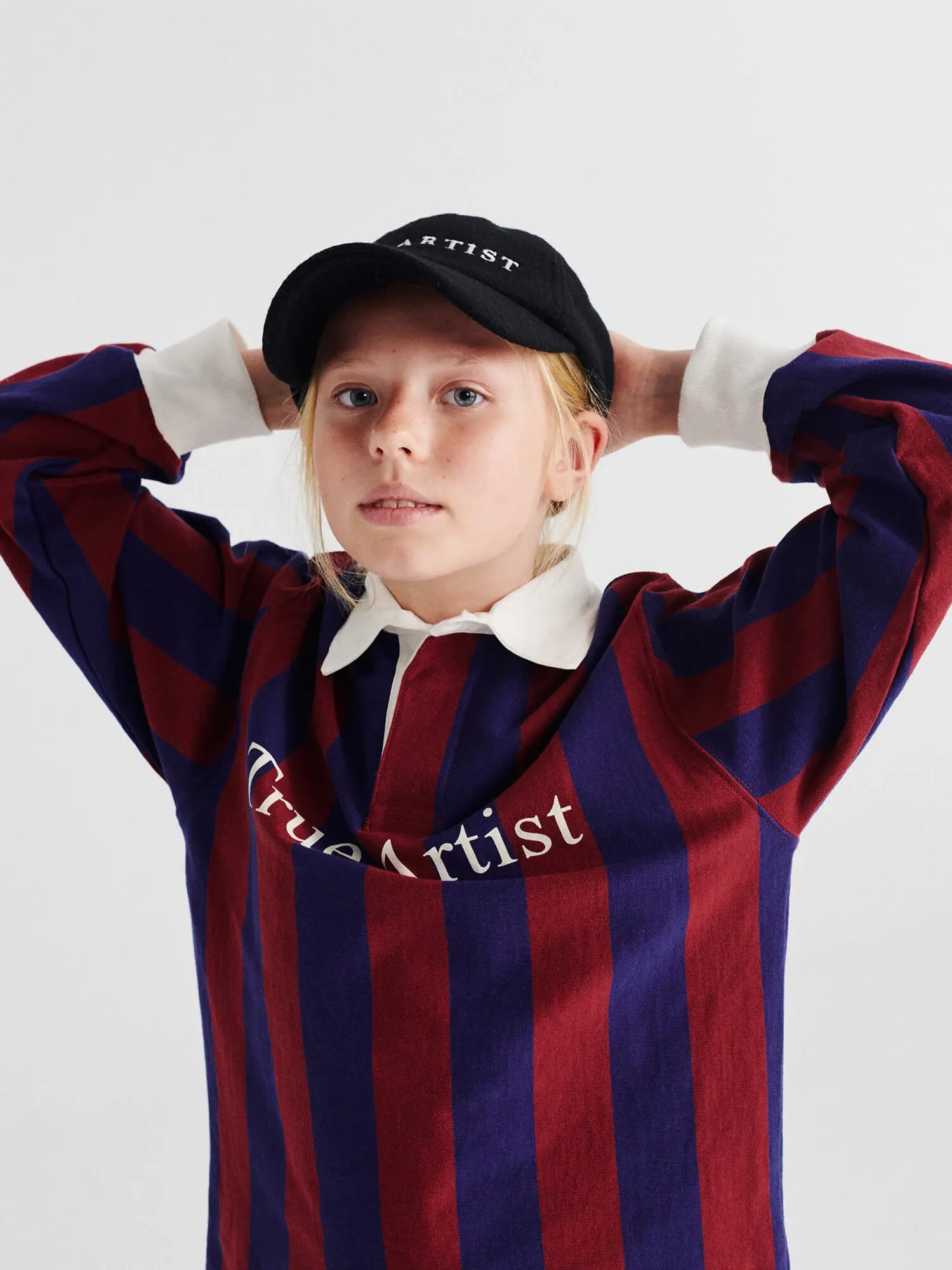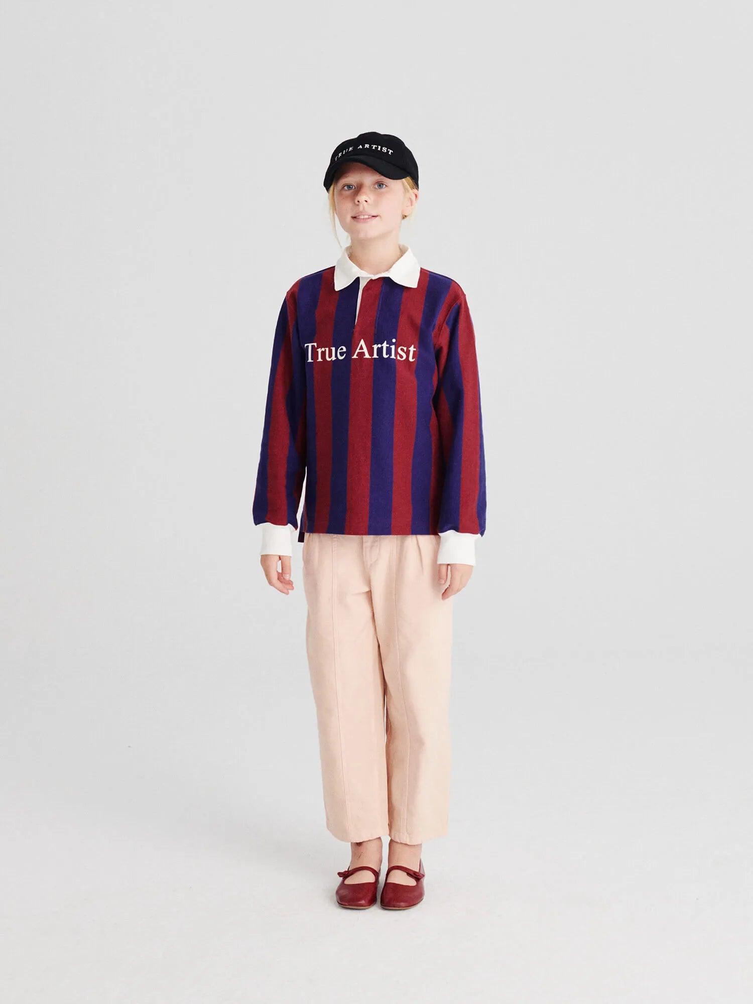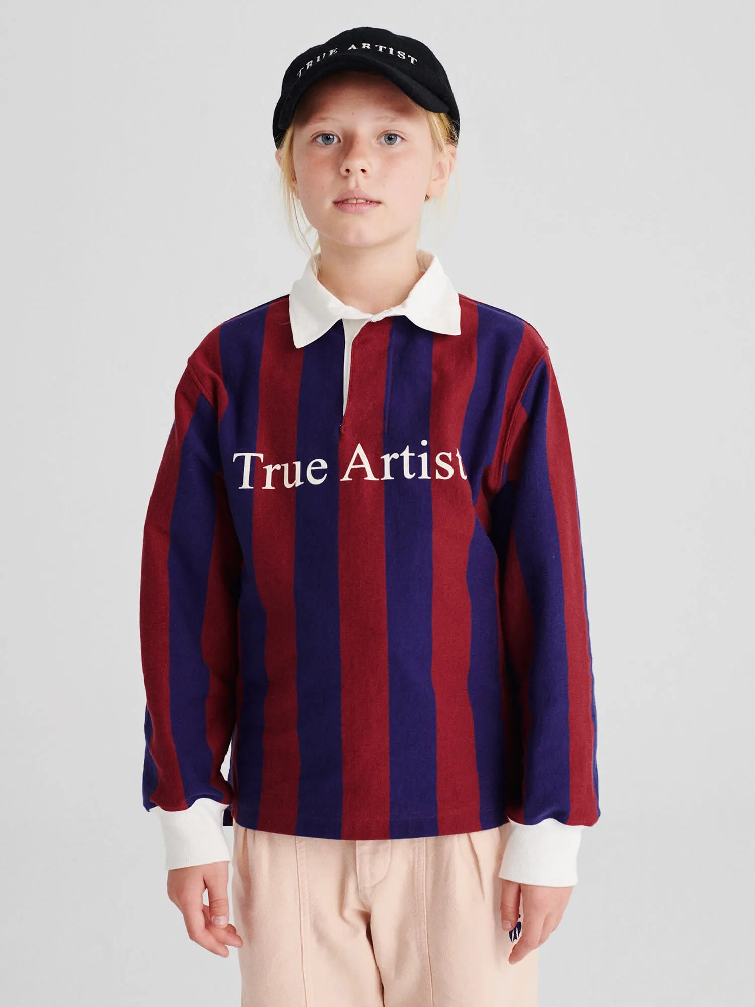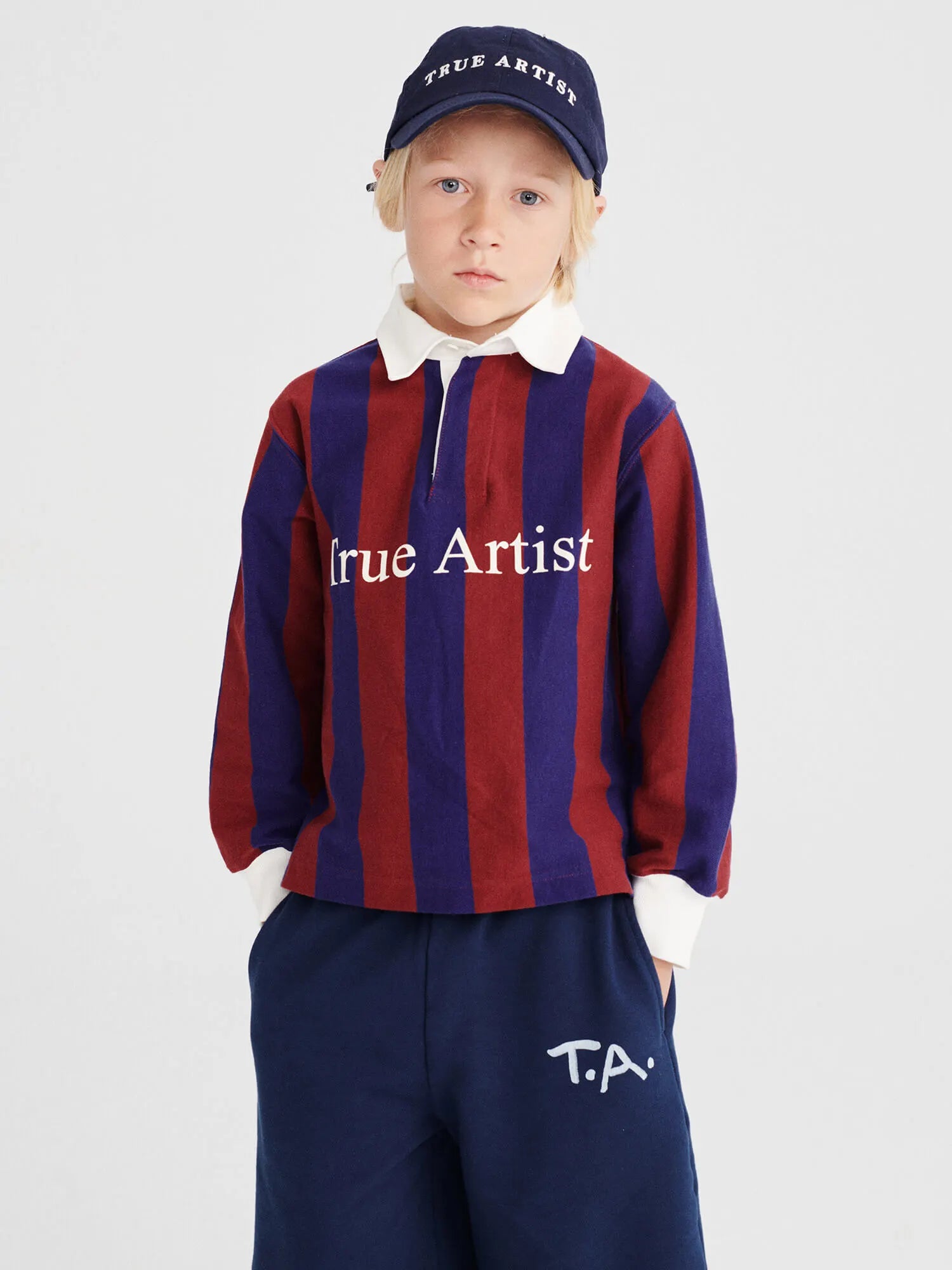 Polo T-shirt nº01 in Lapis Blue is made of 100% Cotton yarn dyed fabric. This classic polo t-shirt features our True Artist logo printed on the front and it is designed with spread woven collar with buttons and contrast color elastic cuffs. It has a relaxed fit. Made in Portugal.
