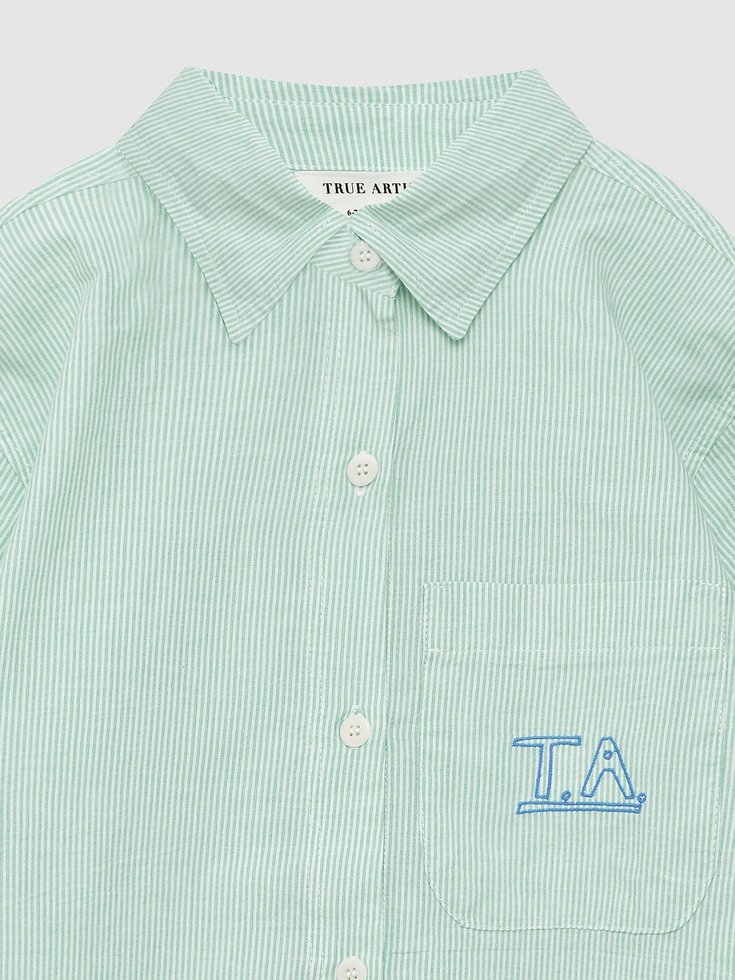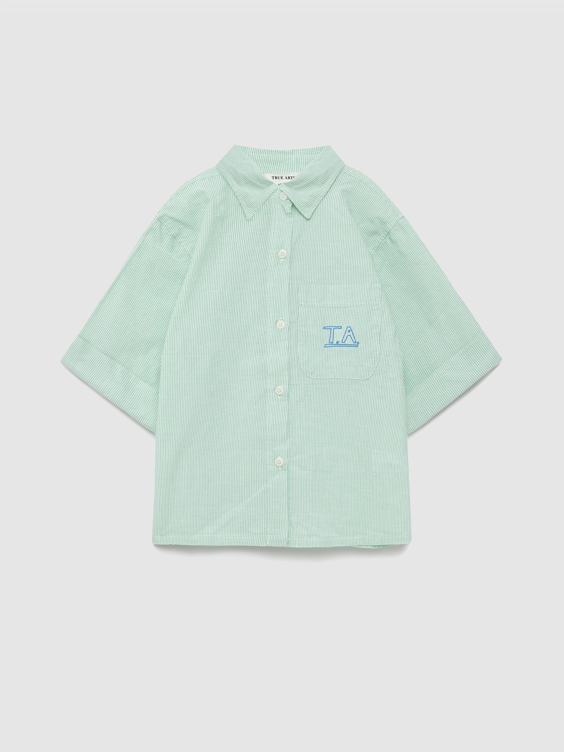 Shirt nº06 in Jade Green is made of 100% yarn dyed cotton fabric. This striped shirt is is designed with a spread collar, short sleeves and front button fastening and has our seasonal TA logo embroidered in contrast color on the chest pocket. It has a relaxed fit. Made in Spain.