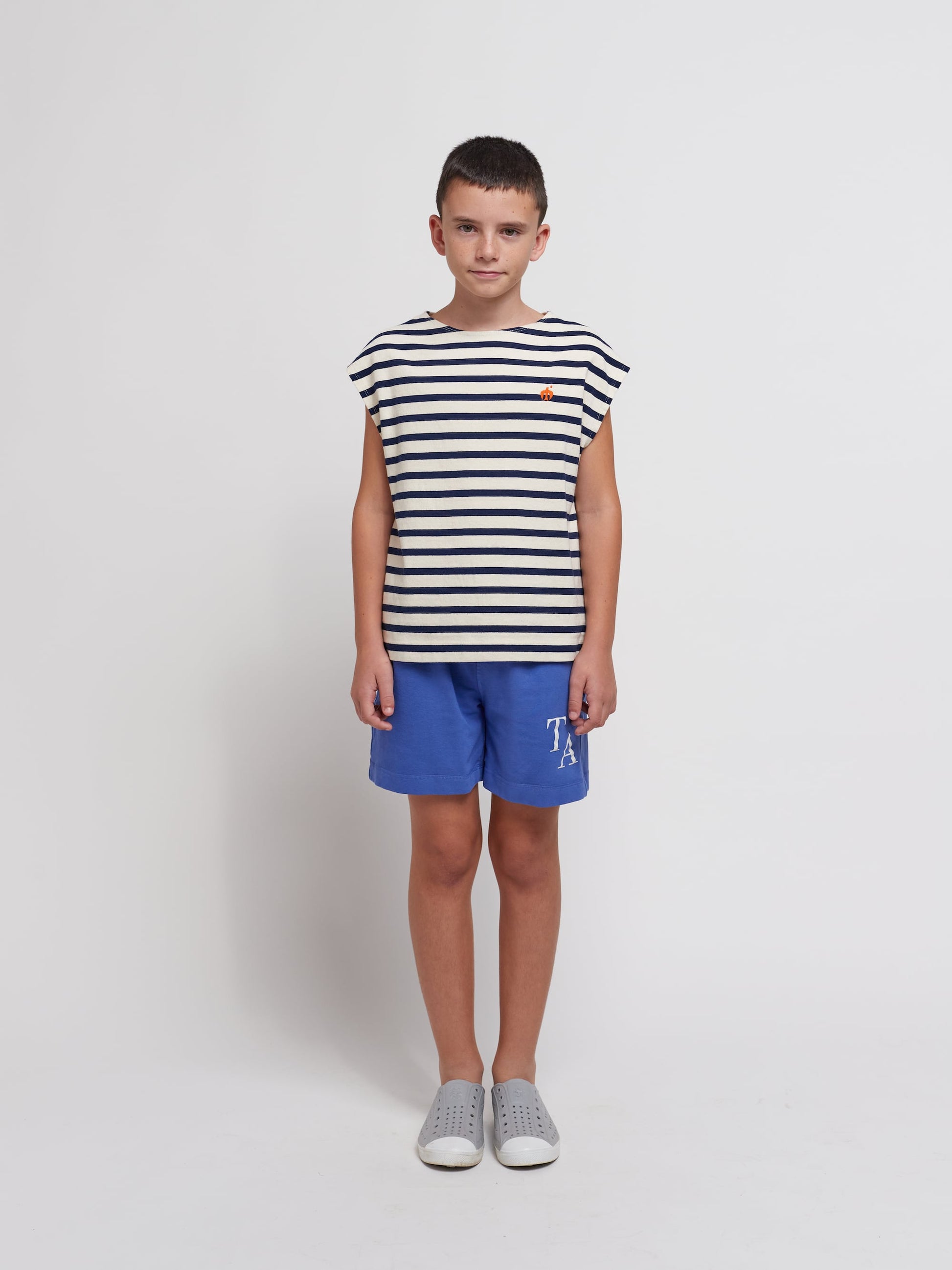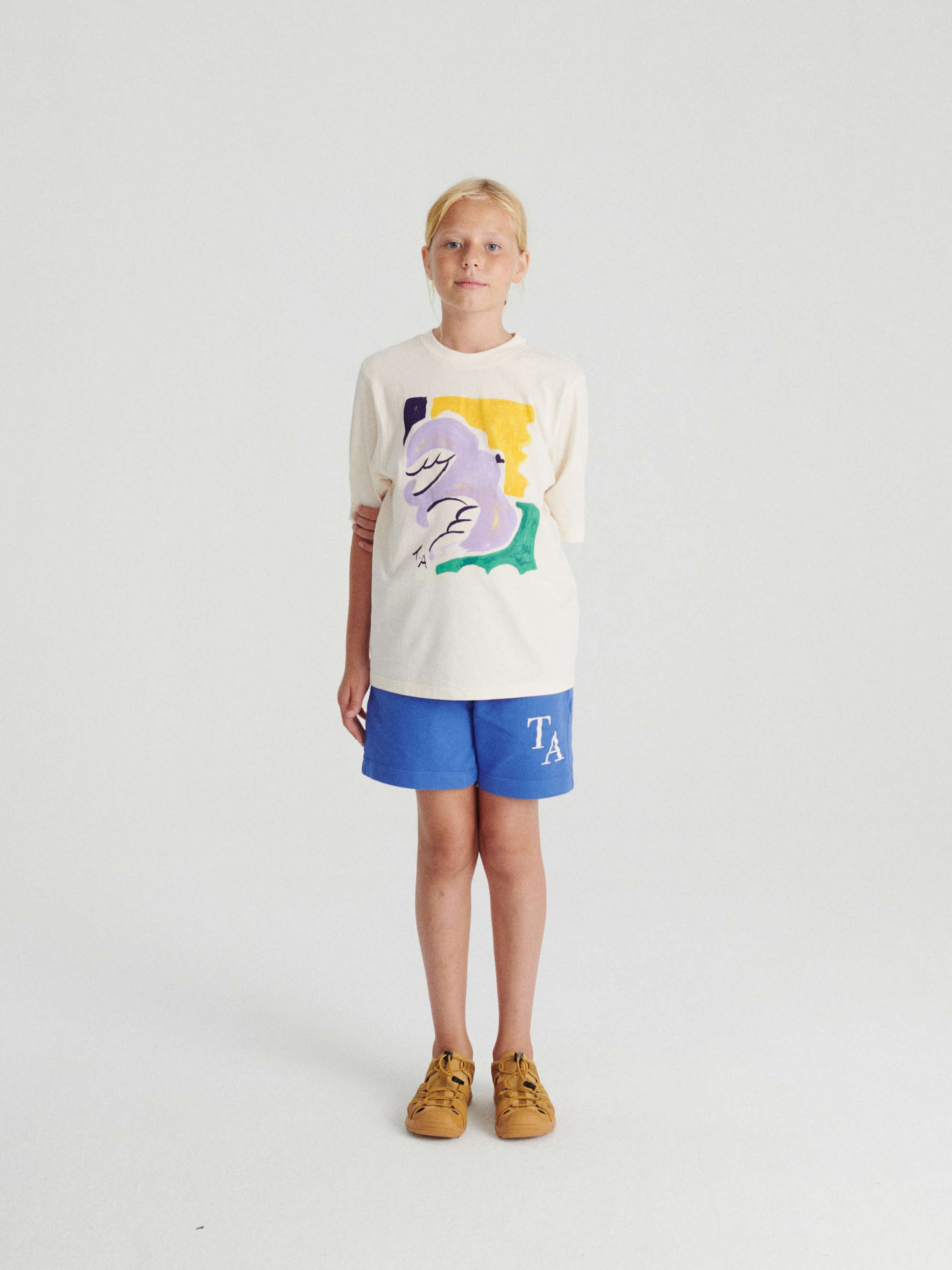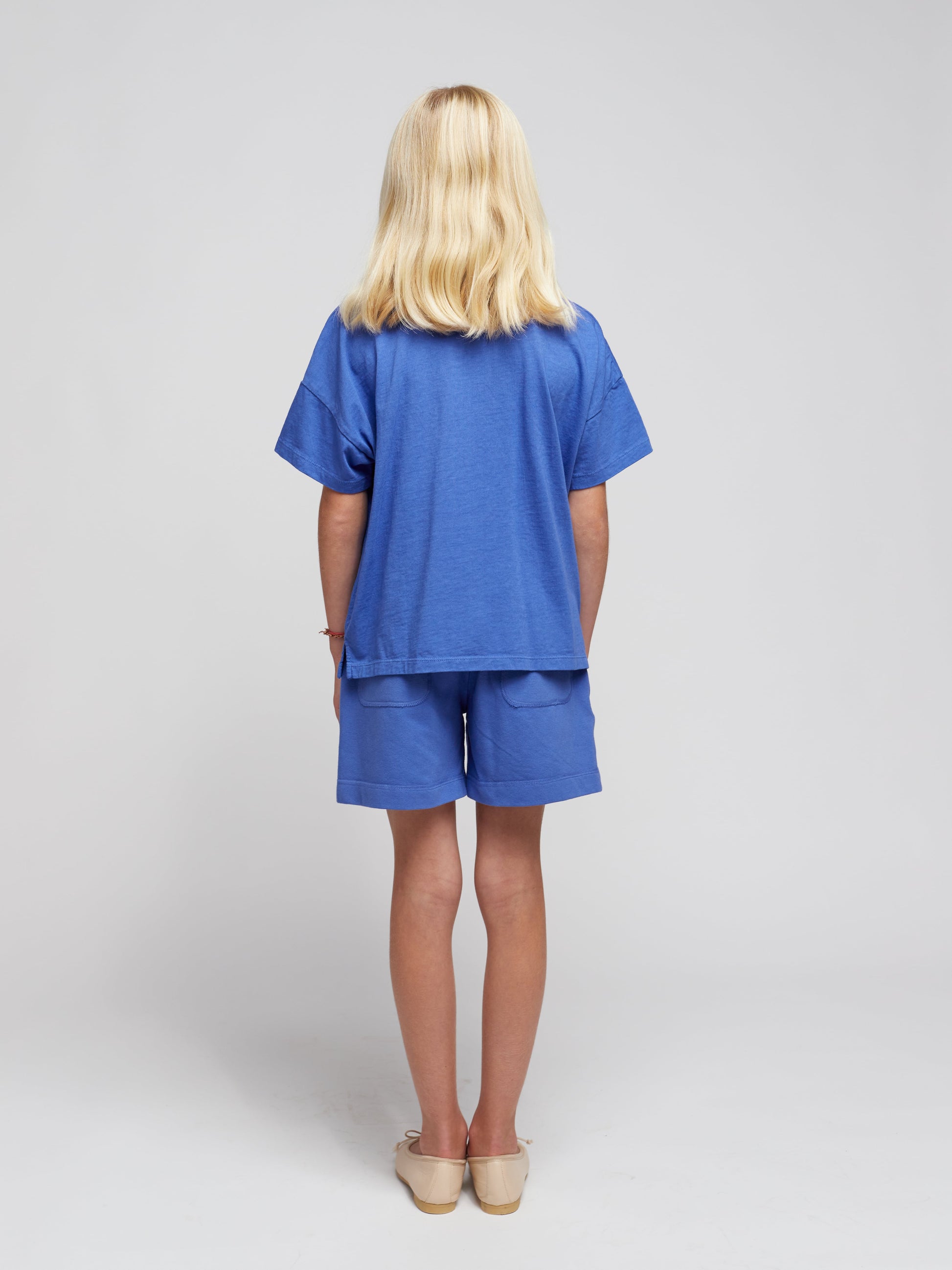 Shorts nº04 in Iris Blue are made of 94% organic cotton and 6% elastane soft fleece and have our TA logo printed on the front in contrast color. They are designed with adjustable wasitband and side pockets. They have a straight fit. Made in Spain.
