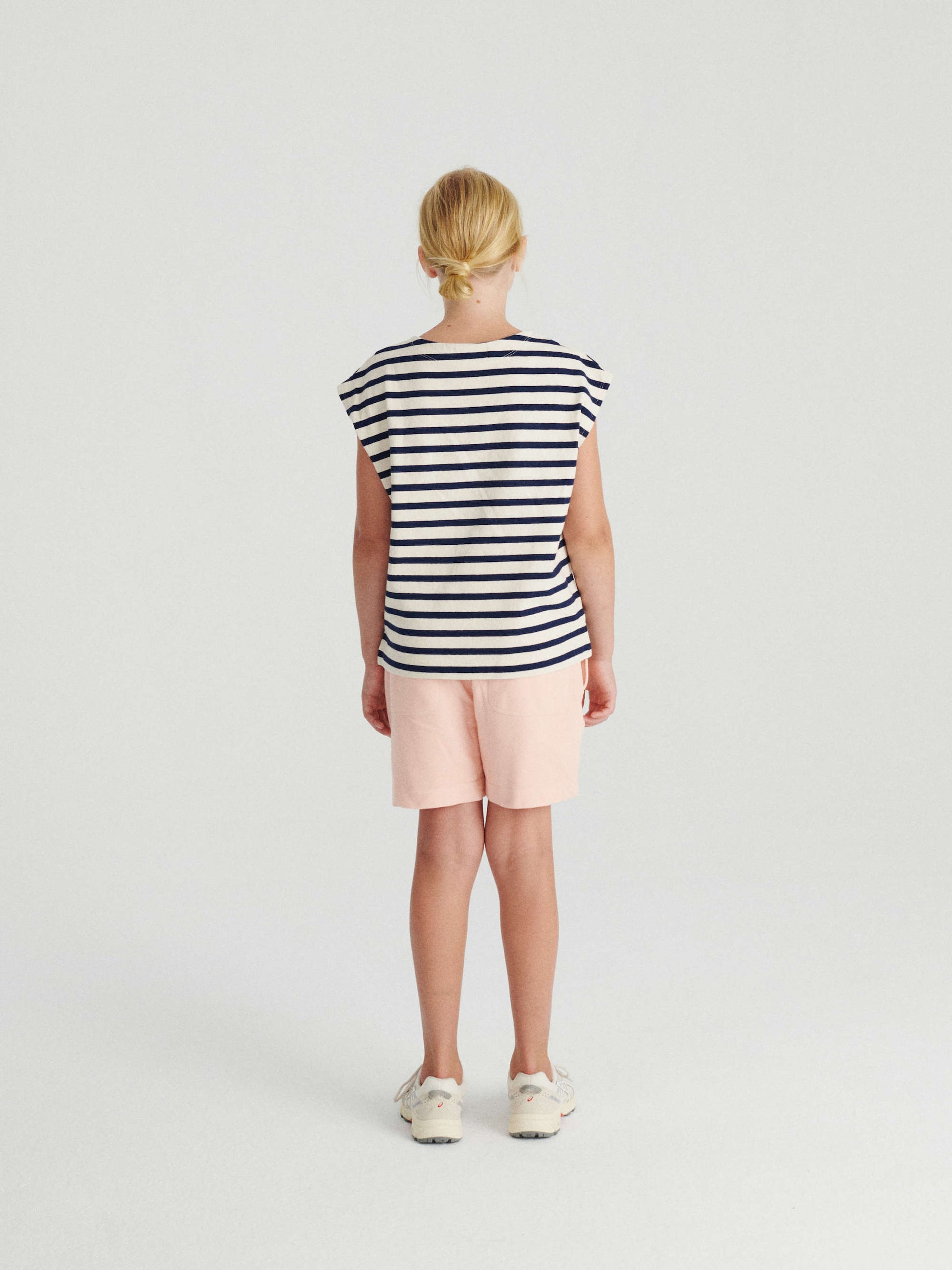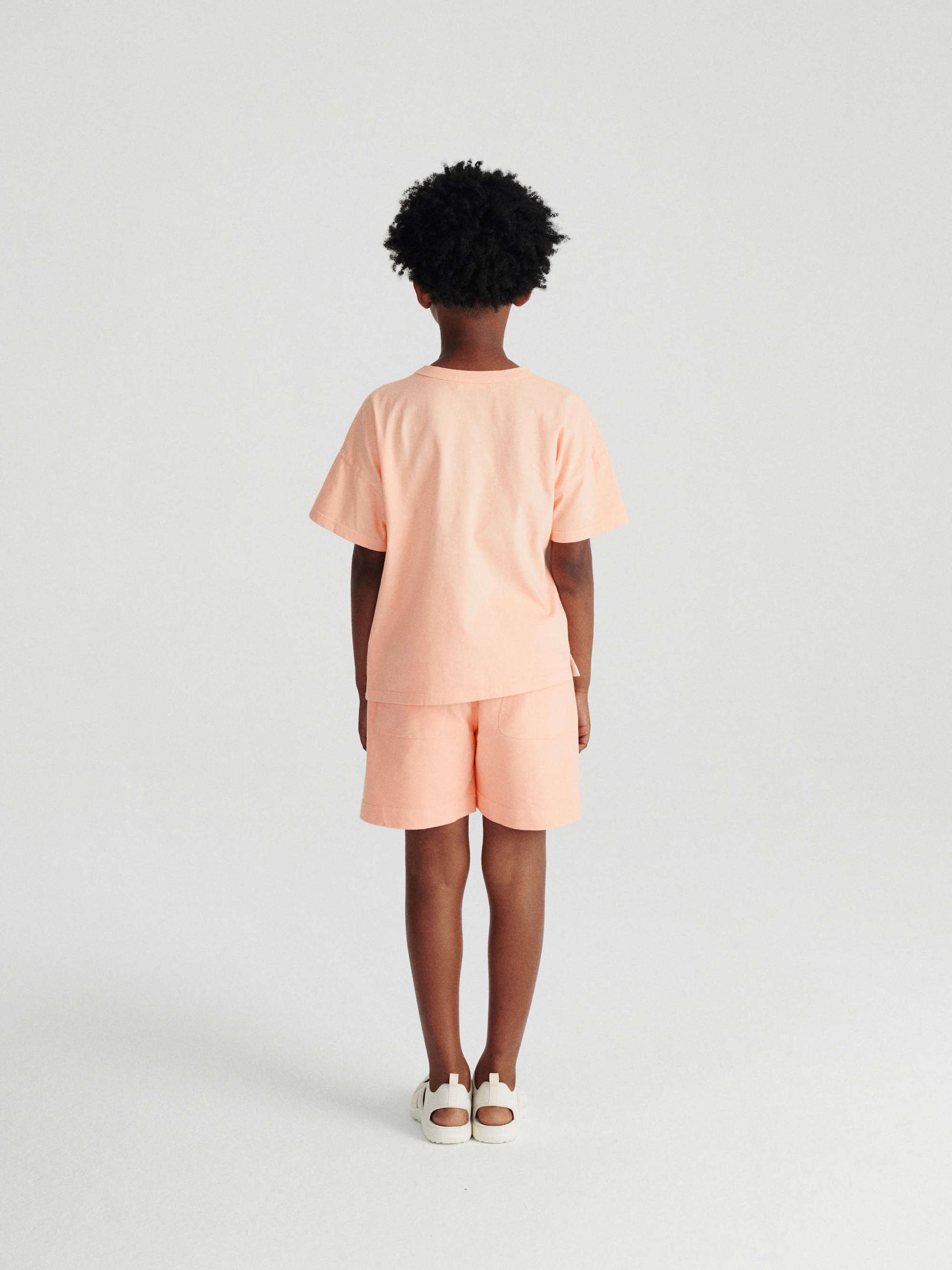 Shorts nº04 in Soft Salmon are made of 94% organic cotton and 6% elastane soft fleece and have our TA logo printed on the front in contrast color. They are designed with adjustable wasitband and side pockets. They have a straight fit. Made in Spain.