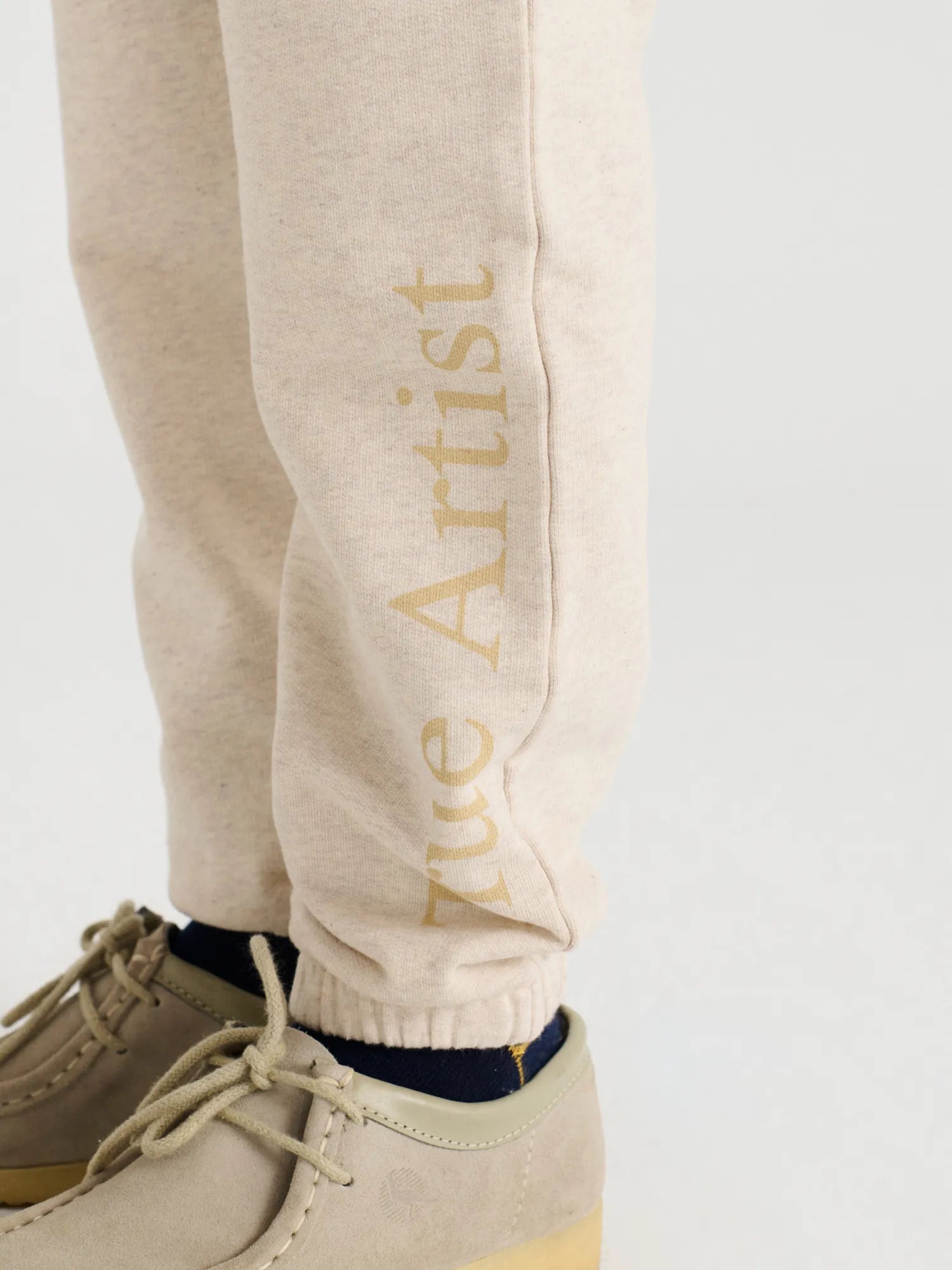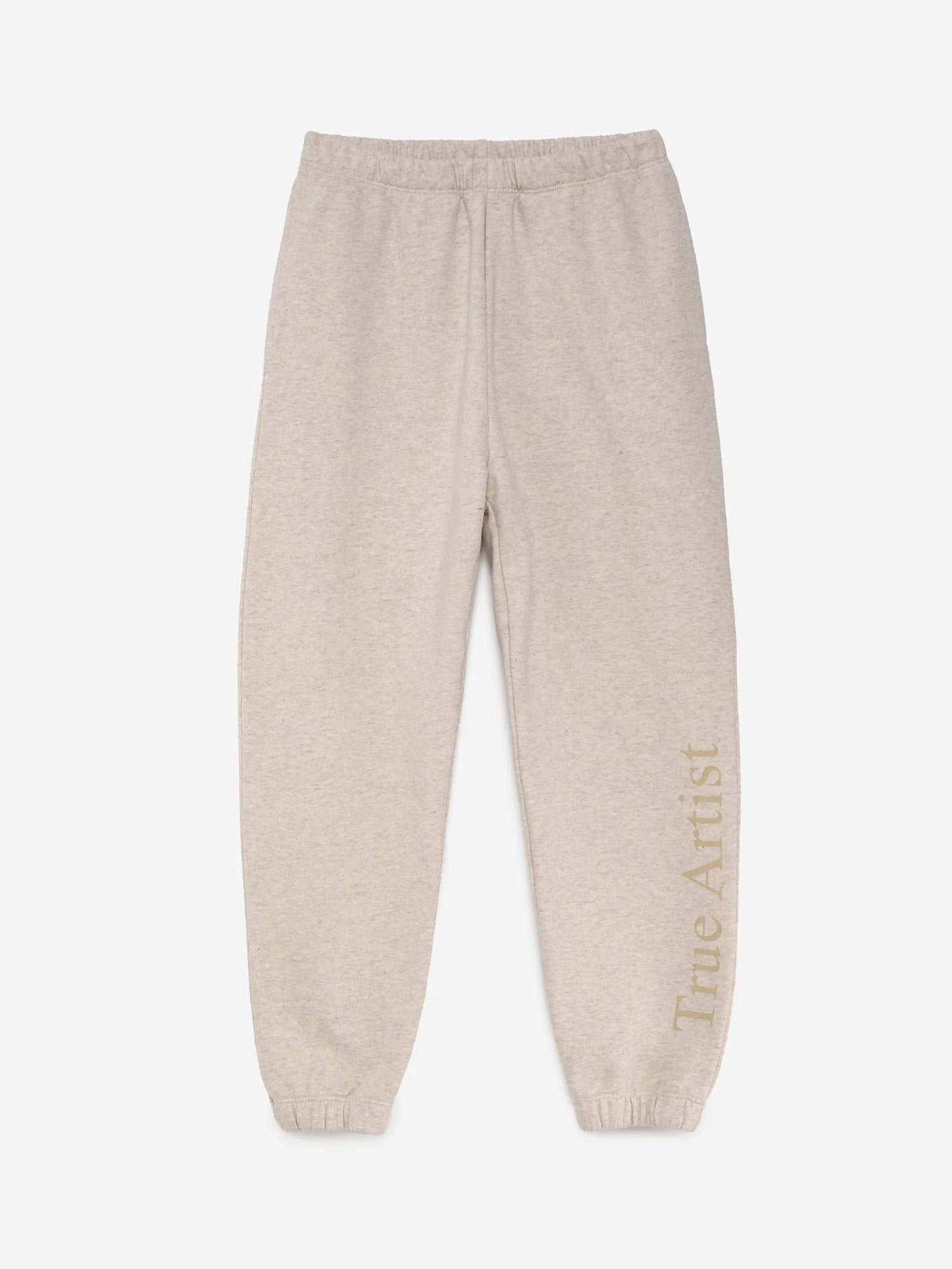 Sweatpants nº05 in Melange Cream are made of 100% organic cotton and 2% elastan fleece and have our logo printed on the leg. These iconic sweatpants are designed with elastic adjustable waistband, relaxed crotch and slash pockets. They have a relaxed fit. Made in Portugal.