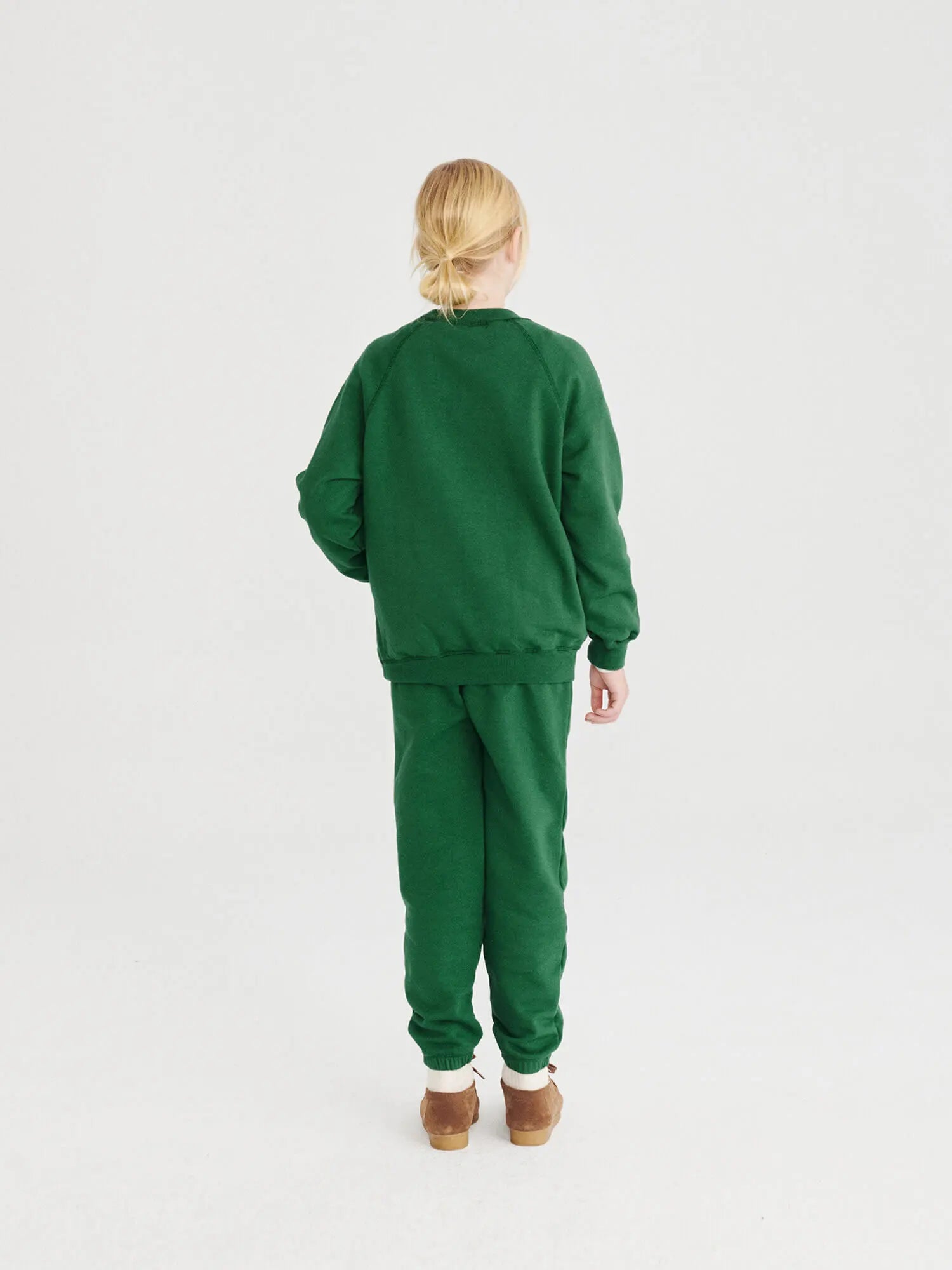 Sweatpants nº05 Verdant Green are made of 98% organic cotton and 2% elastane fleece and have our logo printed on the leg. They are designed with elastic adjustable waistband, relaxed crotch and slash pockets. They have a relaxed fit. Made in Spain.