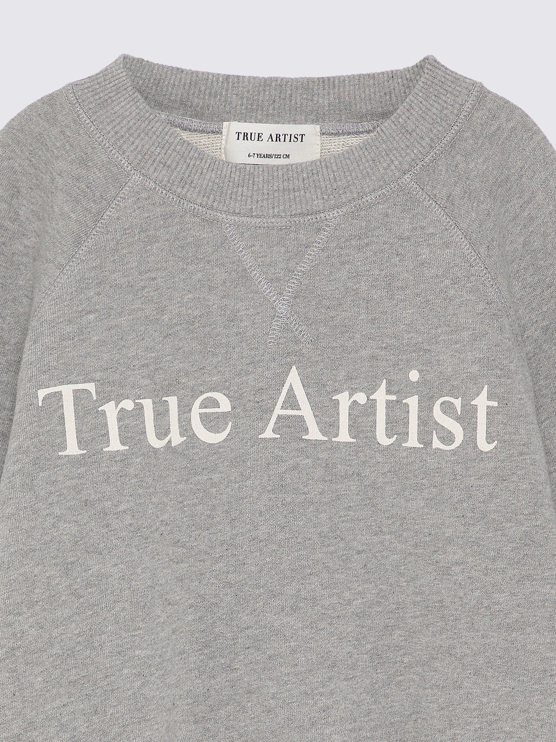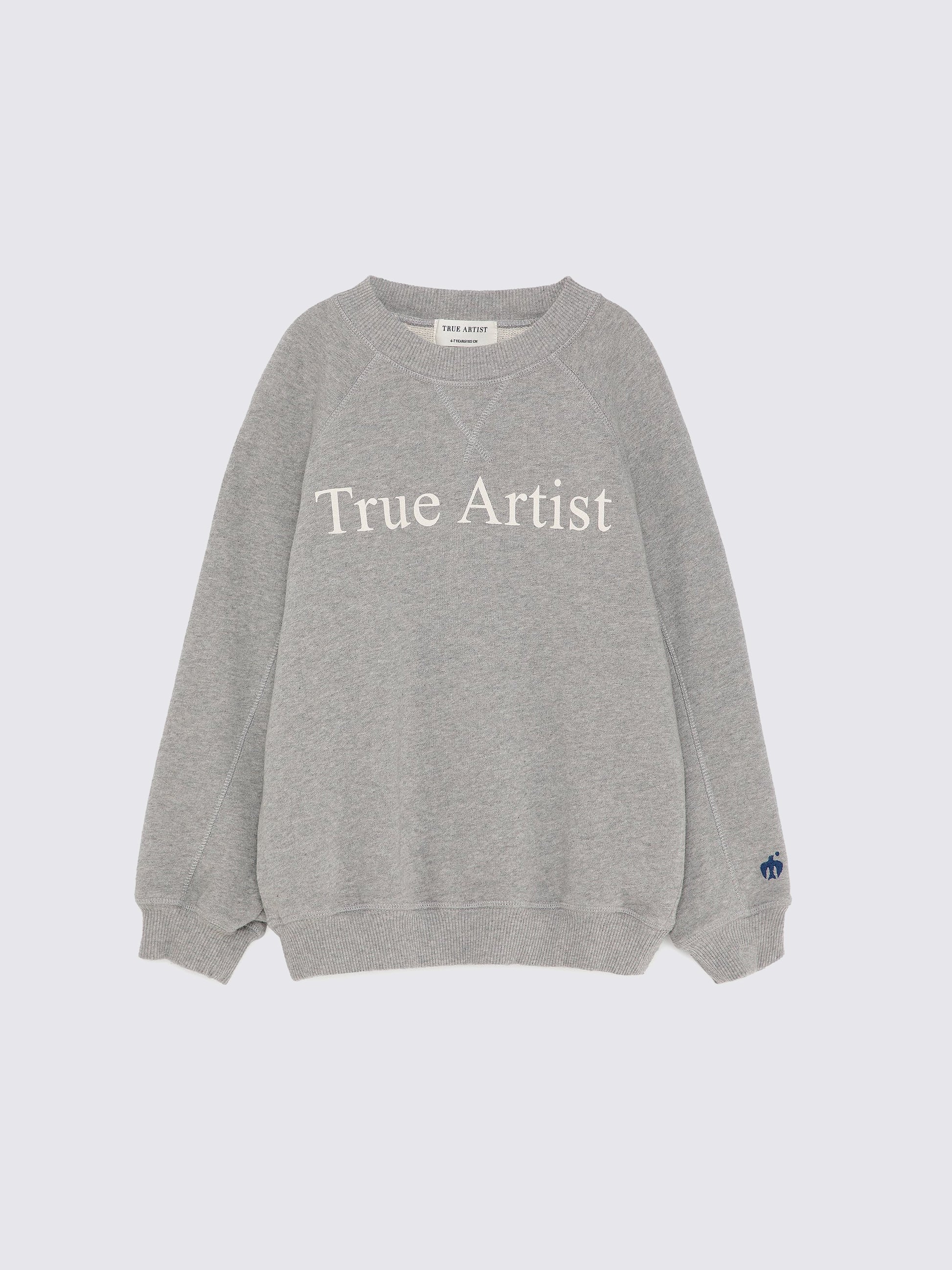 Sweatshirt nº01 in Melange Gray is made of 100% cotton and has our lettered logo printed on the front. It is designed with ranglan sleeves, ribbed at cuffs and bottom, and has our bird logo embroidered on the sleeve. It has a loose fit. Made in Portugal.