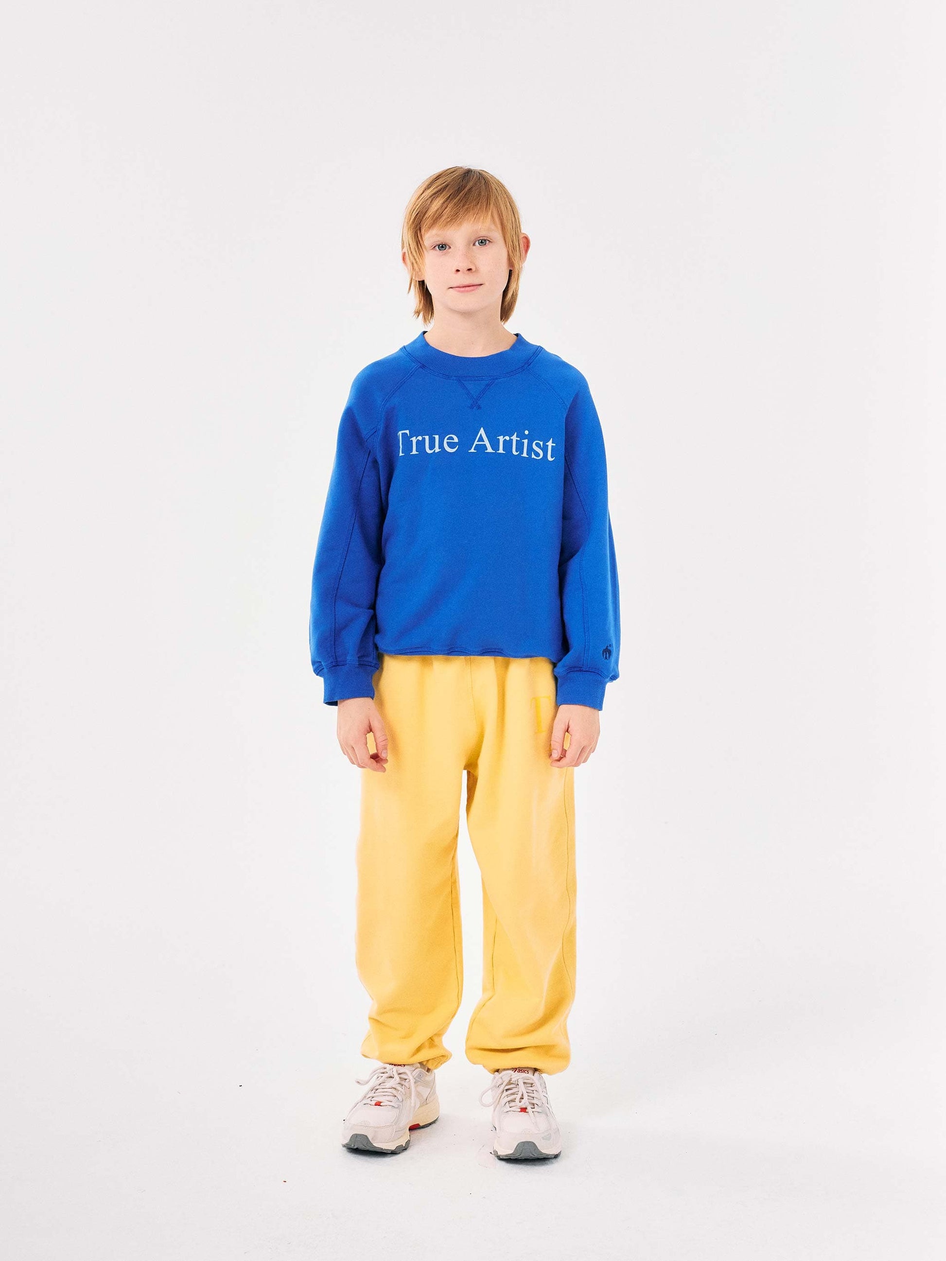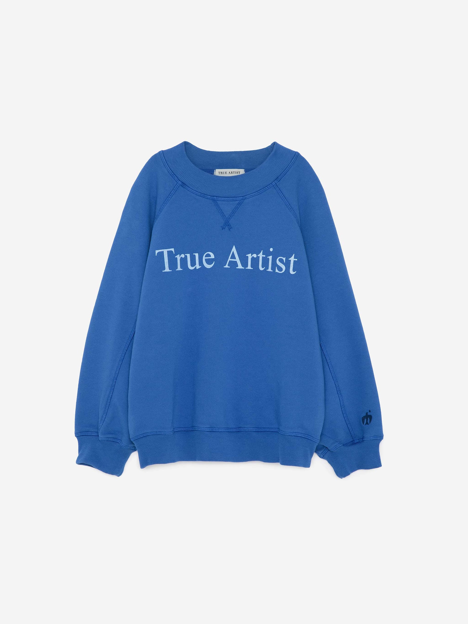 Sweatshirt nº01 in Sapphire Blue is made of 98% bci cotton and 2% elastane fleece and has our lettered logo printed on the front. It is designed with ranglan sleeves, ribbed at cuffs and bottom, and has our bird logo embroidered on the sleeve. It has a loose fit. Made in Portugal.