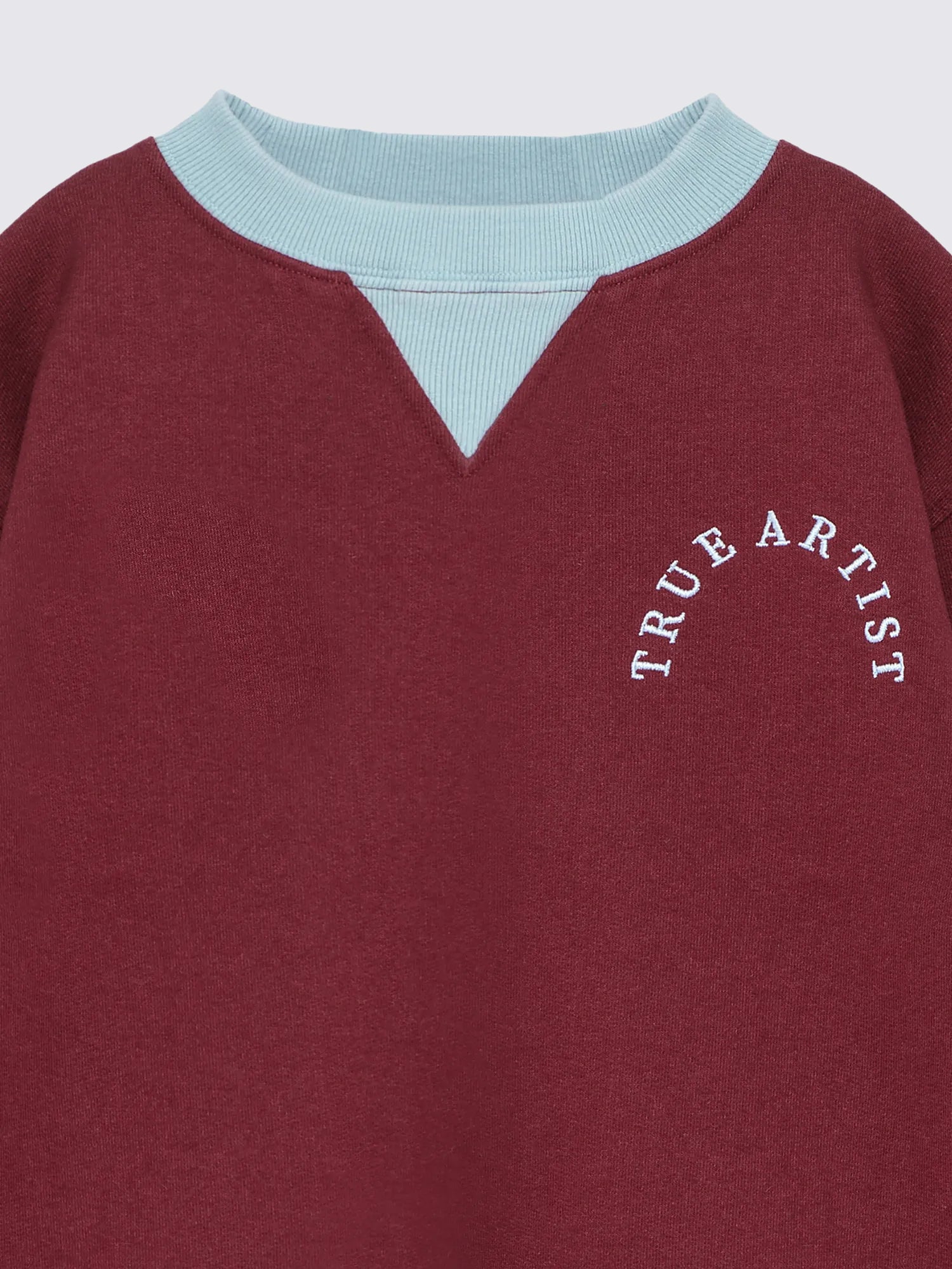 Sweatshirt nº09 in Burgundy Red is made of 98% cotton and 2% elastane fleece and it features a contrast ribbed collar and embroidery on the chest. It is designed with round neck, dropped shoulders and rib on tone at cuffs and bottom. It has a loose fit. Made in Portugal.