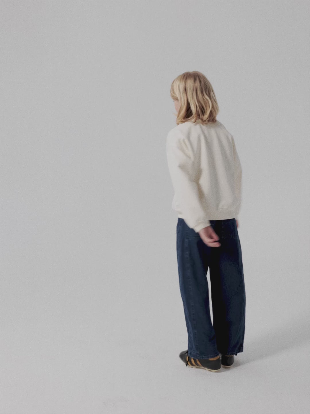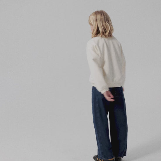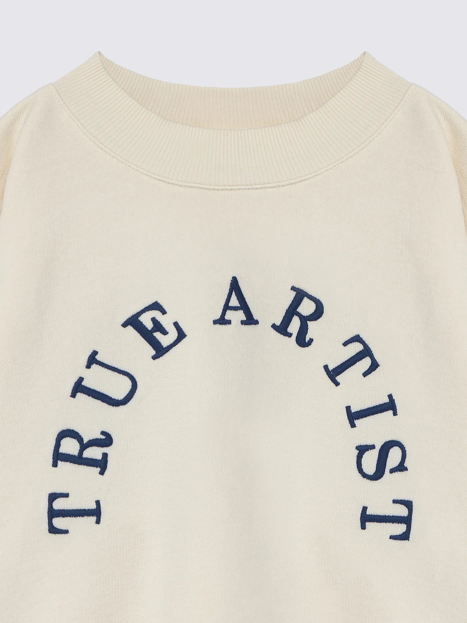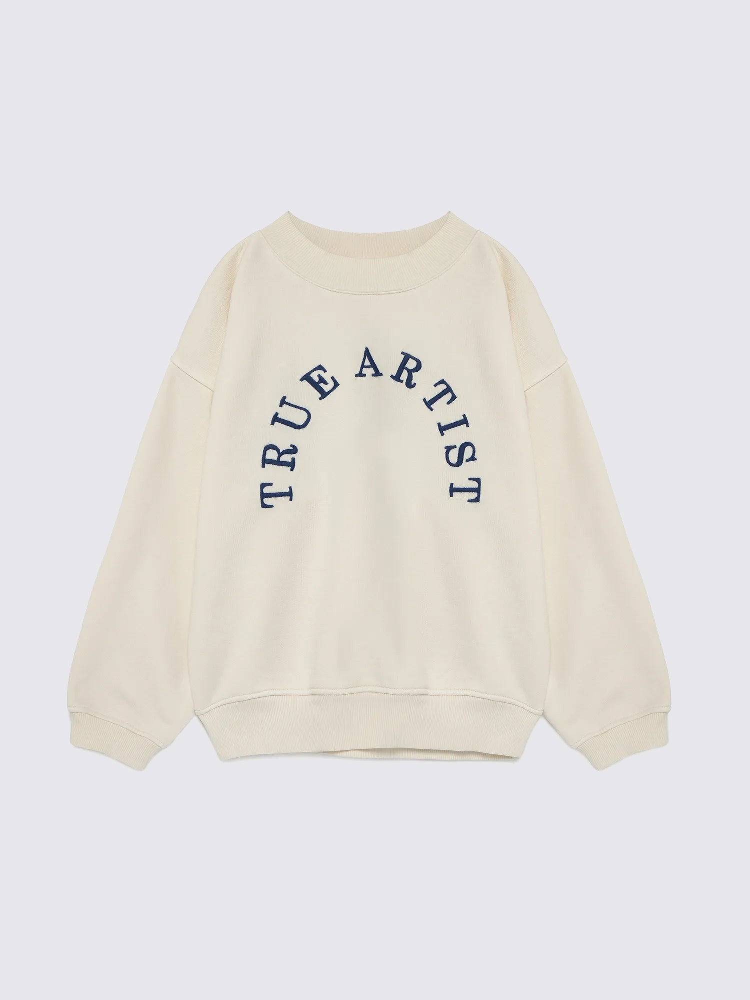 Sweatshirt nº10 in Ivory White is made of 98% organic cotton and 2% elastane fleece. It features a True Artist embroidery in contrast navy on the front and it is designed with round ribbed neck, dropped shoulders, and rib at cuffs and bottom. It has a loose fit. Made in Spain.
