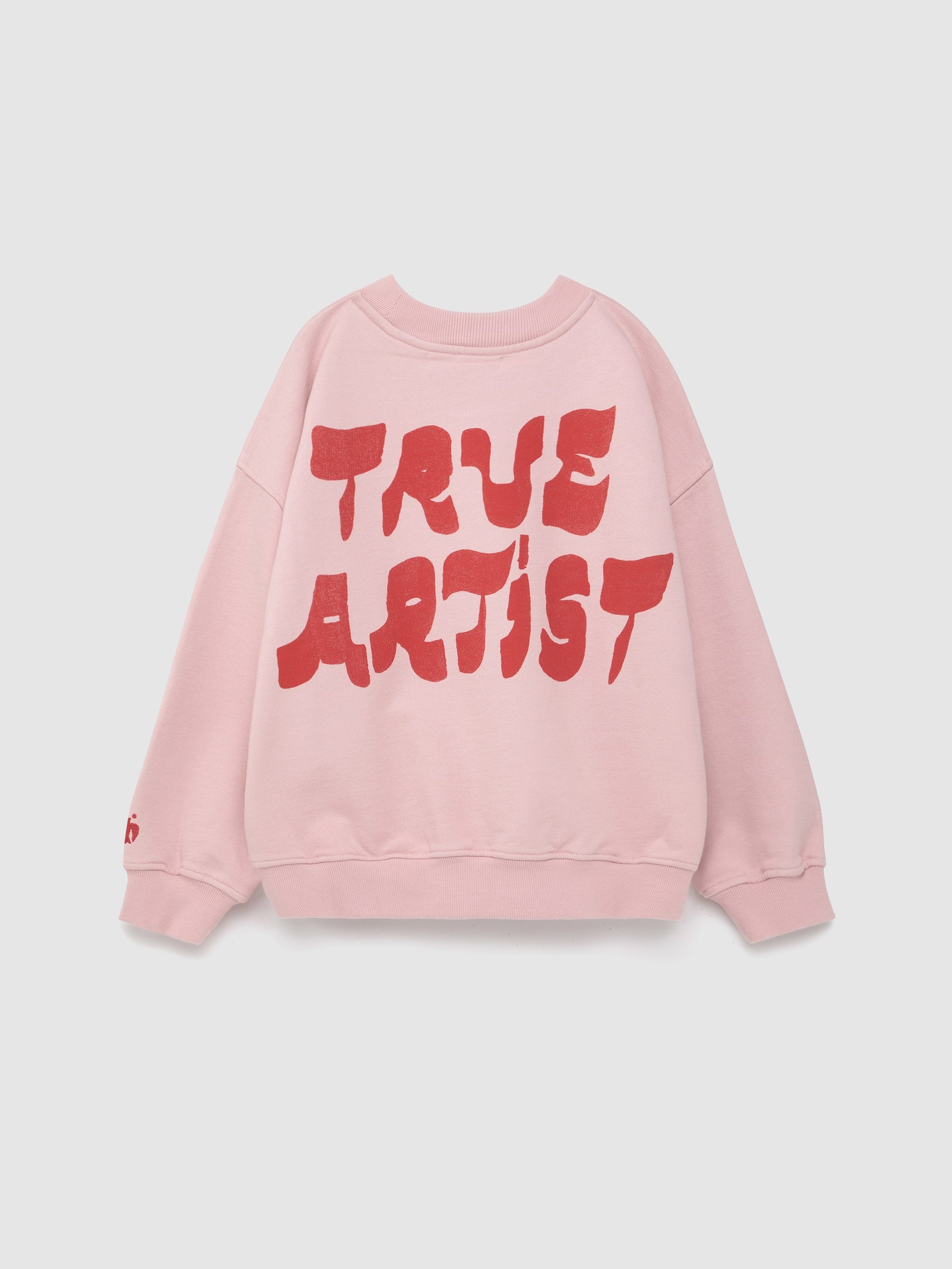 Sweatshirt nº11 in Cameo Pink is made of 98% organic cotton and 2% elastane fleece. It features a seasonal True Artist print at the back and a small bird embroidery on the front. It is designed with round ribbed neck, dropped shoulders, and rib at cuffs and bottom. It has a loose fit. Made in Portugal.