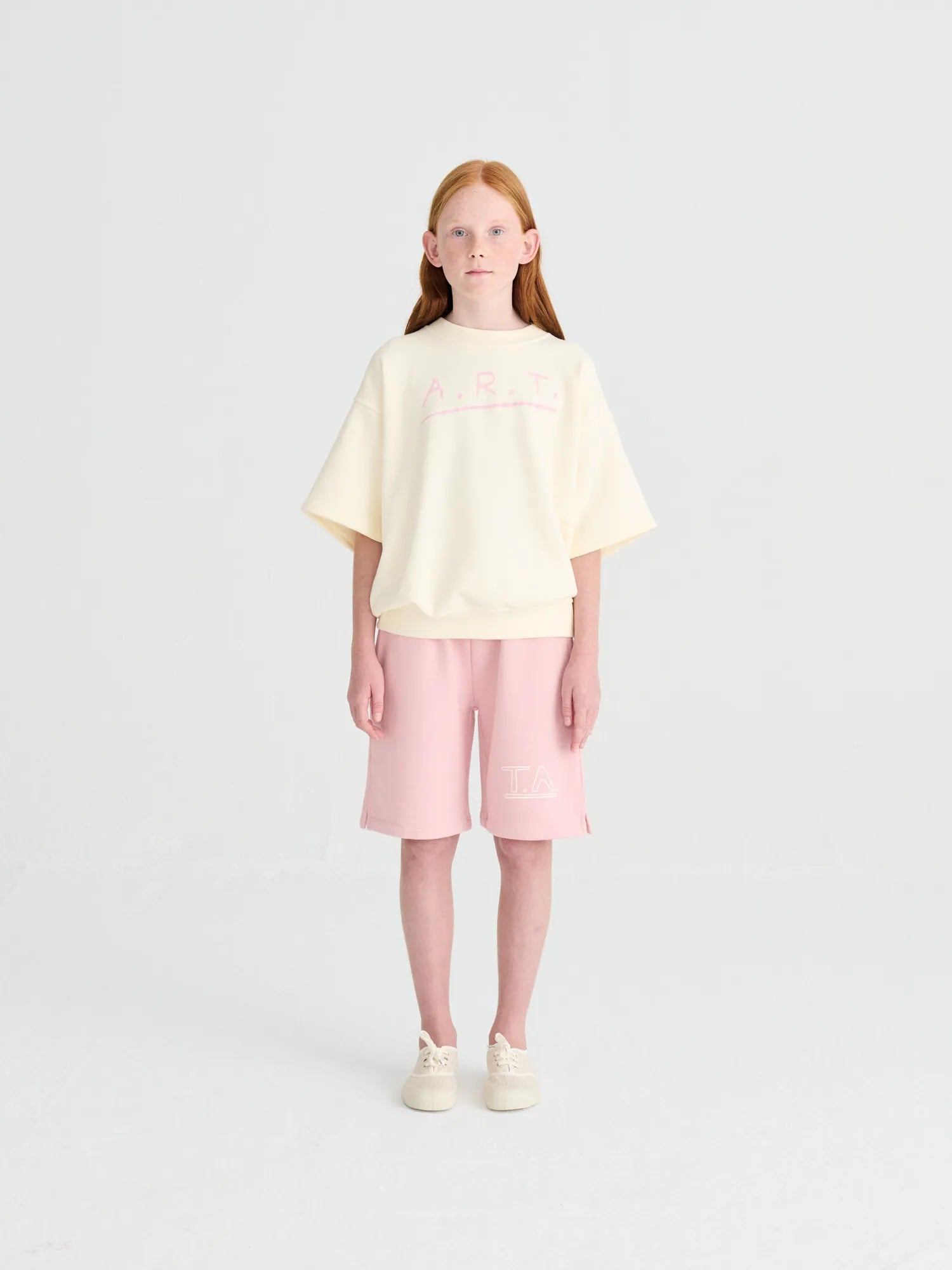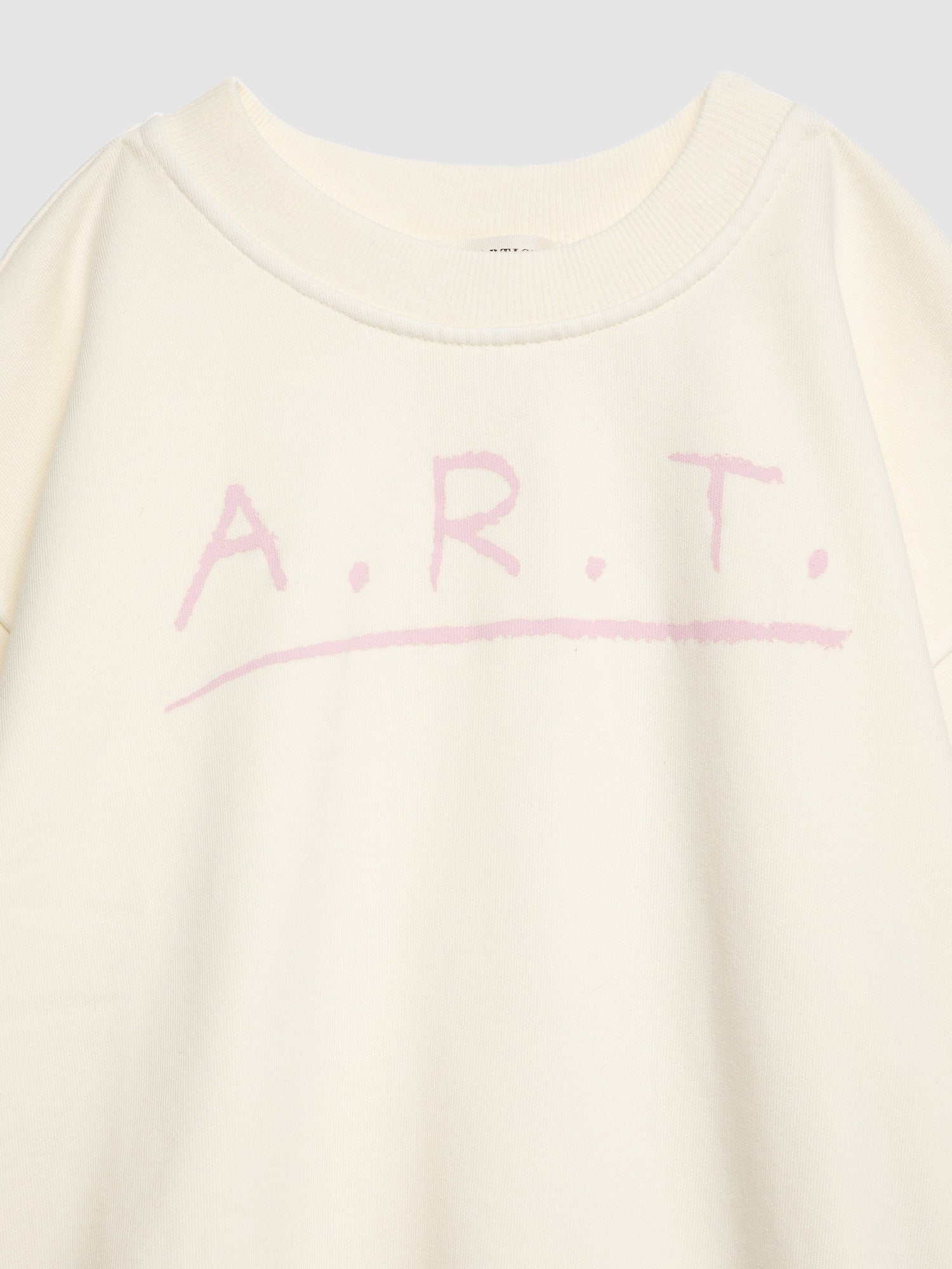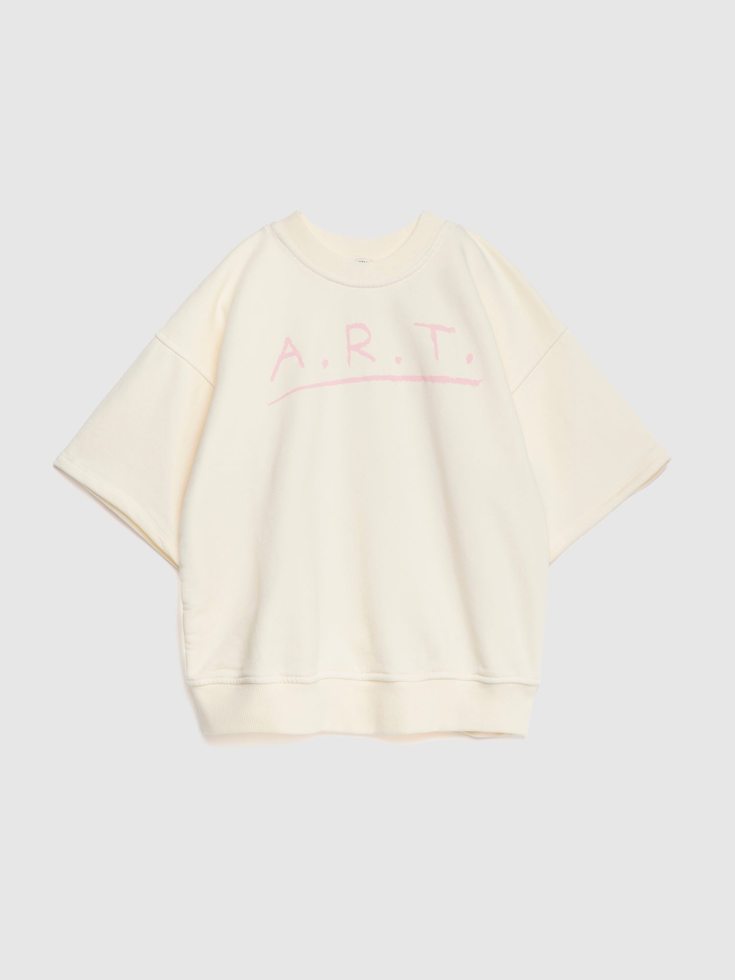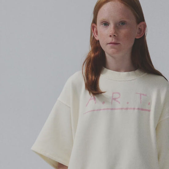 Sweatshirt nº07 in Cannoli Cream is made of 98% organic cotton and 2% elastane fleece. It features our seasonal A.R.T. print on the front and it is designed with round ribbed neck, dropped shoulders, and rib at cuffs and bottom. It has a loose fit. Made in Spain.