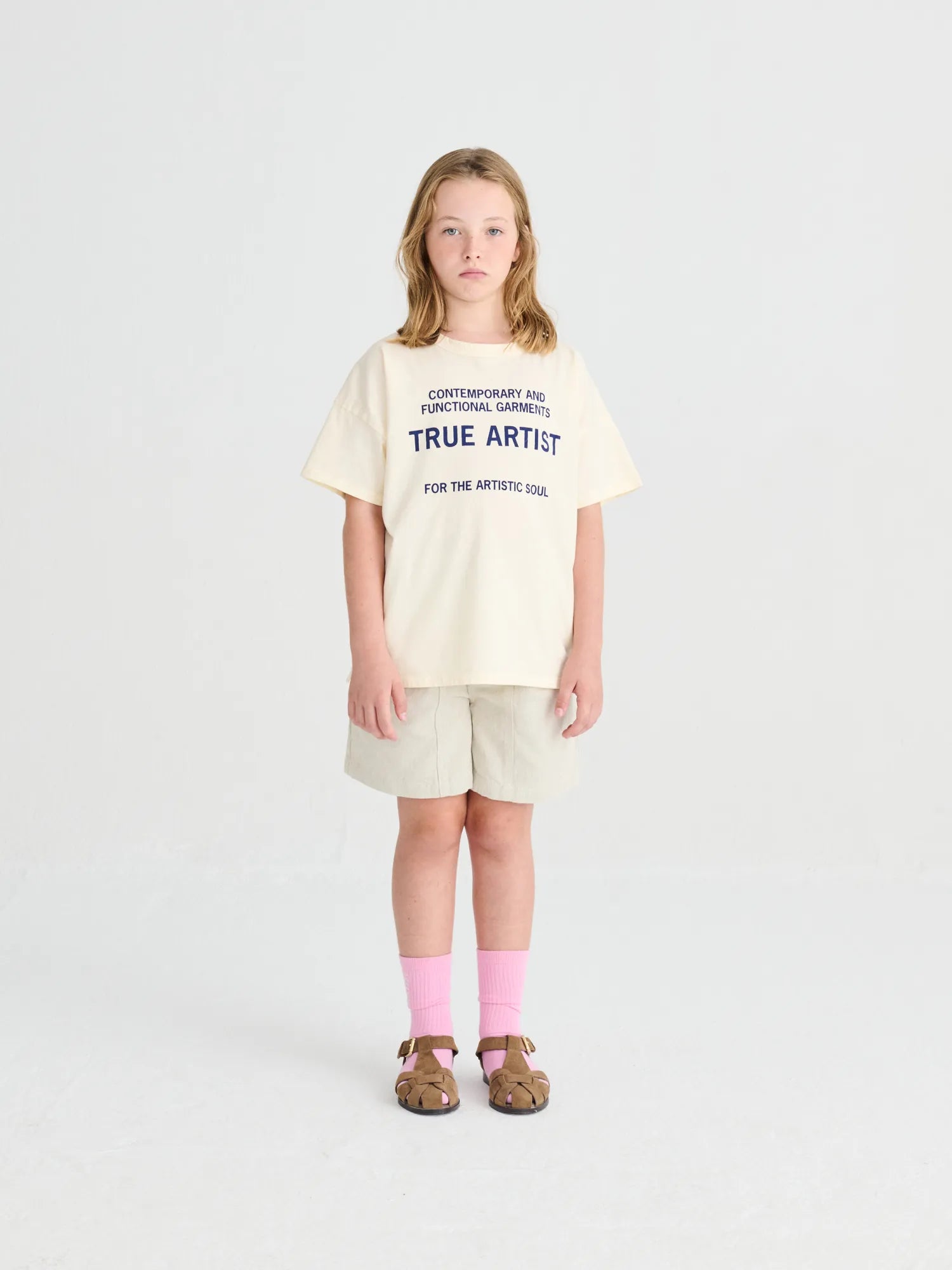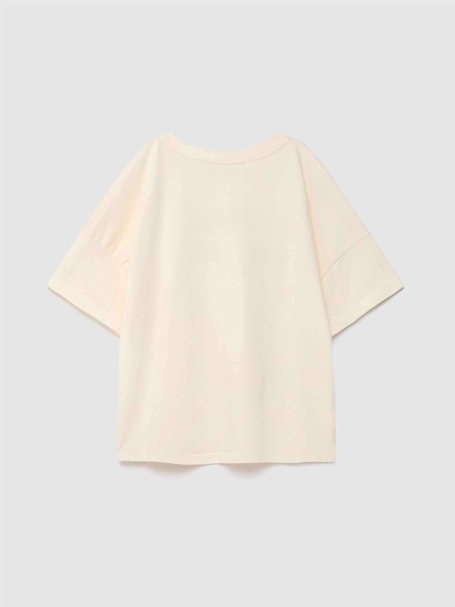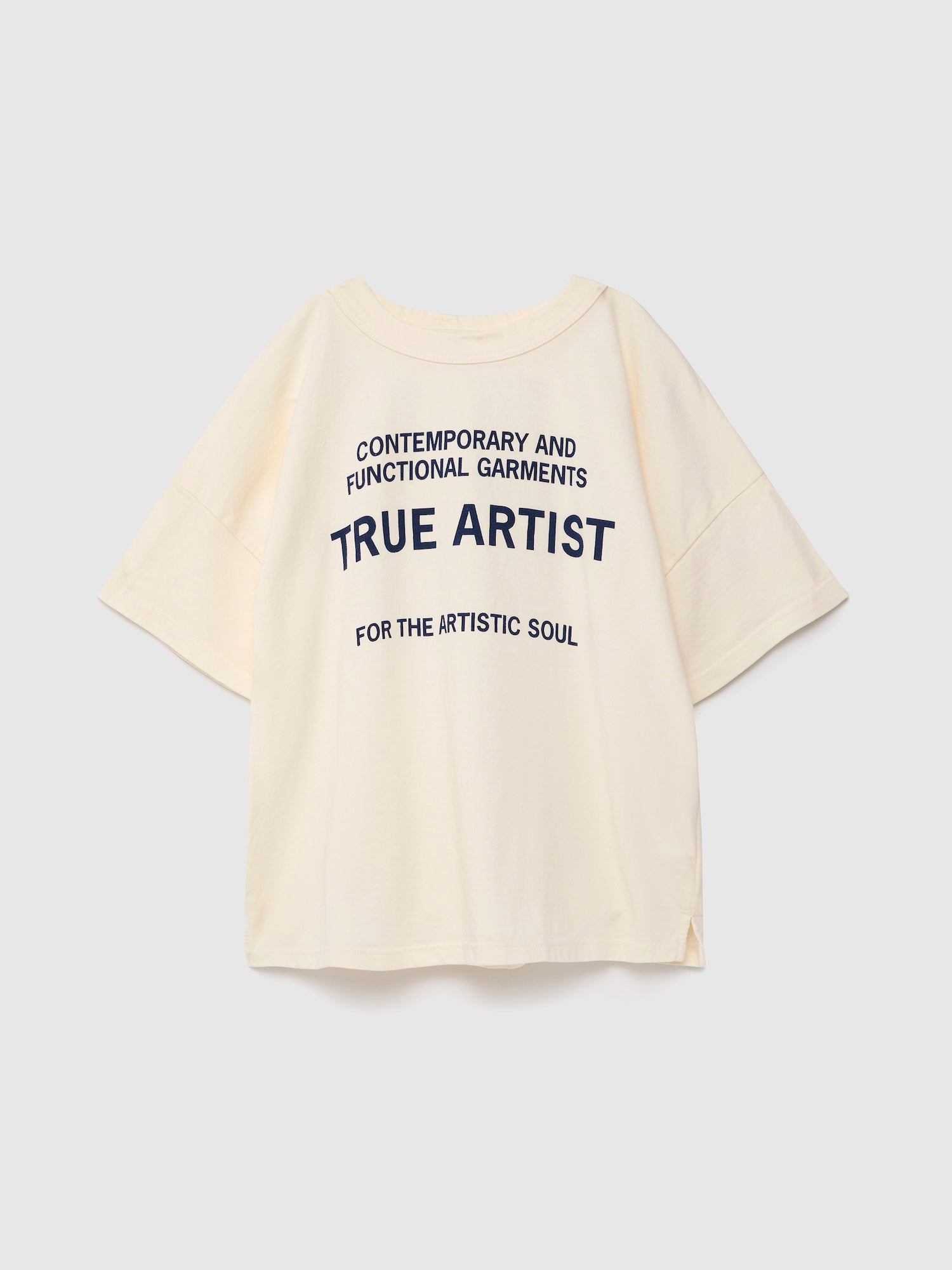 T-shirt nº01 in Cannoli Cream is made of 100% organic cotton and it features our brand slogan printed on the front. It is designed with dropped shoulders, round neck and short sleeves. It has a boxy fit. Made in Spain.