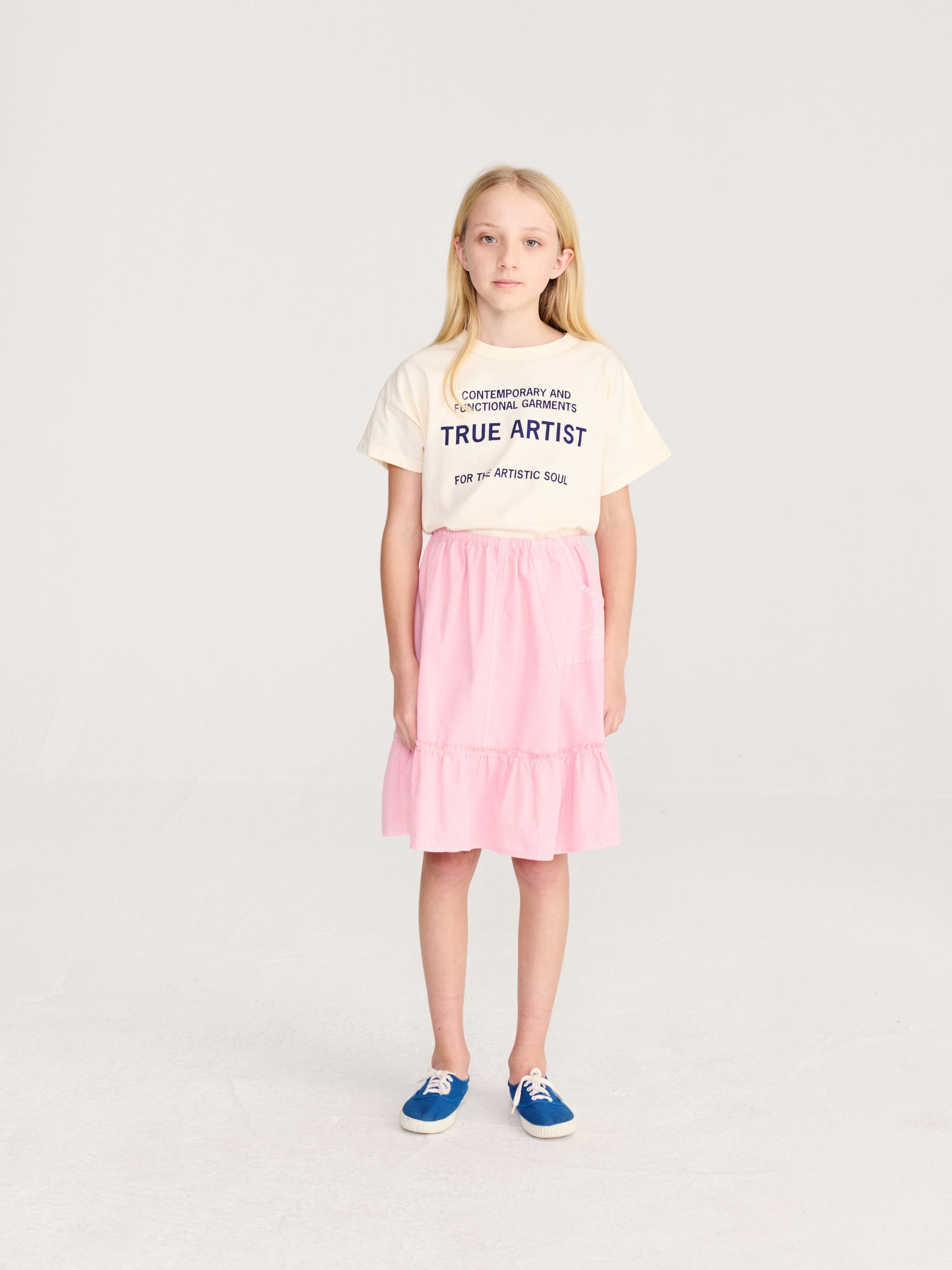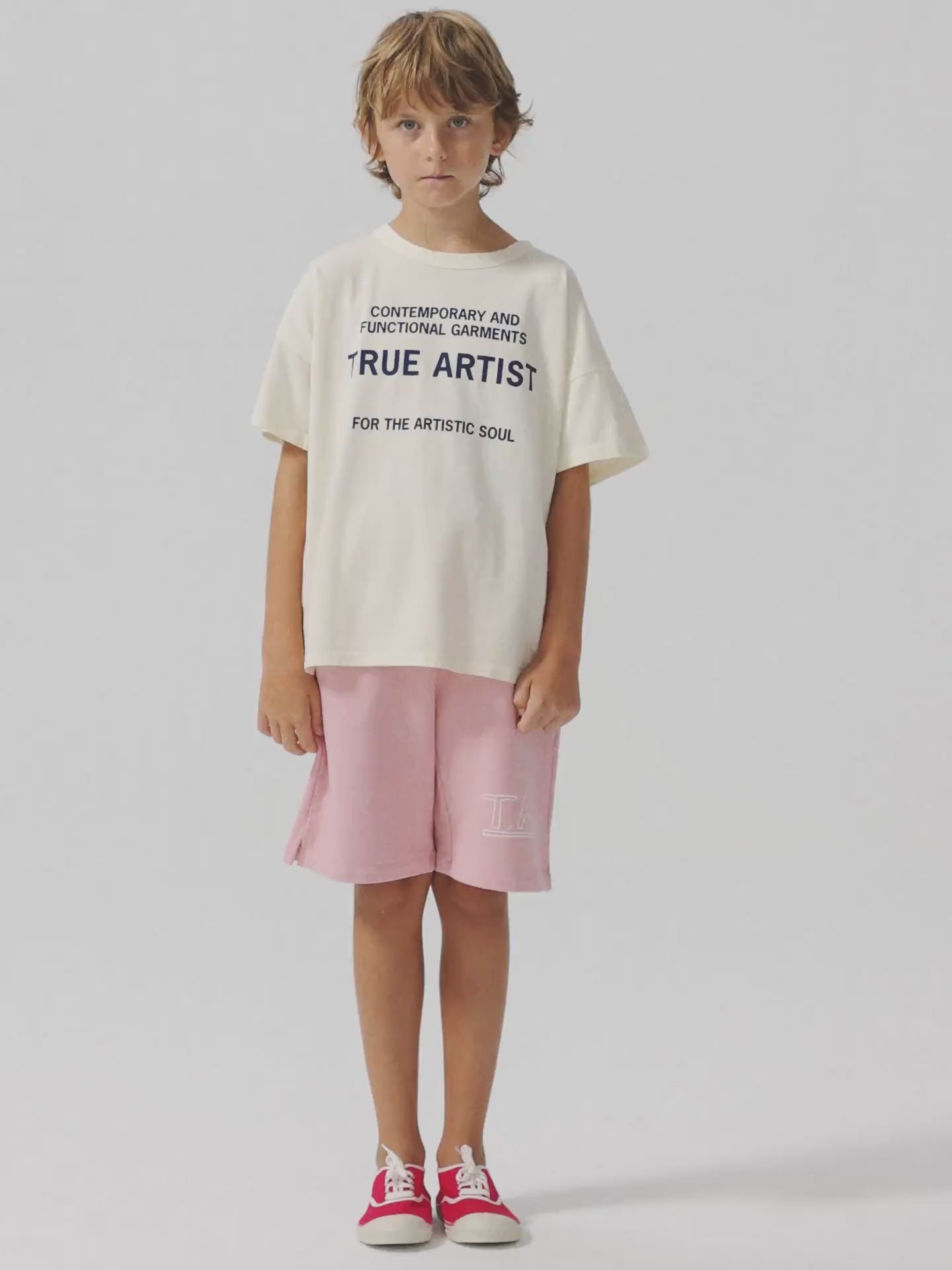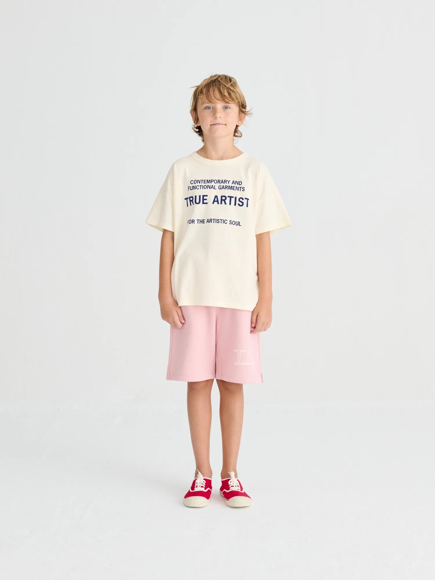T-shirt nº01 in Cannoli Cream is made of 100% organic cotton and it features our brand slogan printed on the front. It is designed with dropped shoulders, round neck and short sleeves. It has a boxy fit. Made in Spain.
