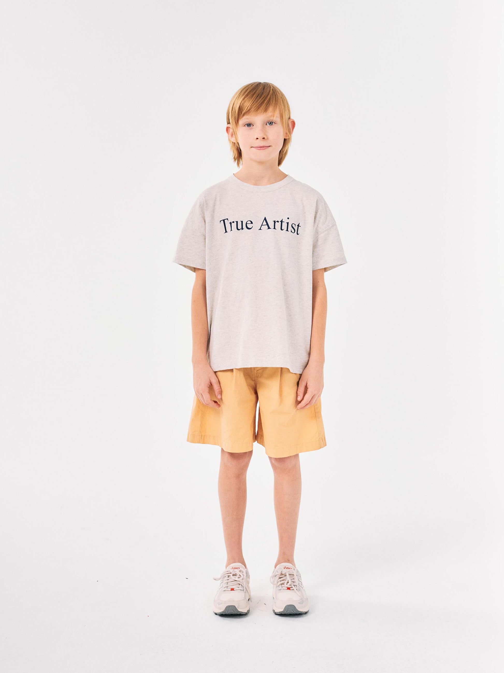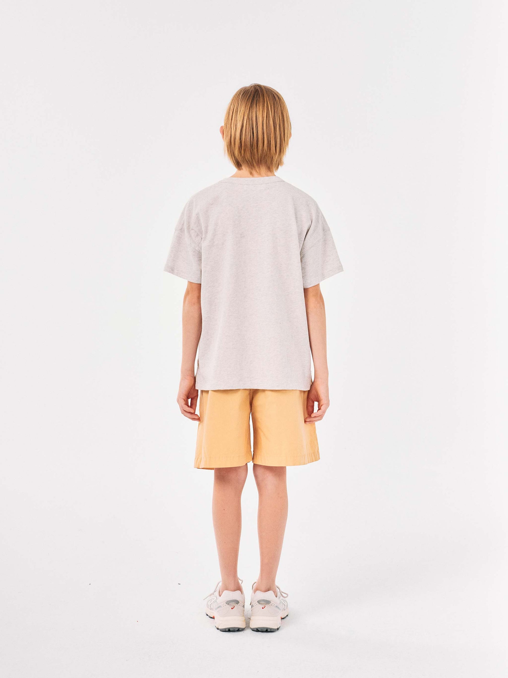 T-shirt nº01 in Melange Grey is made of 100% cotton and features our lettered logo printed on the front. It is designed with dropped shoulders, round neck and short sleeves. It has a boxy fit. Made in Portugal.