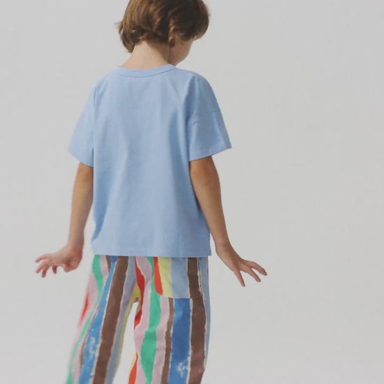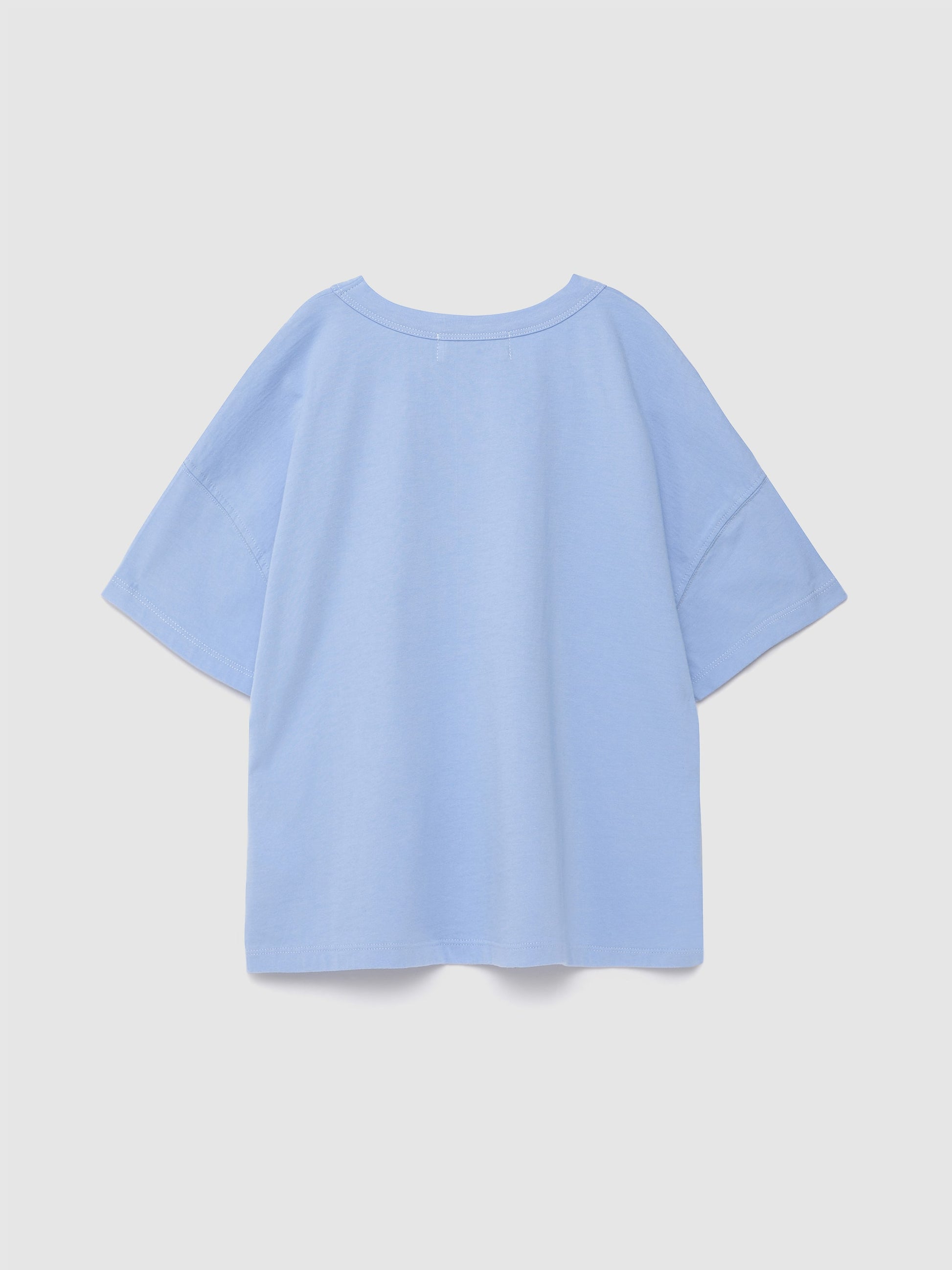 T-shirt nº01 in Skyride Blue is made of 100% organic cotton and has a seasonal interpretation of True Artist print on the front. It is designed with dropped shoulders, round neck and short sleeves. It has a boxy fit. Made in Portugal.
