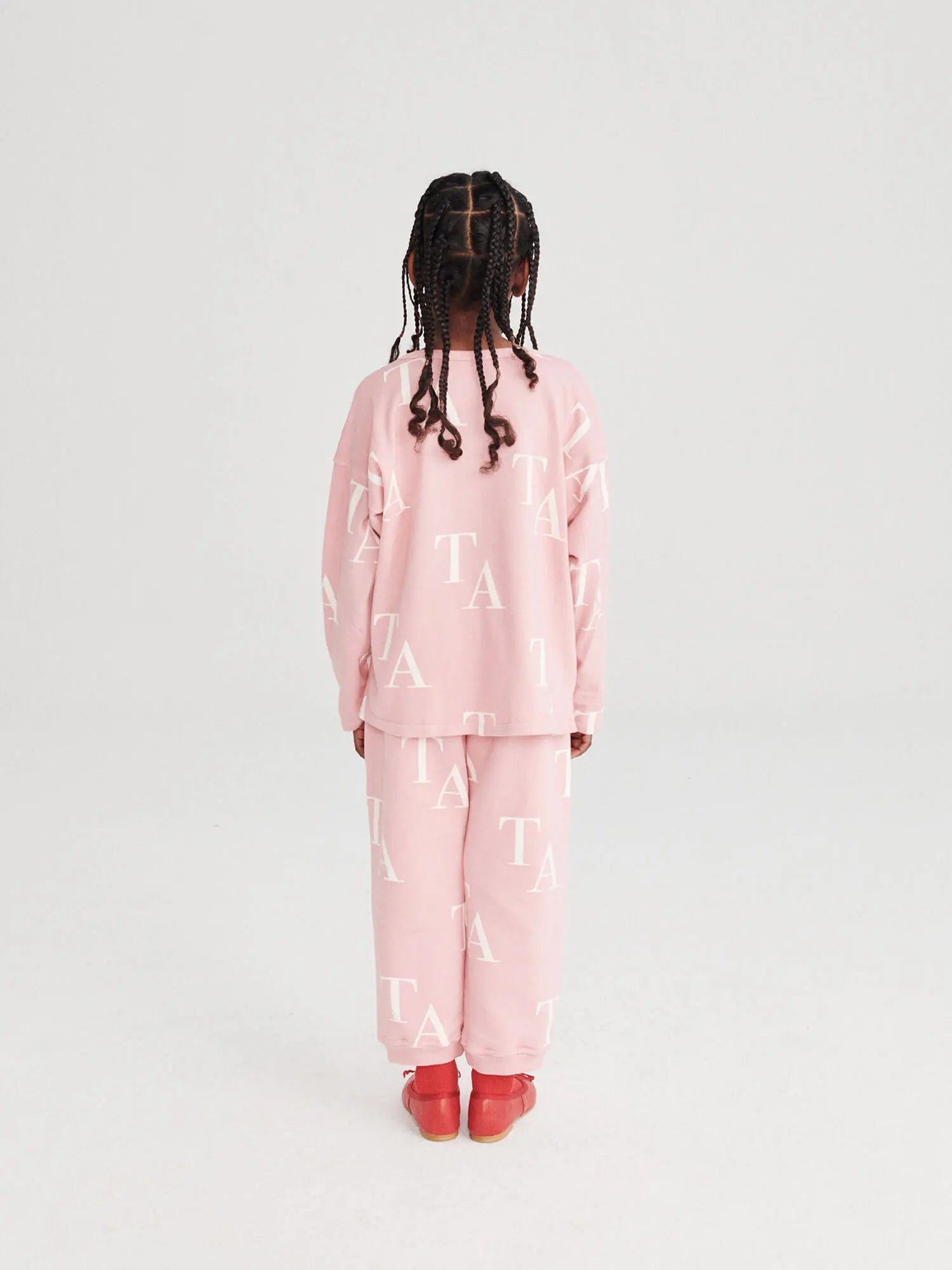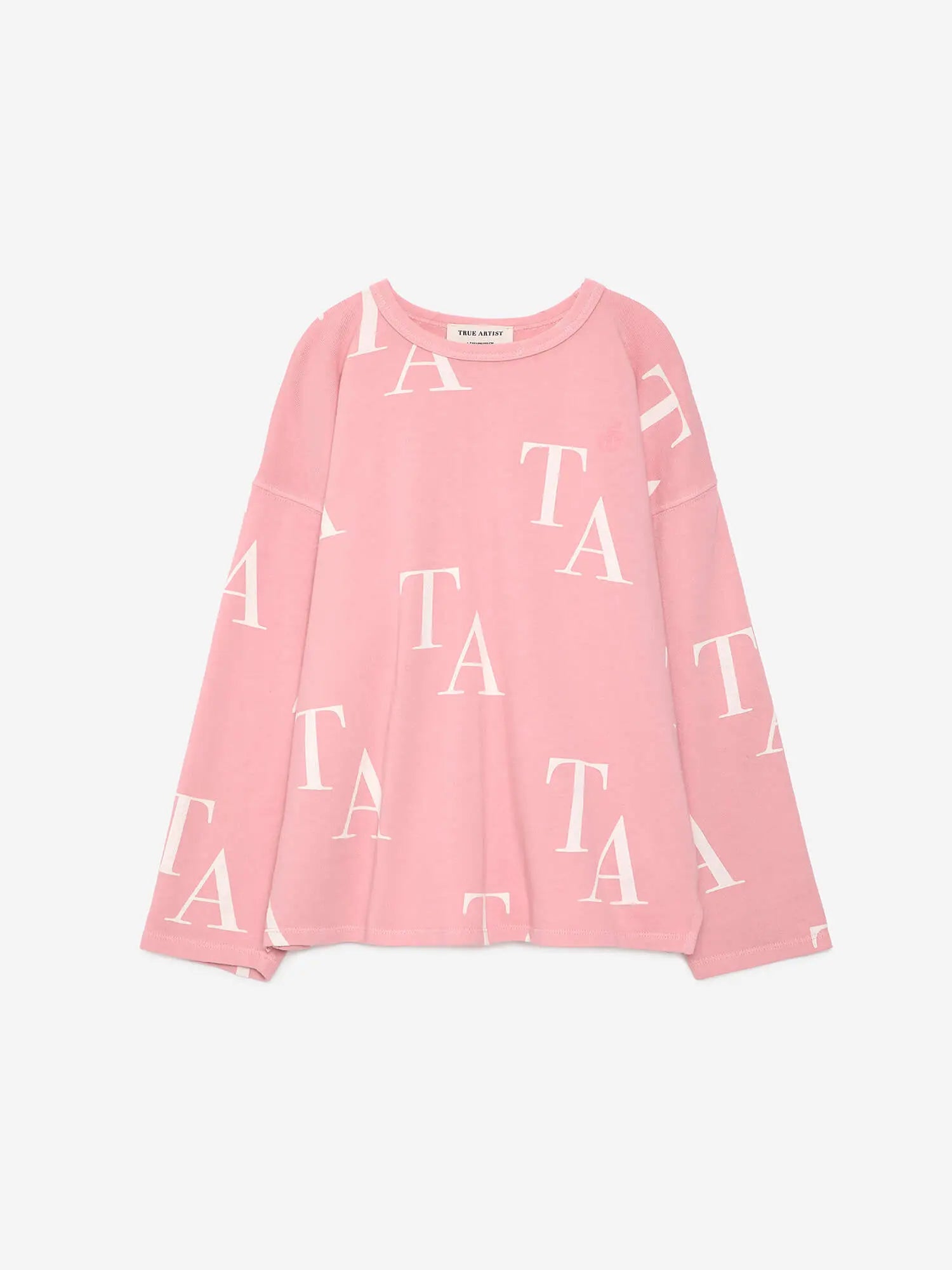 T-shirt nº02 in Bubble Pink is made in heavy knit 100% organic cotton and it features an allover print of our iconic TA. It has our bird logo embroidered on the chest. It is designed with round neck and long sleeves. It has a loose fit. Made in Spain.