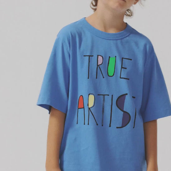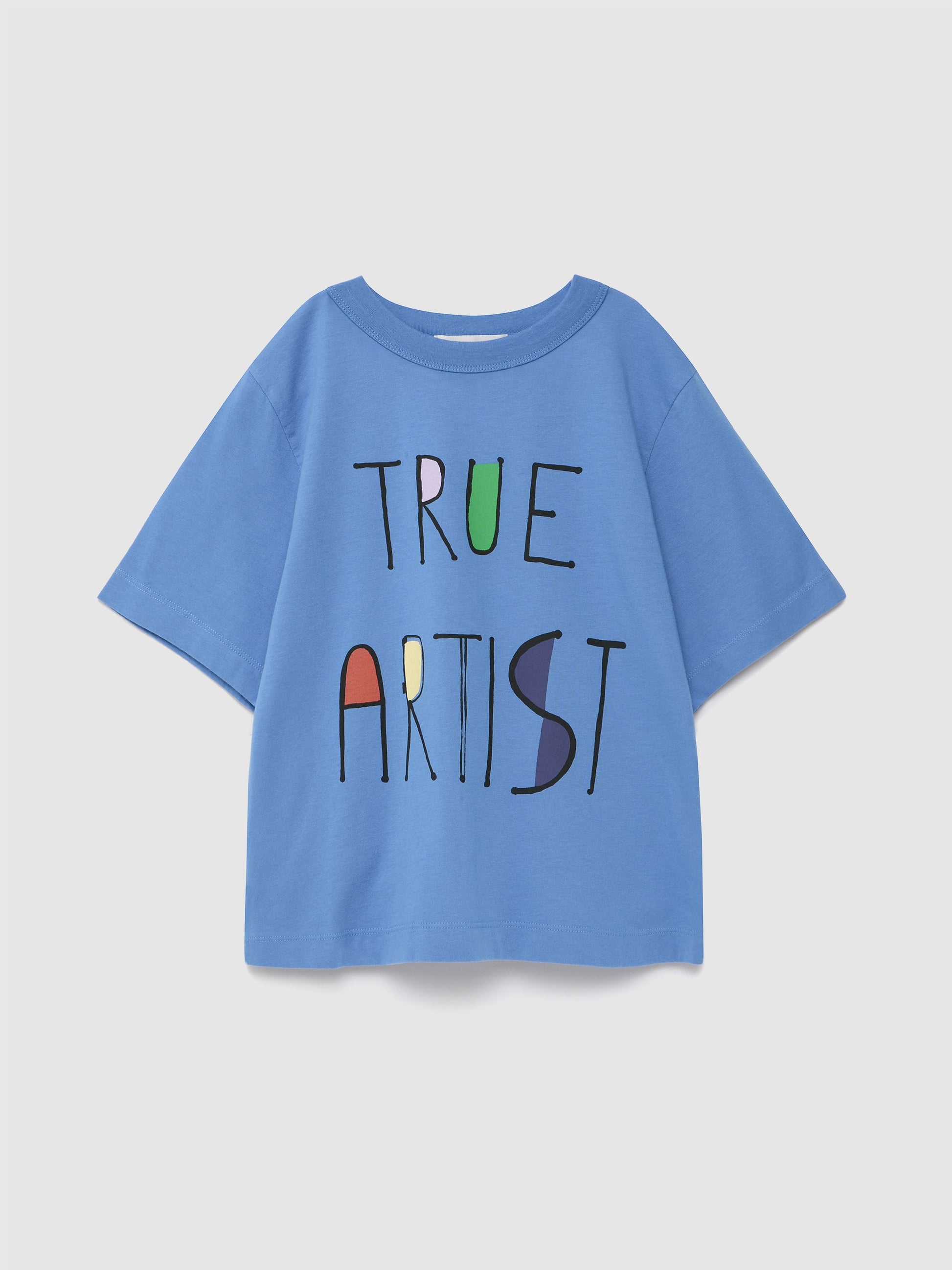 T-shirt nº05 in Campanula is made of 100% organic cotton and features a colorful True Artist lettered design on the front. This short sleeve t-shirt is designed with round neck and dropped shoulders. It has a relaxed fit. Made in Portugal.