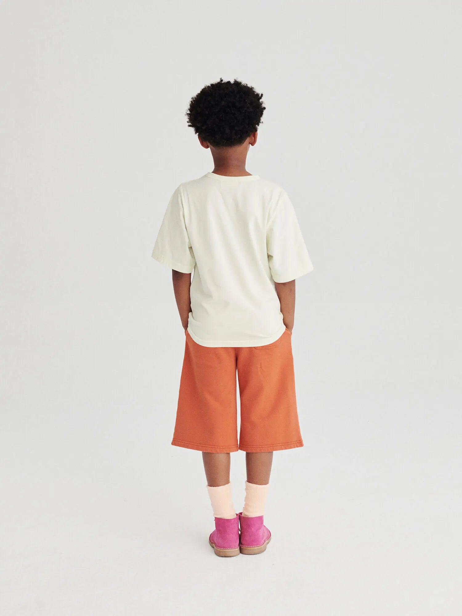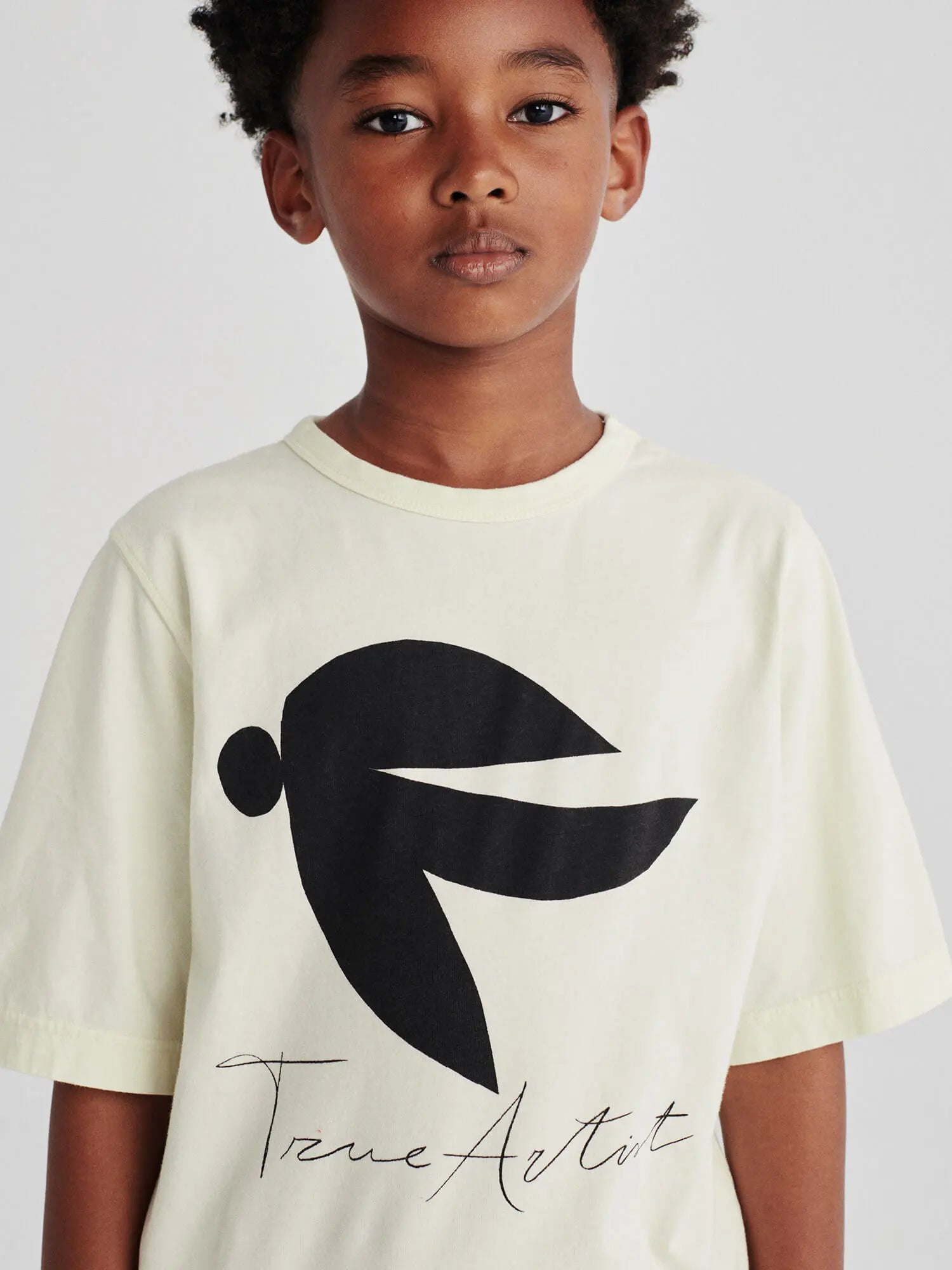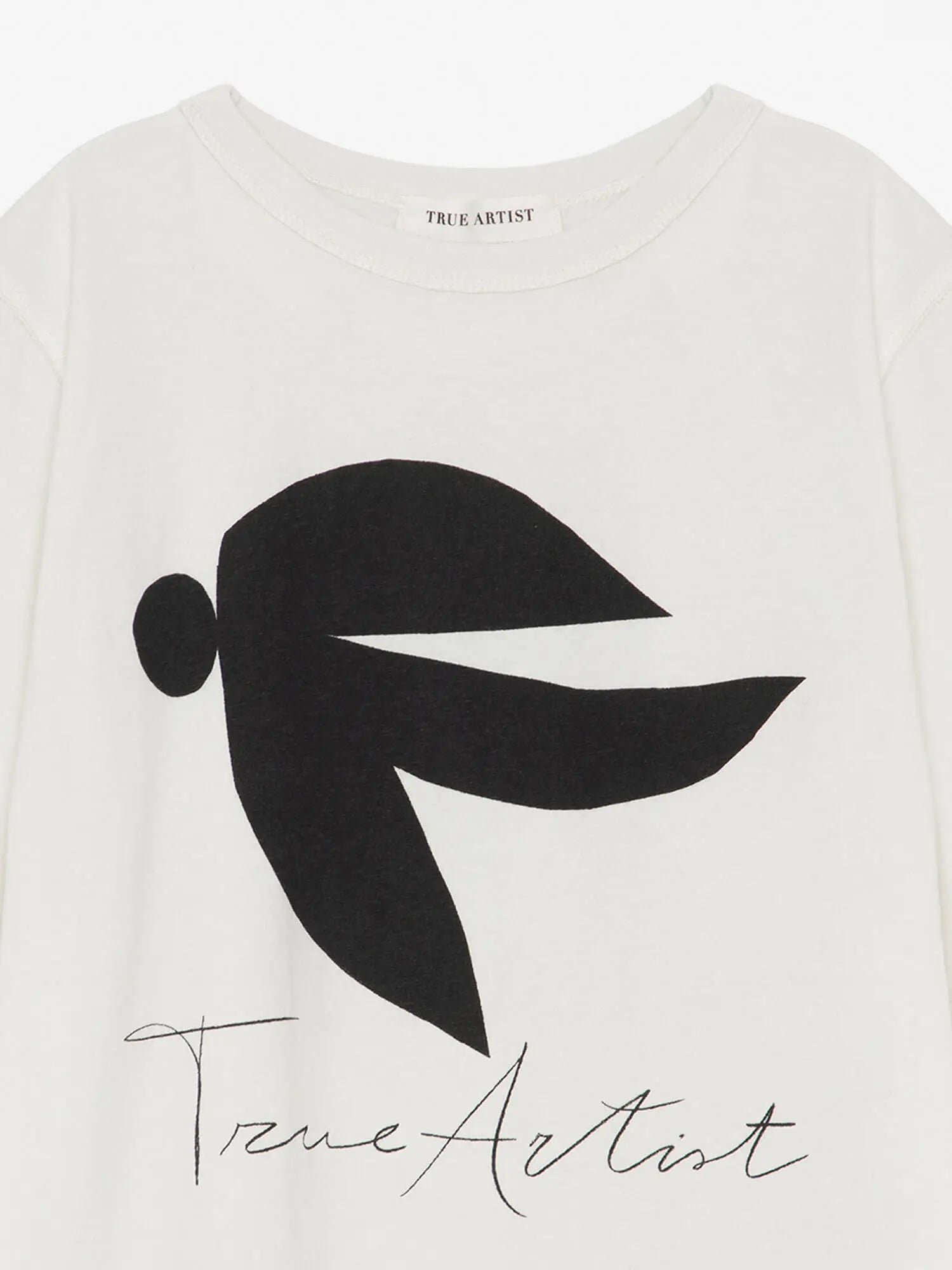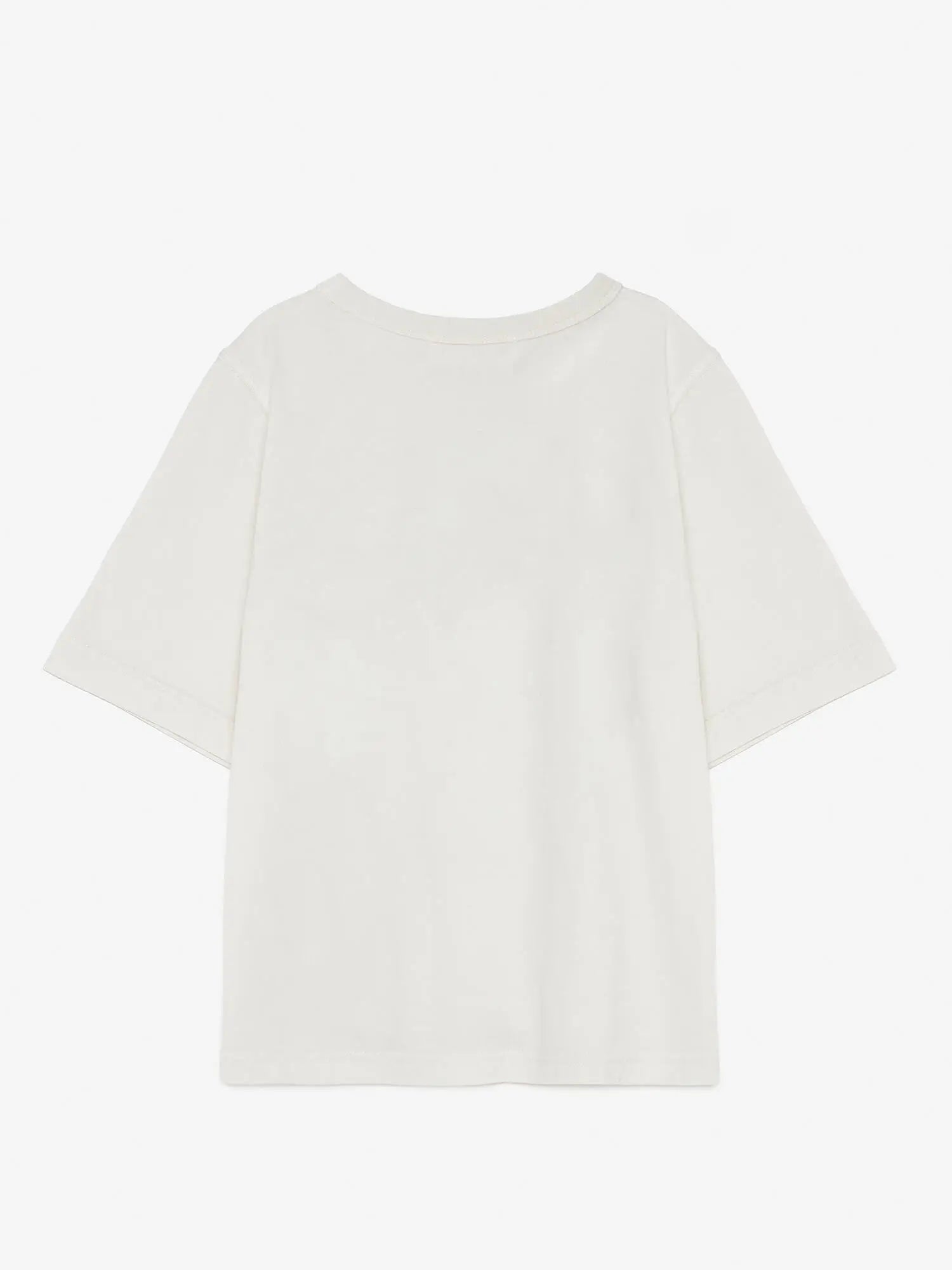 T-shirt nº05 in Ecru Cream is made of 100% organic cotton and features our seasonal textured bird logo printed on the front. It has a round neck, short sleeves and a relaxed fit. Made in Spain.
