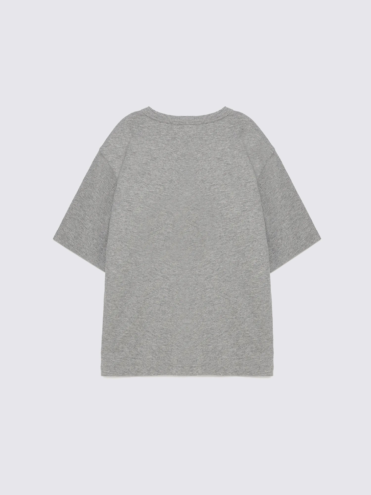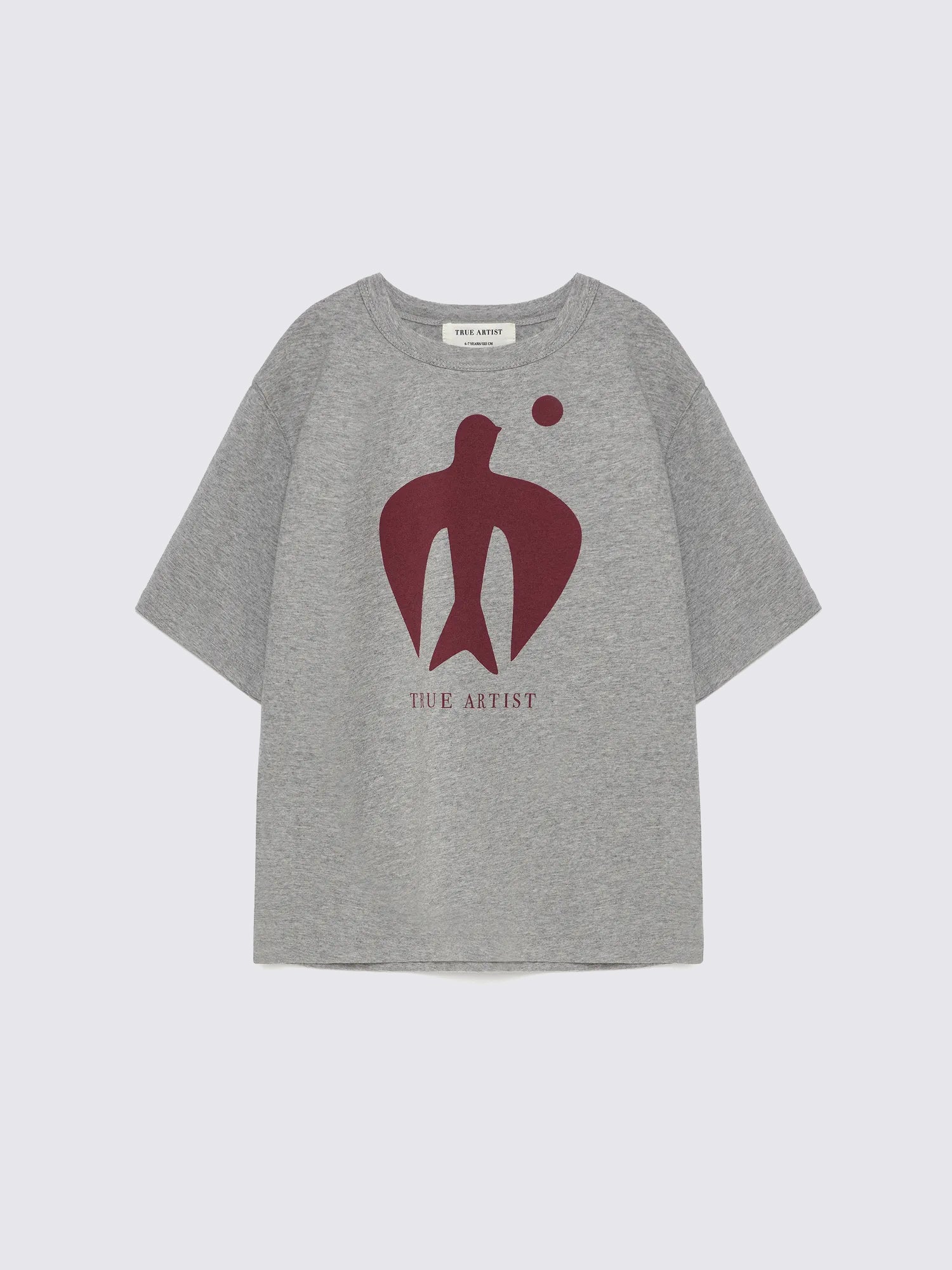 T-shirt nº05 in Melange Grey is made of 100% cotton and has our bird and logo printed on the front. It has a round neck, short sleeves and has a relaxed fit. Made in Portugal.