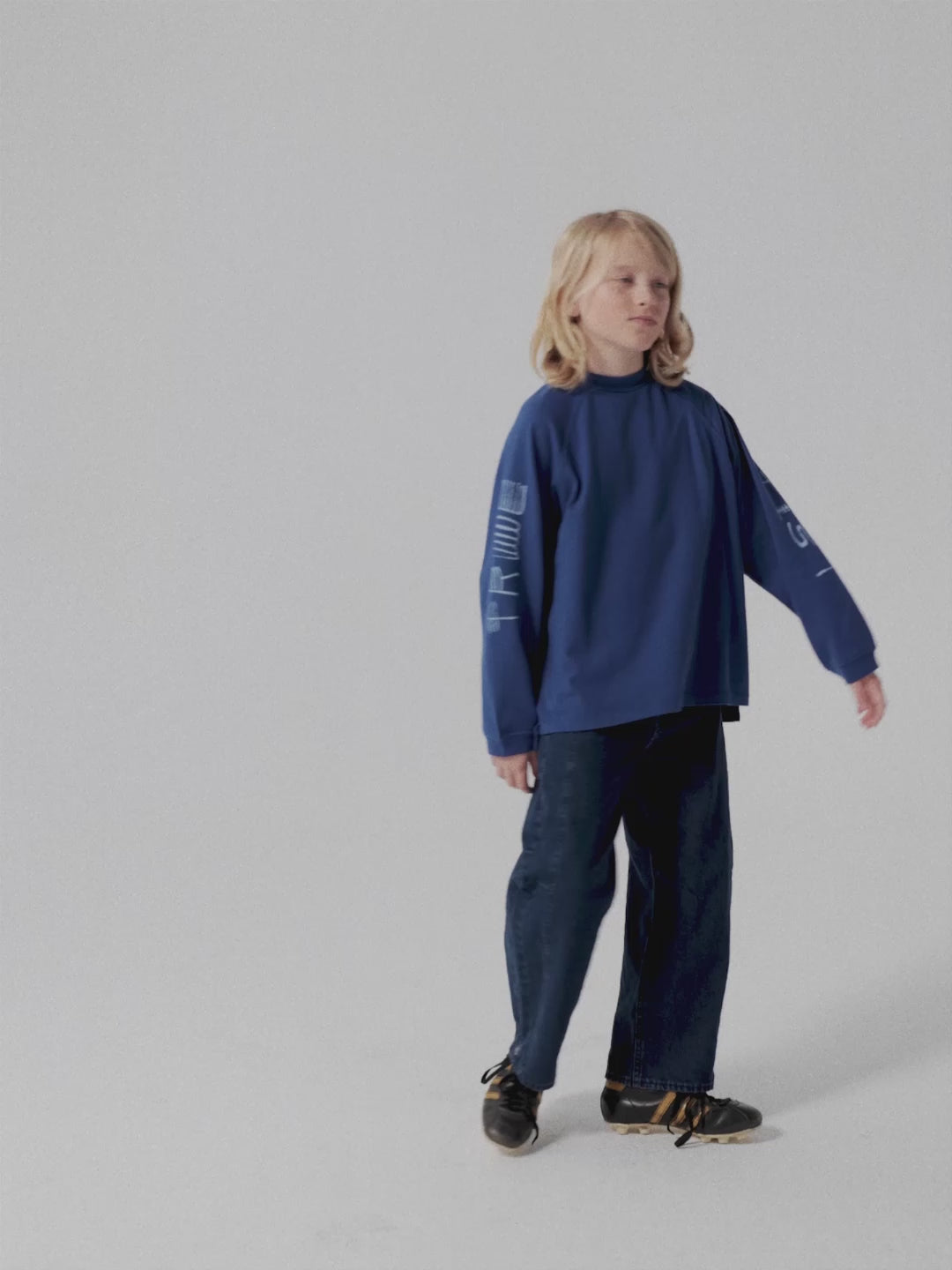 T-shirt nº12 in Blueprint is made of 100% organic high density cotton and features a True Artist seasonal print on the sleeves. It is designed with round neck, ranglan long sleeves and side slits. It has a loose fit. Made in Portugal.