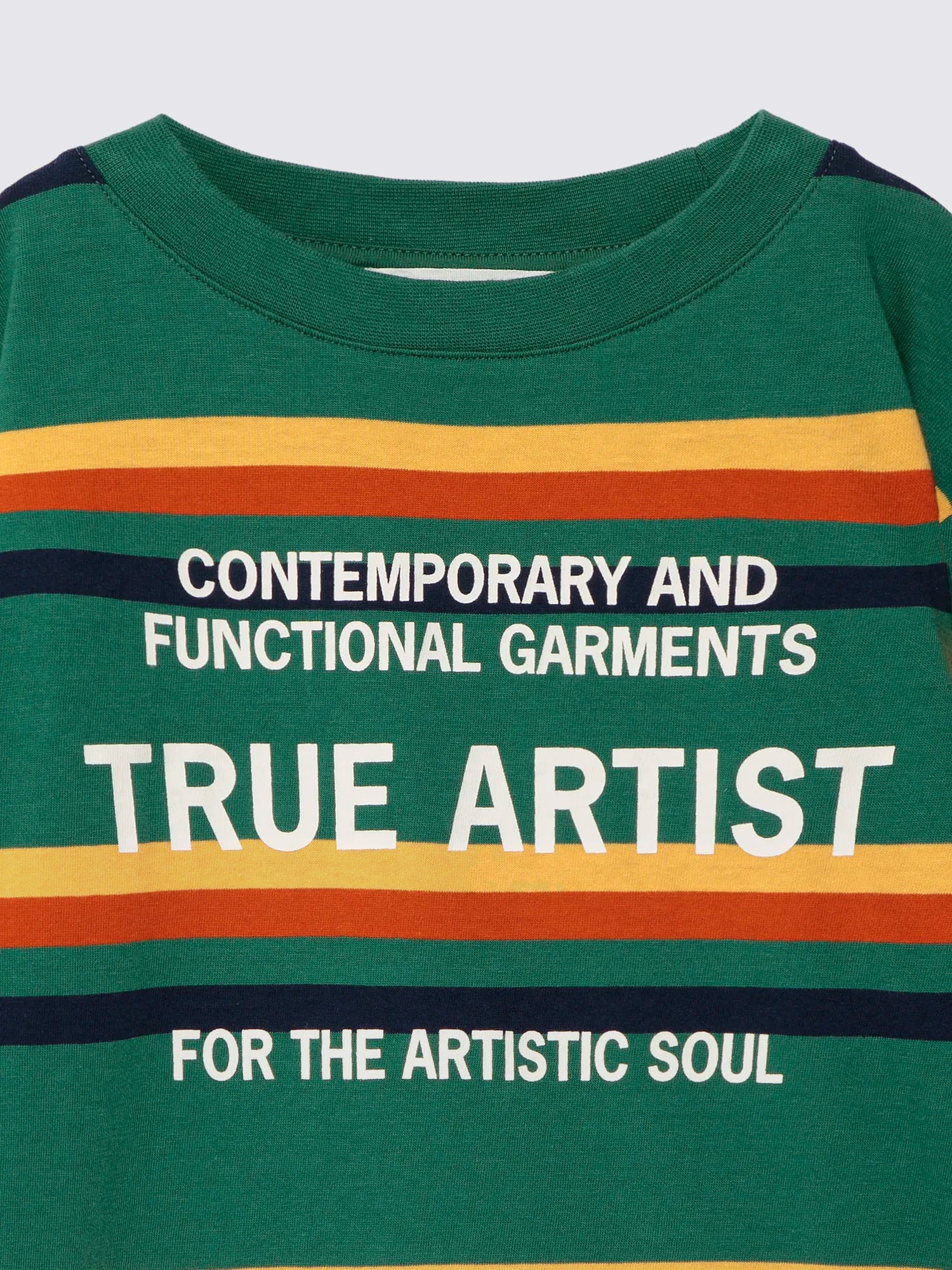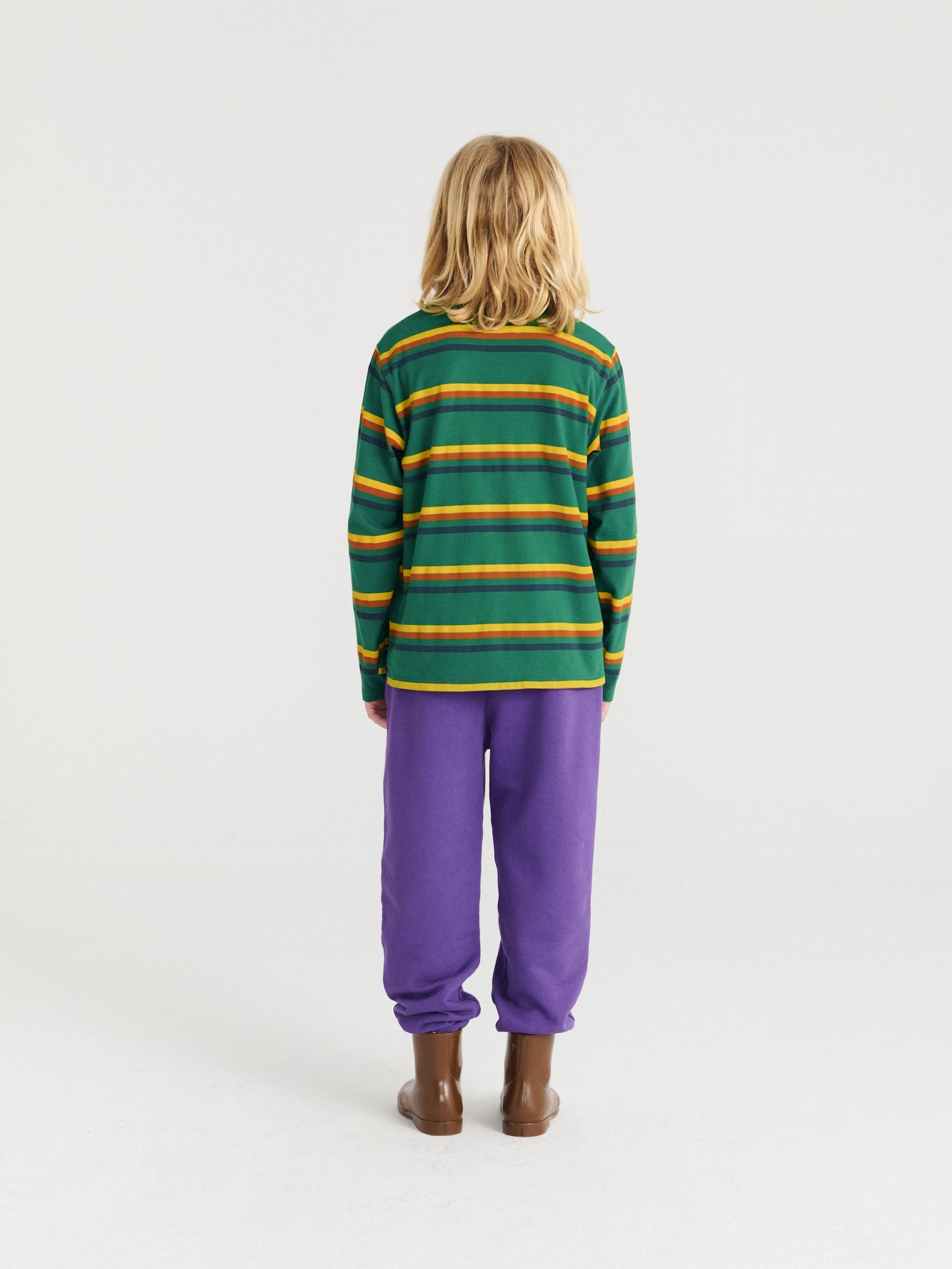T-shirt nº16 in Forest is made of 100% cotton. This yarn dyed striped t-shirt combines irregular stripes in 4 different colors and it features our brand slogan printed on the front. It is designed with round neck, long sleeves and dropped shoulders; it has a relaxed fit. Made in Portugal.