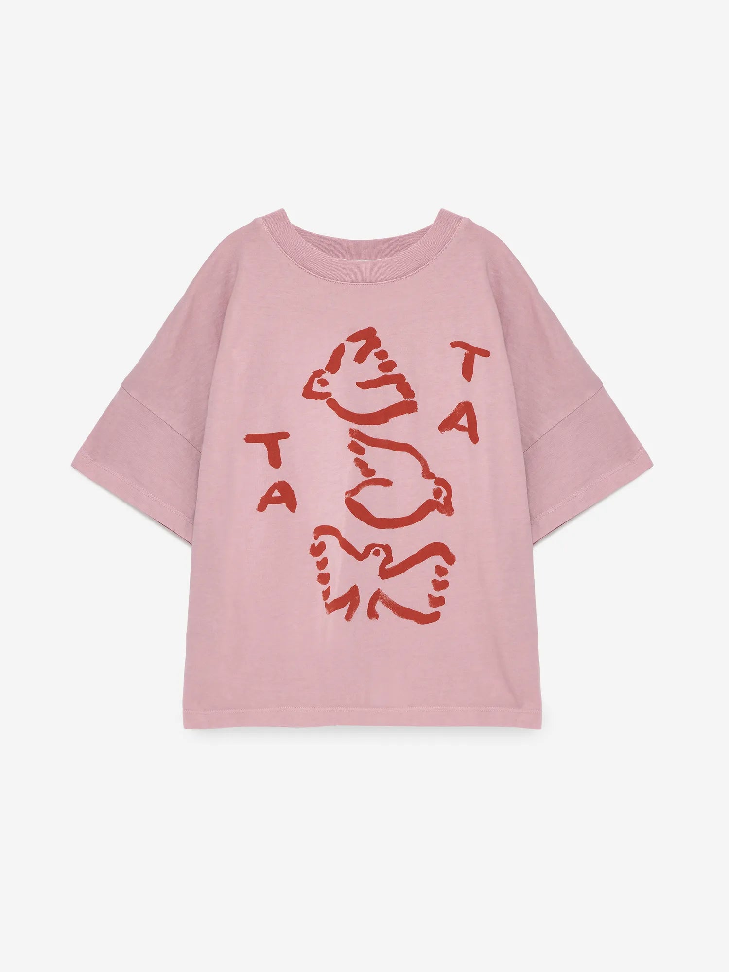 T-shirt nº17 in Dusty Pink is made of 100% organic cotton. This short sleeve t-shirt features a seasonal bird interpretation. It has a round neck and relaxed fit. Made in Spain.