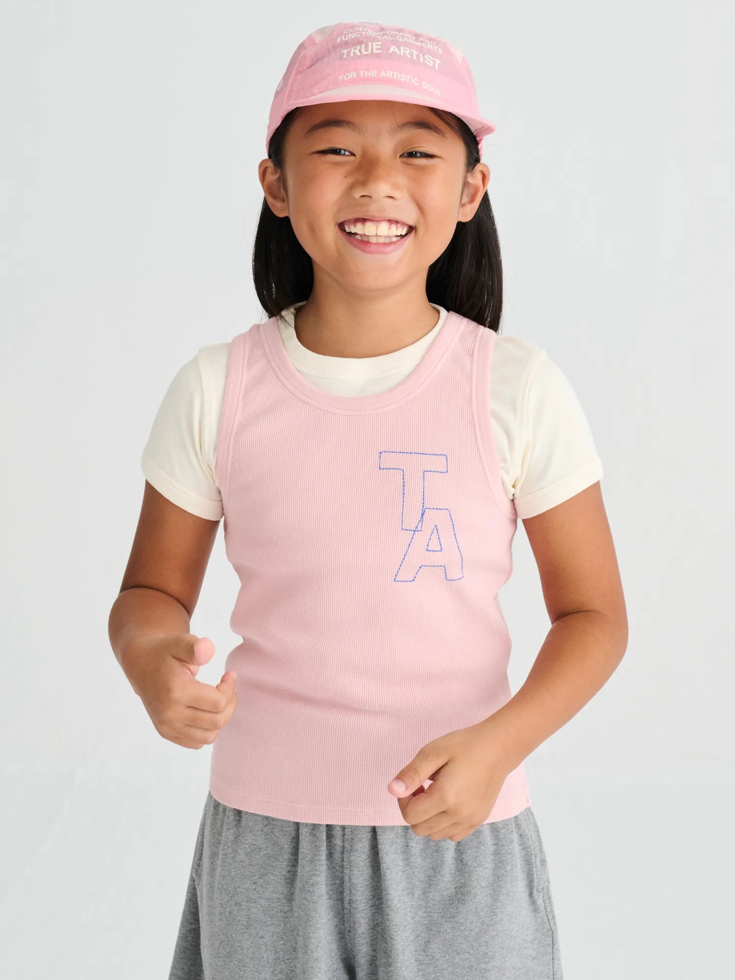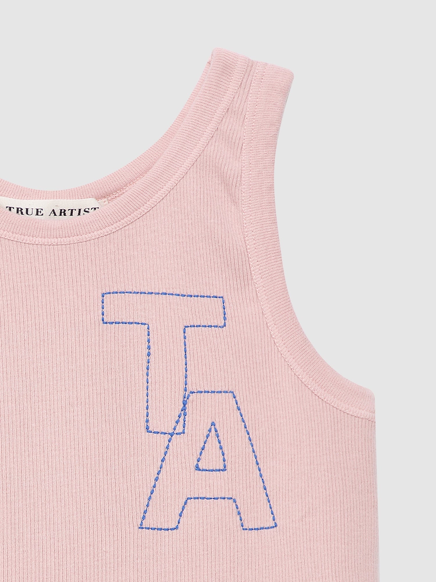 T-shirt nº20 in Cameo Pink is made of 96% cotton and 4% elastane ribbed fabric. This tank top features a big TA embroidery on the chest and has a slim fit. Made in Portugal.