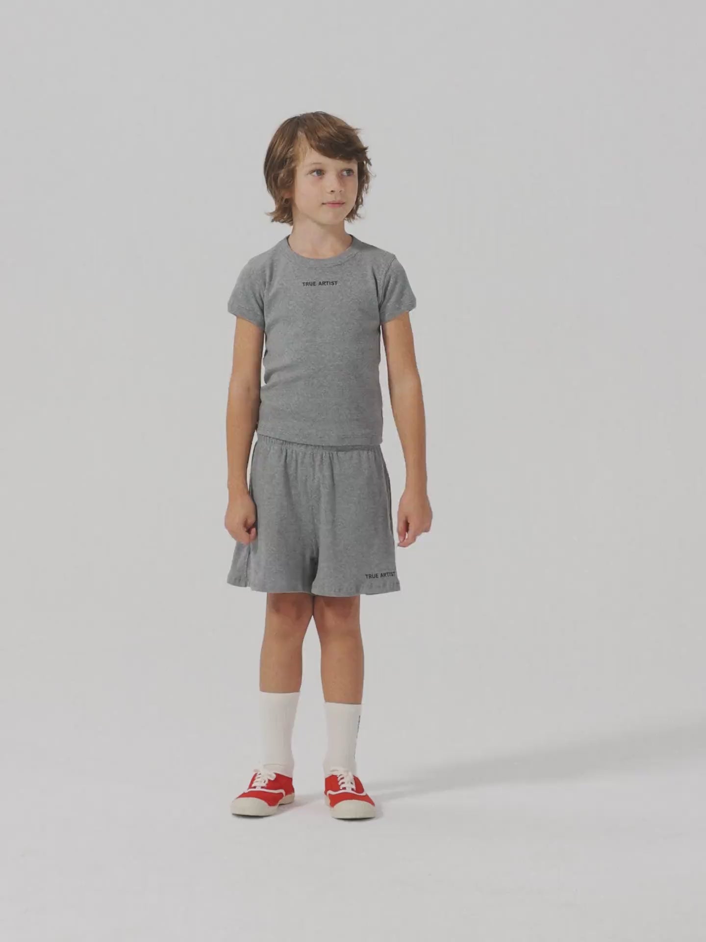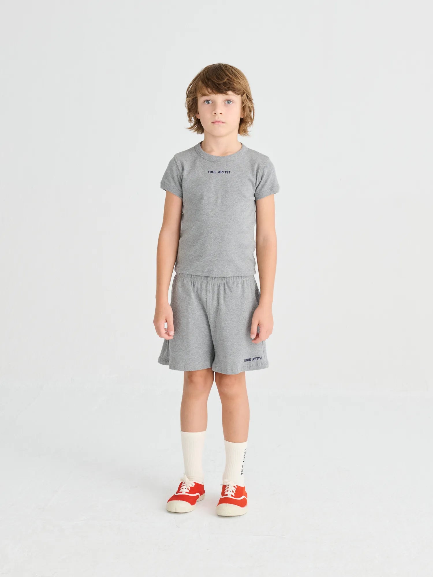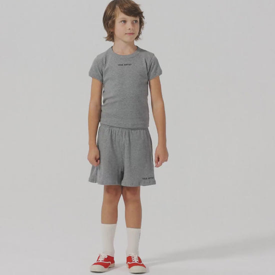 T-shirt nº21 in Glacier Grey is made of 100% organic cotton in melange ribbed fabric. It is designed with round neck and short sleeves and it features a small TRUE ARTIST logo embroidered on the chest. It has a slim fit. Made in Spain.