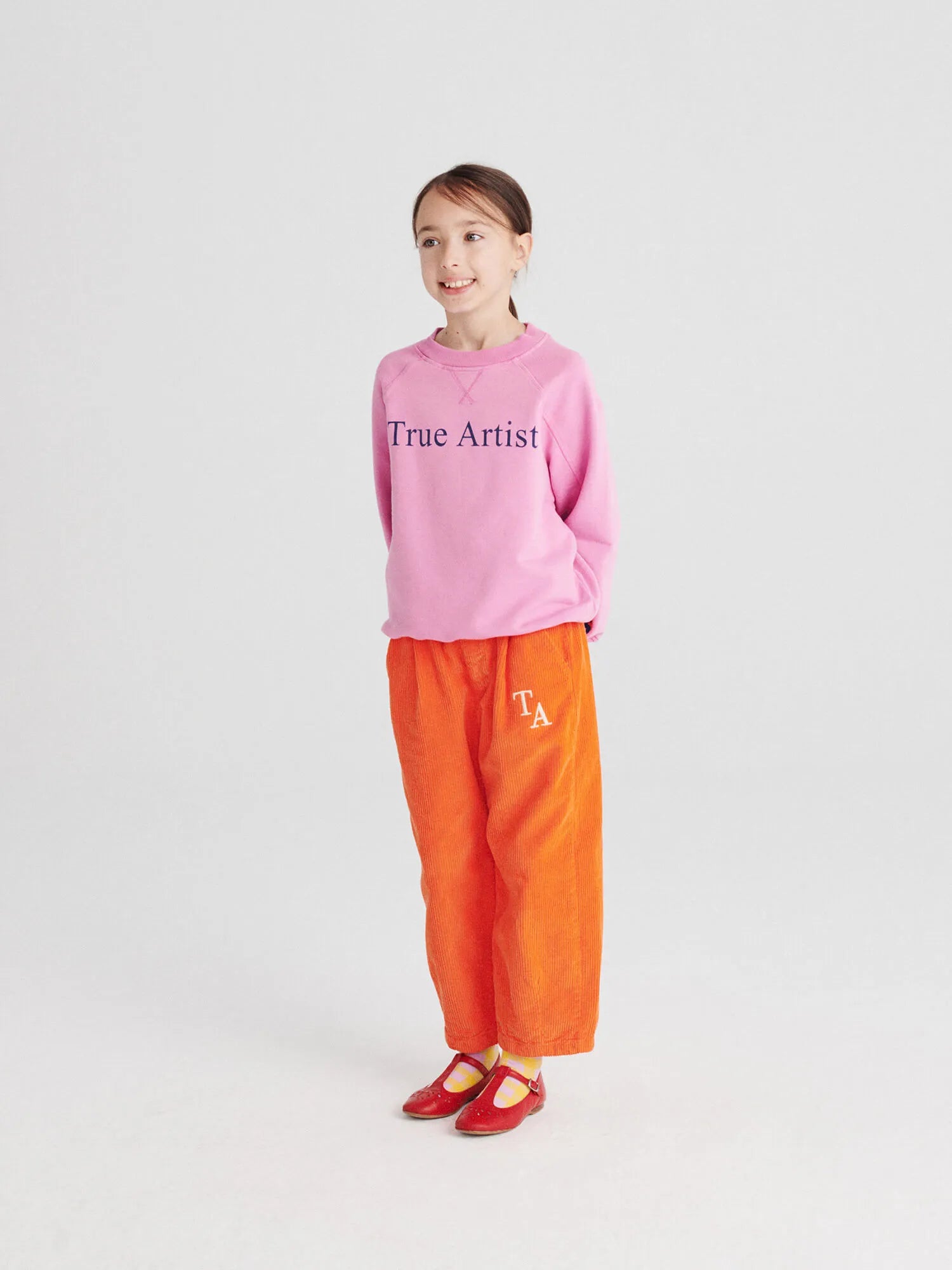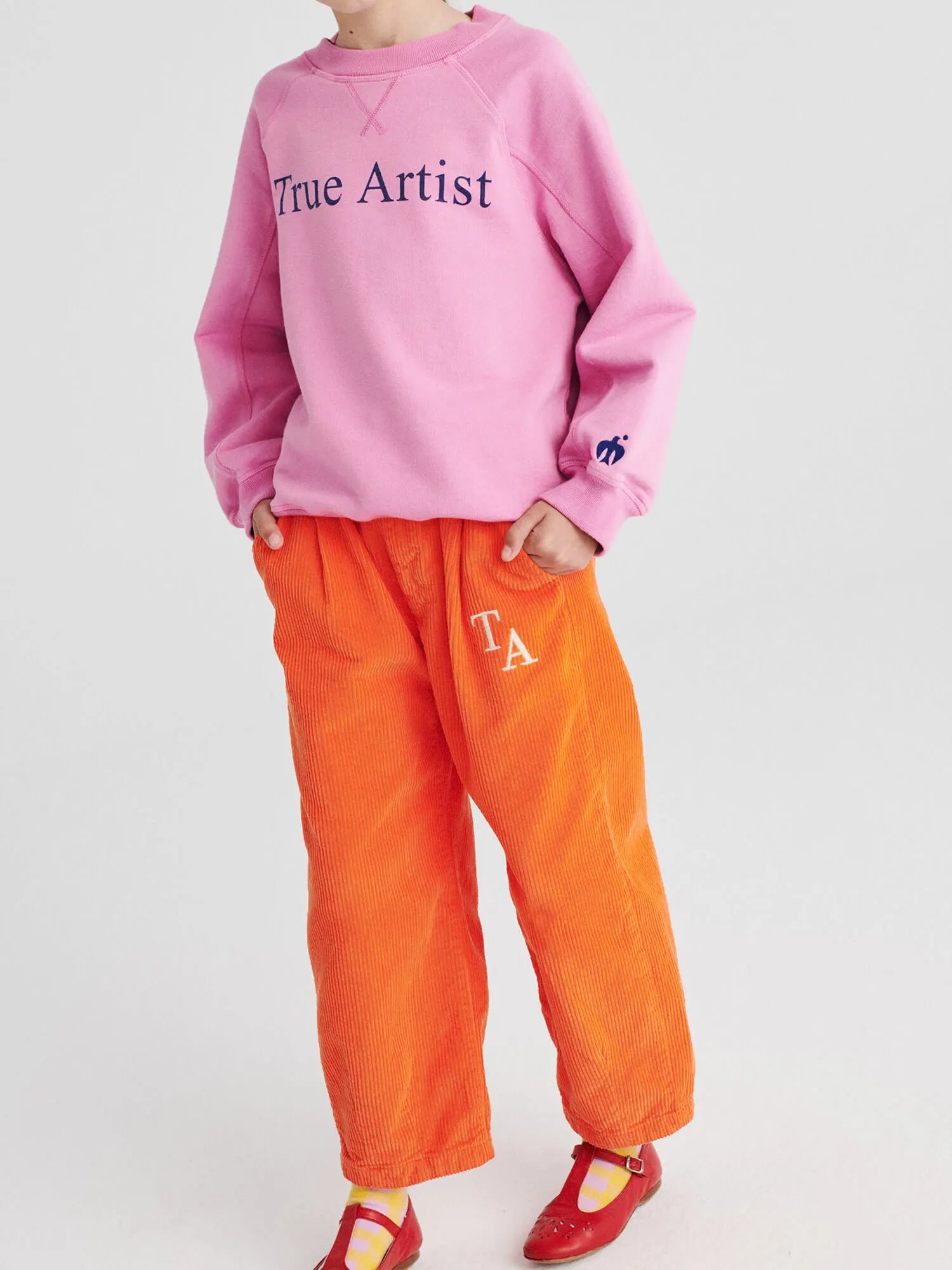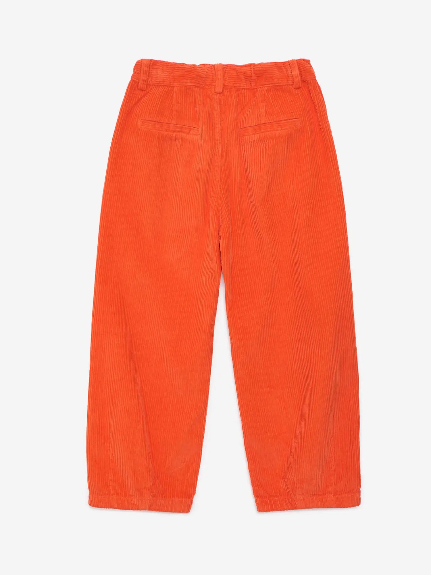 Trousers nº01 in Persimmon Orange are made of 100% cotton corduroy and have our TA logo embroidered on the front. These slouchy chino pants are designed with adjustable waistband, slash pipped pockets and front zip and button fastening. They have a cocoon fit. Made in Spain.