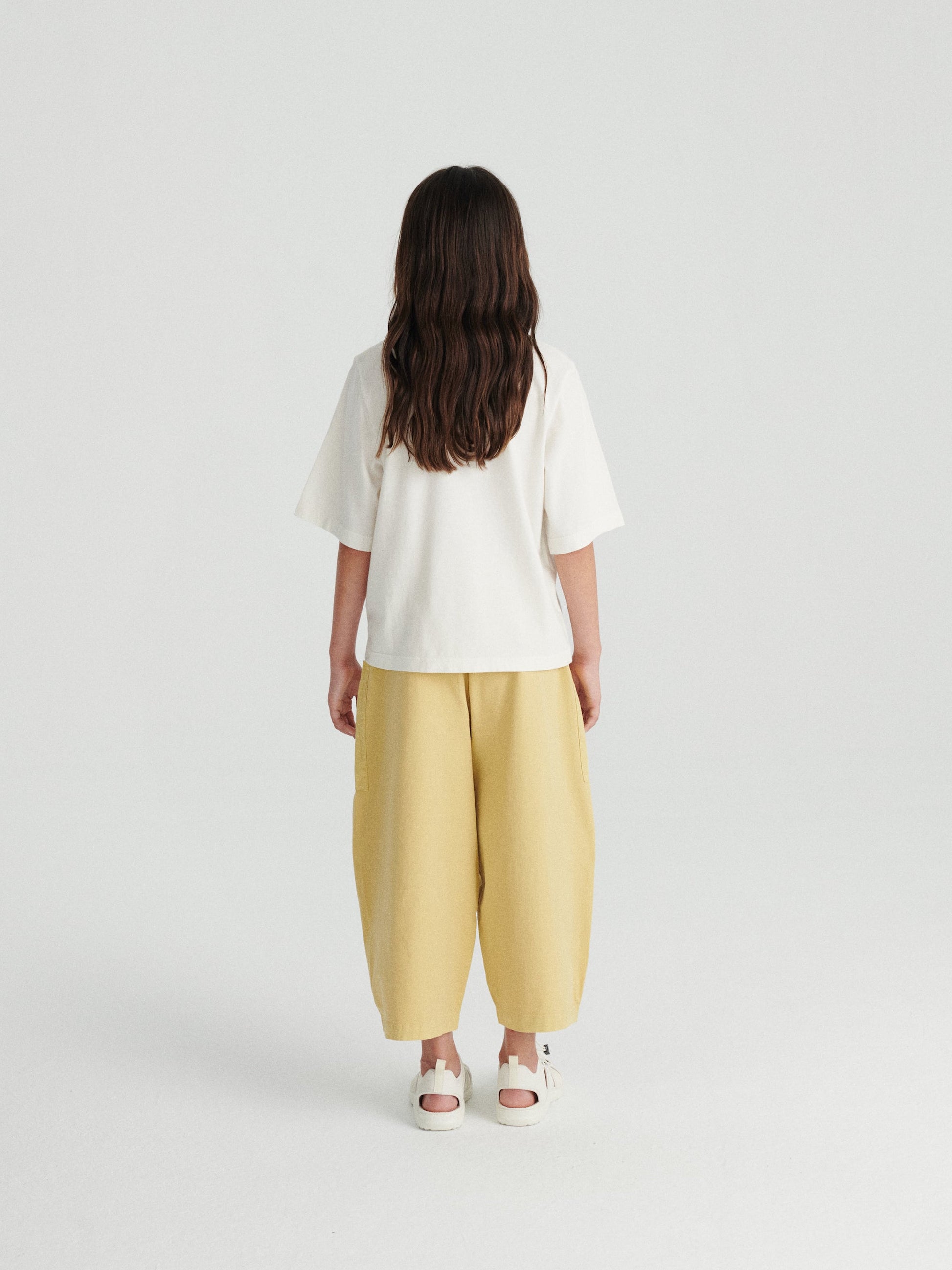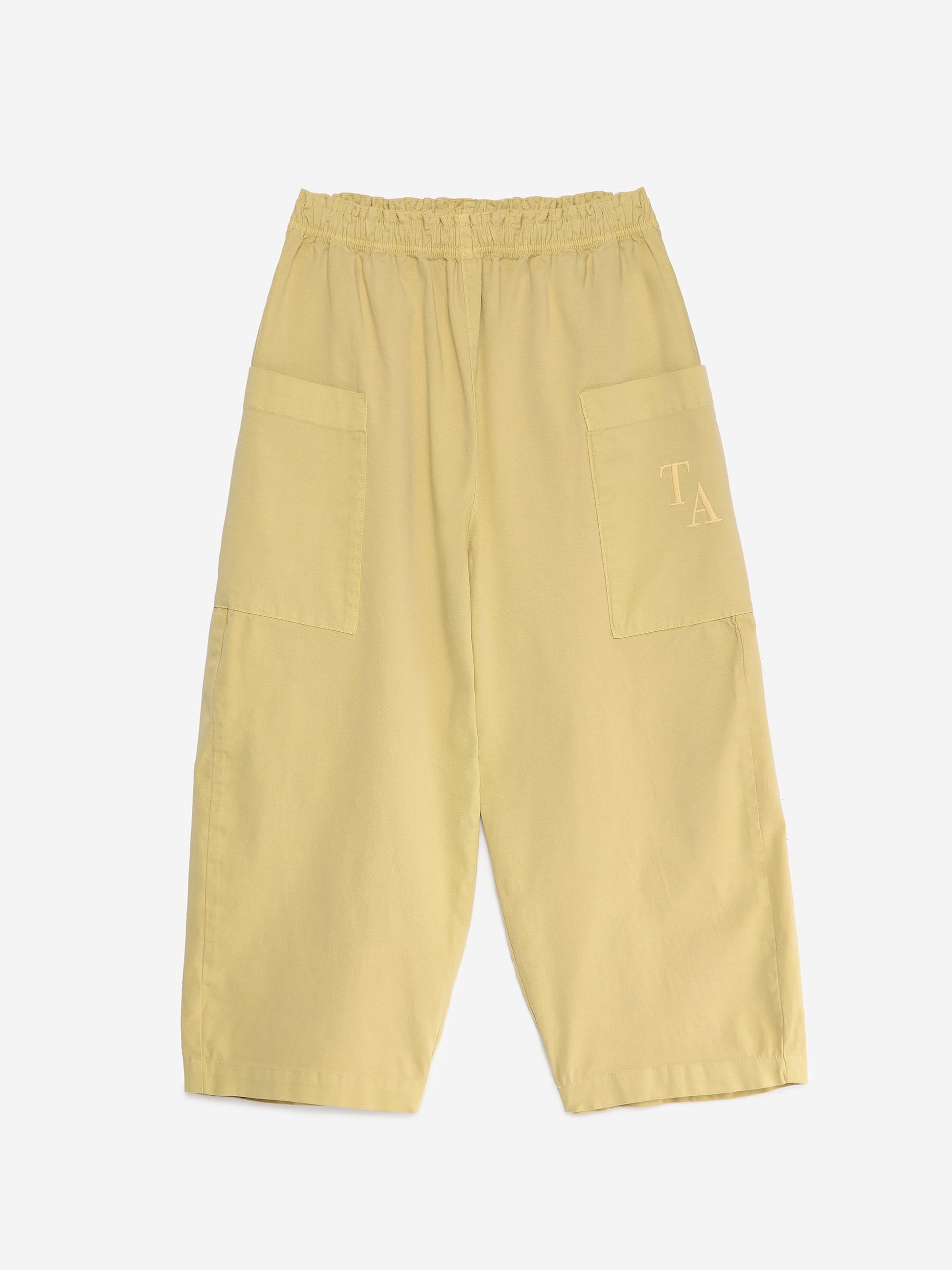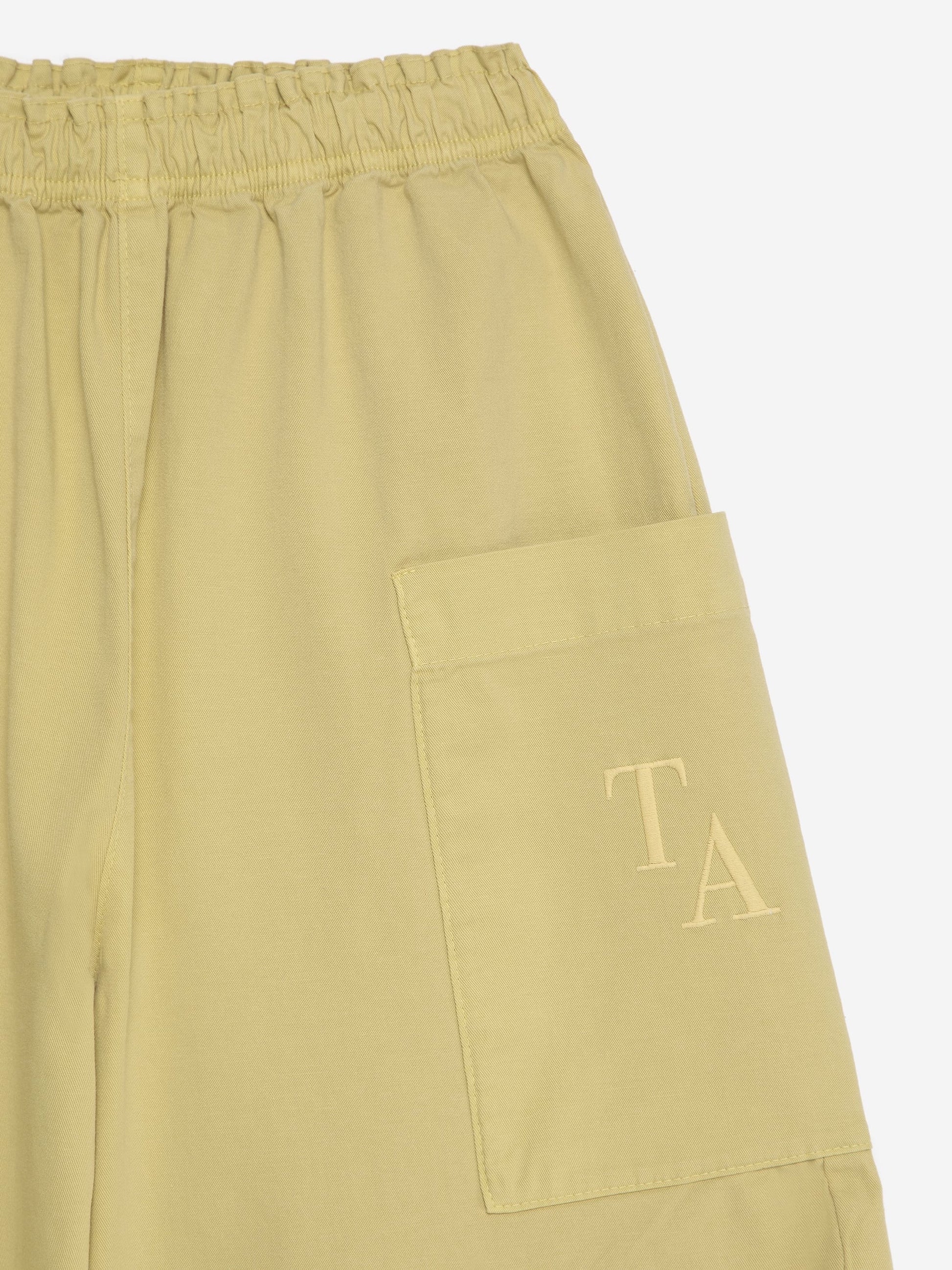 Trousers nº12 in Green Sand are made of 96% cotton, 4% elastane and have a small embroidery of our TA logo on the front. These pants are designed elastic waistband, patch pockets and relaxed croth. They have a relaxed cocoon fit. Made in Spain.